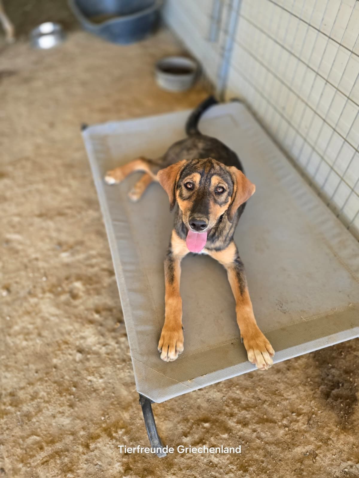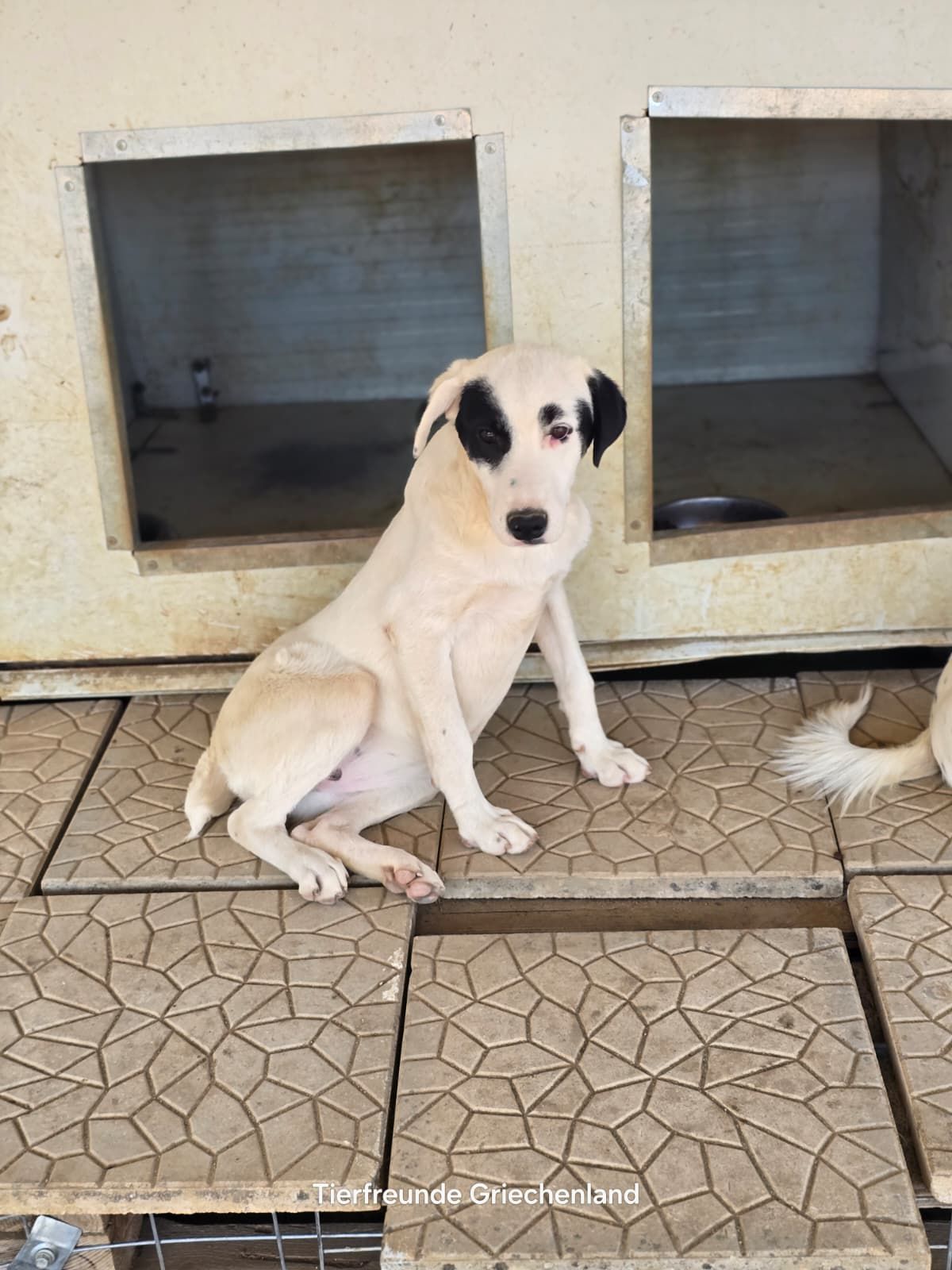 Sie ist eine von zehn Welpen, die mit ihrer Mutter in den Feldern gefunden wurden. Dort waren gerade die Erntearbeiten angefangen und ein Tierschützer hatte Angst vor den landwirtschaftlichen Maschinen, die sicherlich kein Pardon kennen. Damit diese Welpen also nicht verletzt oder gar getötet wurden, sind sie eingesammelt worden und zu einem mit uns befreundeten Tierheim gebracht worden. Dort allerdings konnten sie nicht bleiben, platztechnisch dort unmöglich, da aktuell in Griechenland besonders viele Welpen versorgt werden müssen. So ist Aliki um Hilfe gebeten worden und hat auch diese zehn hübschen Jungs und Mädels übernommen. Das Hunde-Einmaleins beherrschen diese Welpen bereits, Training in der Gruppe ist unvermeidlich. Wer aber möchte ihnen mit dem Verstehen der menschlichen Sprache und dem Erlernen der Befehle wie Sitz, Platz, Warte!…helfen?