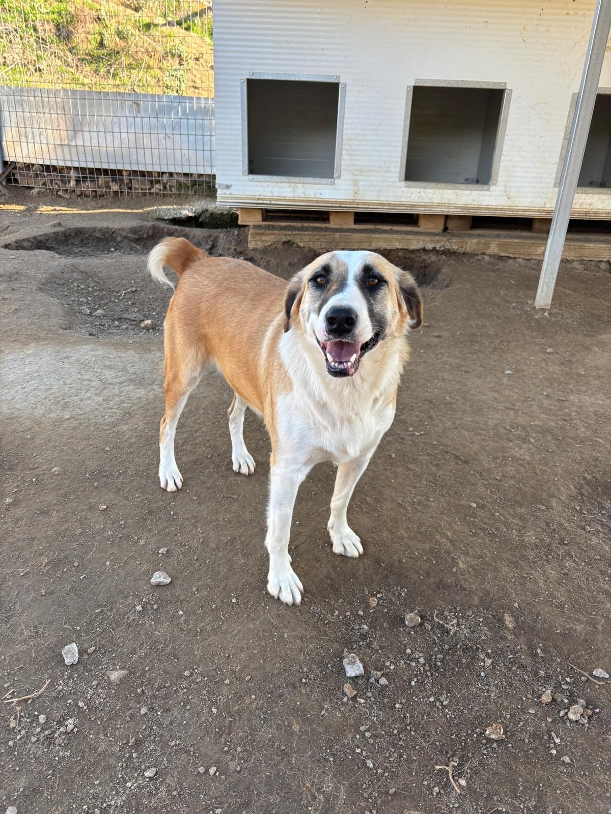 Diese hübsche Hündin, die erst eine ganze Weile bei den Thermen gelebt hat, dann dort zehn Welpen auf die Welt gebracht und gut versteckt herangezogen hat, bis wir uns um acht der hübschen Kinder haben kümmern können, (zwei sind von Griechen eigentlich zu früh weggenommen worden,) lebt nun bei Aliki im neuen Shelter. Sie ist eine ganz bezaubernde Hündin, sehr zurückhaltend und genügsam, aber zugleich sehr aufmerksam. Kómissa beobachtet das Geschehen um sich herum, ist nicht nur eine perfekte Mutter für ihren Nachwuchs gewesen, sie ist auch eine perfekte Wegbegleiterin für eine liebevolle hundeerfahrene Person, die mit Ruhe und Zugewandtheit ihr Vertrauen gewinnt. Kómissa will gefallen, drängt sich aber nicht in den Vordergrund. Sie hat gelernt, dass aufrechte Menschen auch für sie Zeit haben und kann warten, bis ihre Schmusezeit gekommen ist. Eine wirkliche Traumhündin, die mit allen vier Beinen im Leben steht.