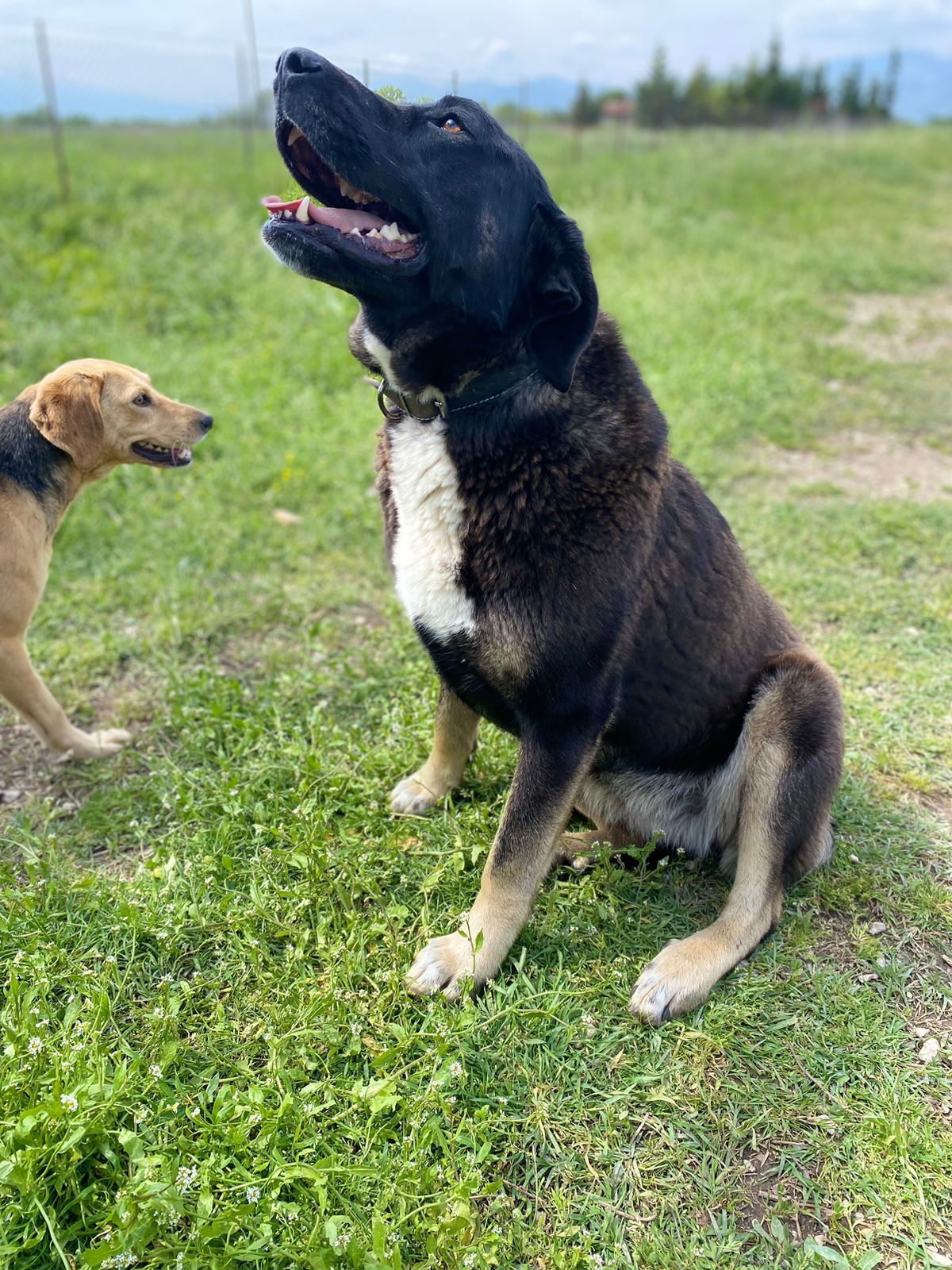Mit anderen Hunden hingegen kommt sie ausgezeichnet klar. Sie orientiert sich an ihnen, sucht ihre Nähe und fühlt sich im Rudel deutlich sicherer. Deshalb wäre ein souveräner Ersthund im neuen Zuhause von großem Vorteil.