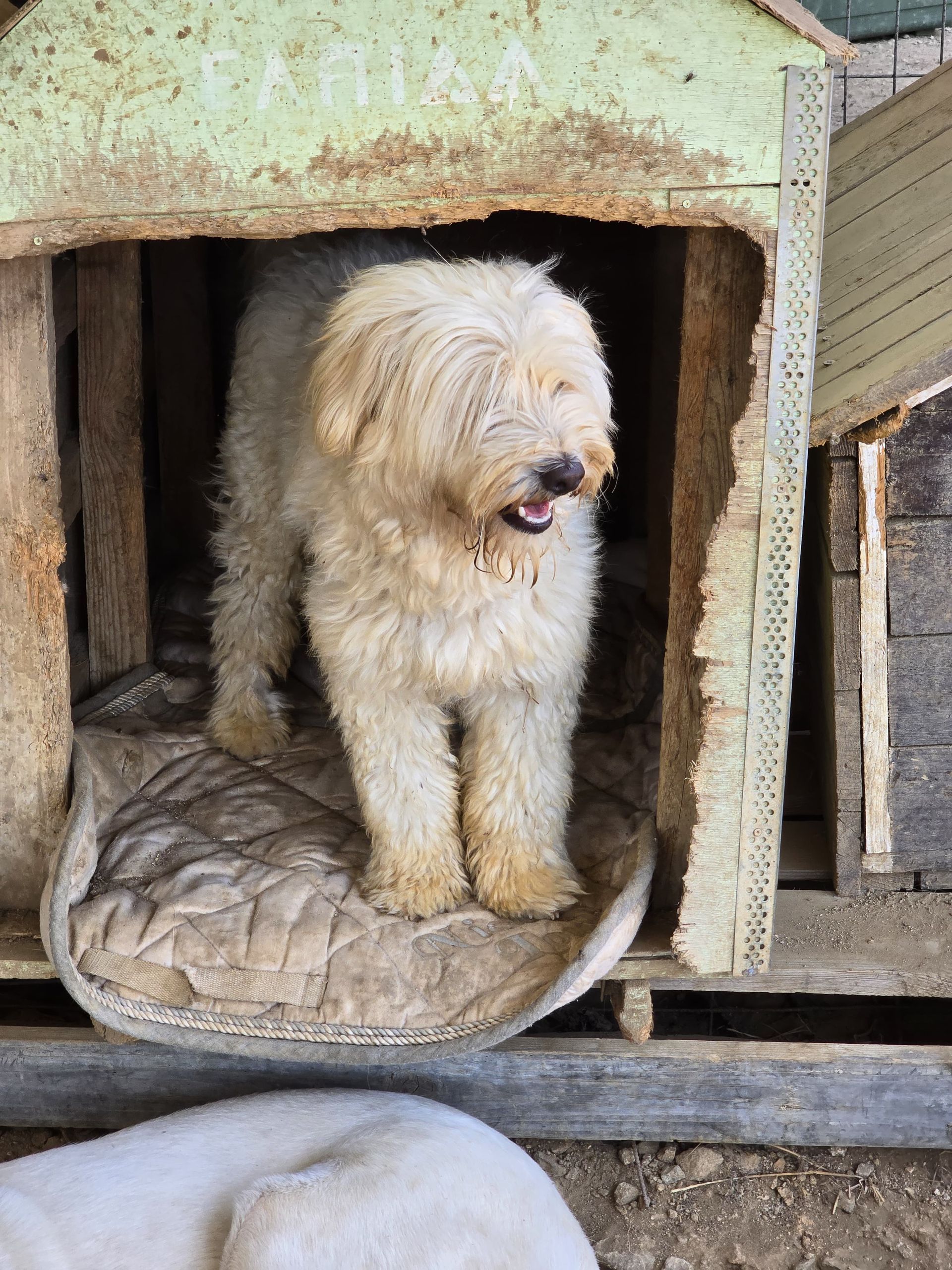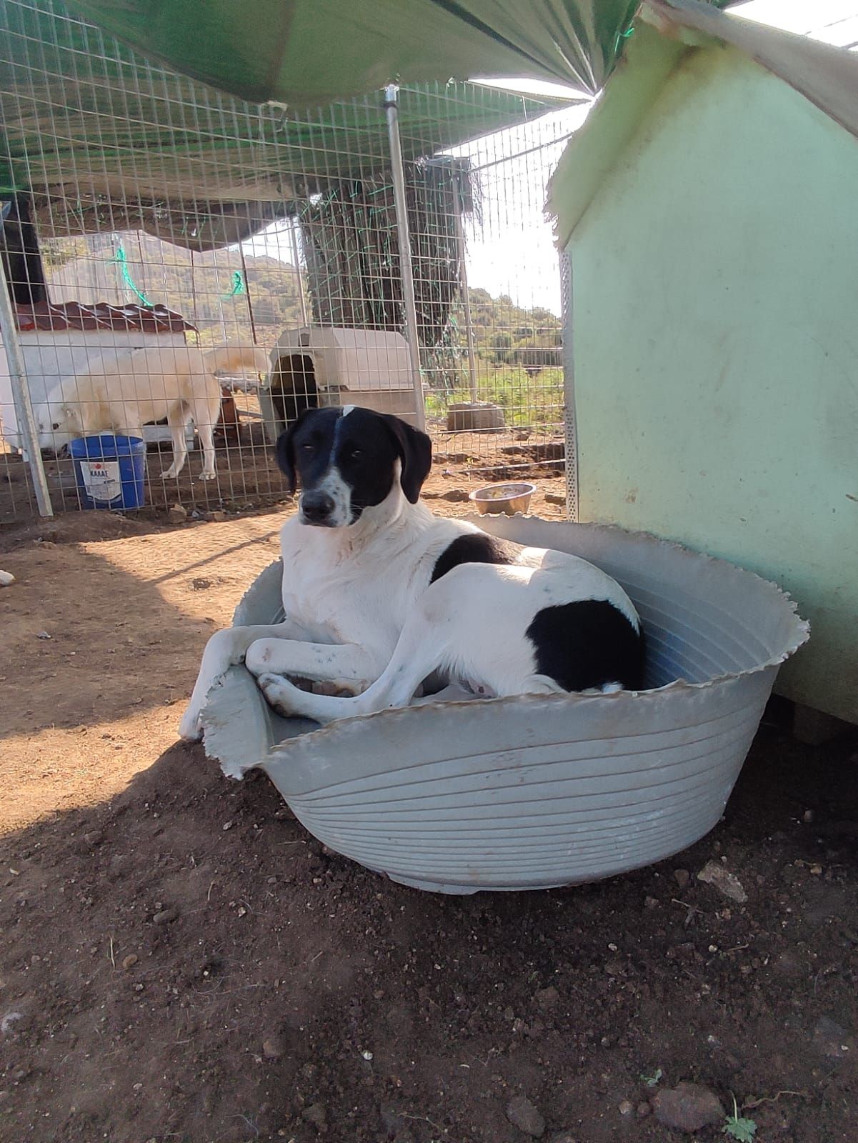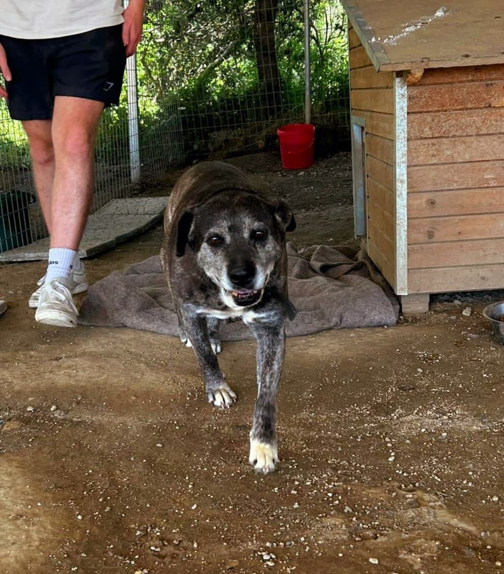 Paok auf drei Beinen. Unser Paok, der im März 2023 von der Gemeinde zu Aliki gebracht wurde, operiert nach schwerster Hüft- und Beinverletzung, kommt auf seinen drei Beinen recht gut klar. Leider entzündete sich der offene Bruch im Gelenk immer wieder, so dass ihm der Hinterlauf letztlich doch entfernt werden musste, aber es ist schön zu sehen, dass er vor Ort damit gut klarkommt. Leider wird er so aber kaum Chancen haben, vermittelt zu werden, suchen die meisten Menschen doch einen perfekten Begleiter. Paok, getauft nach dem berühmten Fußballklub, kämpfte sich erfolgreich zurück ins Leben und wir möchten ihm dies etwas versüßen. Allerdings ist Paok unberechenbar, er hat jetzt wiederholt aus dem Nichts heraus gebissen, weshalb wir ihn auch nicht vermitteln werden, sondern als Patenhund vor Ort belassen. Wir suchen für ihn Patinnen und Paten, die ihn unterstützen, um ihm ein gutes Leben zu ermöglichen.