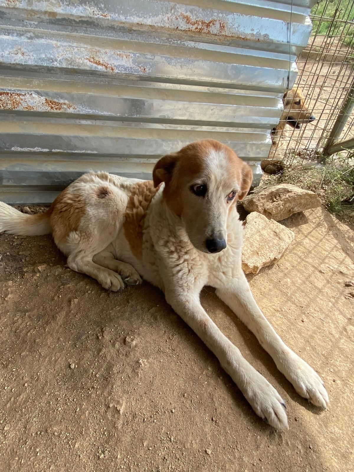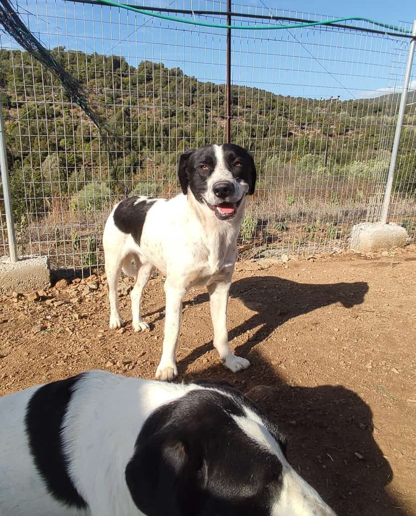 Mini ist eine sicherlich über zehn Jahre alte Hundedame. Sie verbrachte einen großen Teils ihres Lebens mit ihrem Freund Sotos an den Traumstränden von Peramos, beide gehörten dort zum Strandbild, zuerst auch in der Touristensaison. Unsere Tierschützerin Eva kannte die Hunde, fütterte sie fast täglich und versorgte sie auch mit Halsbänder und Tabletten gegen Parasiten. Eines Tages aber durften sie dort nicht mehr verbleiben und sind zusammen in einer Pension untergekommen, bis Sotos im recht hohen Alter nun seinem Krebs erlegen ist. Nun ist die trauernde Mini ins Tierheim in Mirtofito gezogen, die Pension musste schließen, sie teilt sich aktuell ein Gehege mit Blacky, um hier in Ruhe anzukommen. Auf ihre alten Tage meistert sie diesen Umzug wirklich gut, nur für uns ist es natürlich eine finanzielle und organisatorische Arbeit, da einfach eigentlich immer mehr Hunde, 6 bis 8, sich ein Gehege teilen.