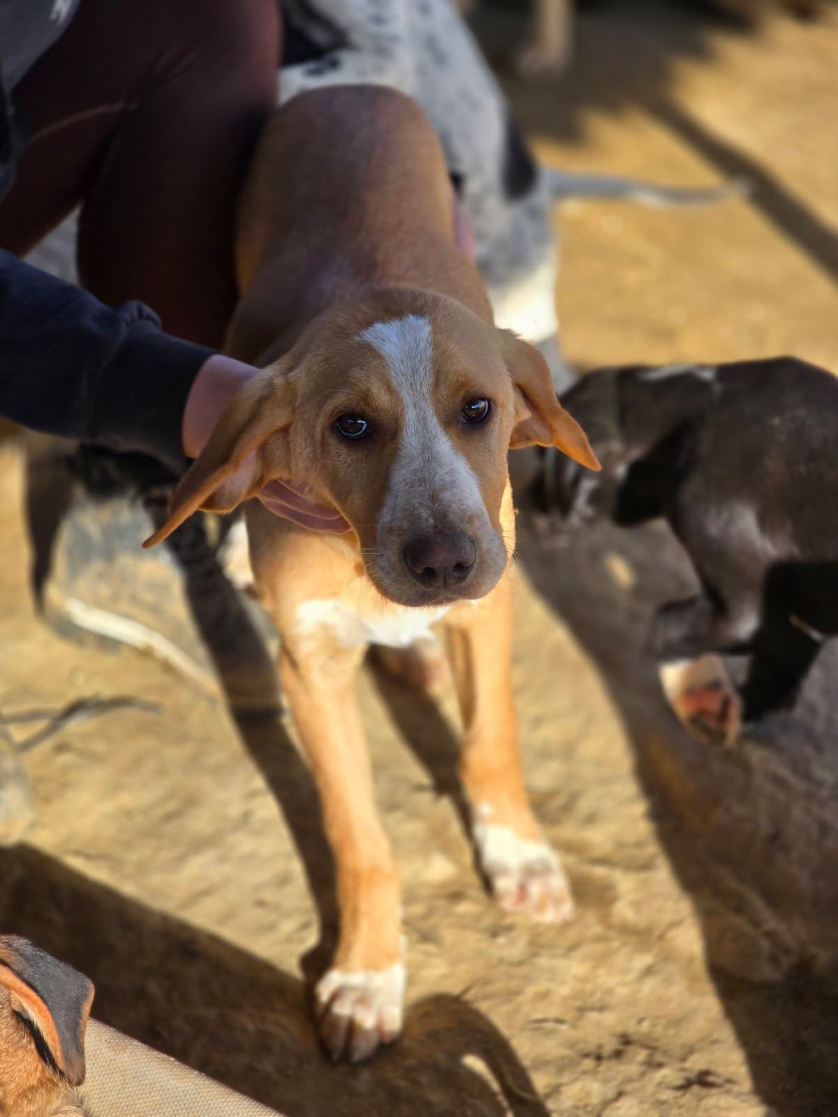 Die drei stammen ursprünglich von der Straße und wurden uns von einer befreundeten Tierschützerin anvertraut. Aktuell leben sie in unserem Shelter. Viel Ballast aus der Vergangenheit tragen sie nicht mit sich herum, stattdessen begegnen sie neuen Situationen neugierig und unvoreingenommen. Typisch für junge Setter-Mischlinge sind sie verspielt, sozial und immer bereit für das nächste Abenteuer.