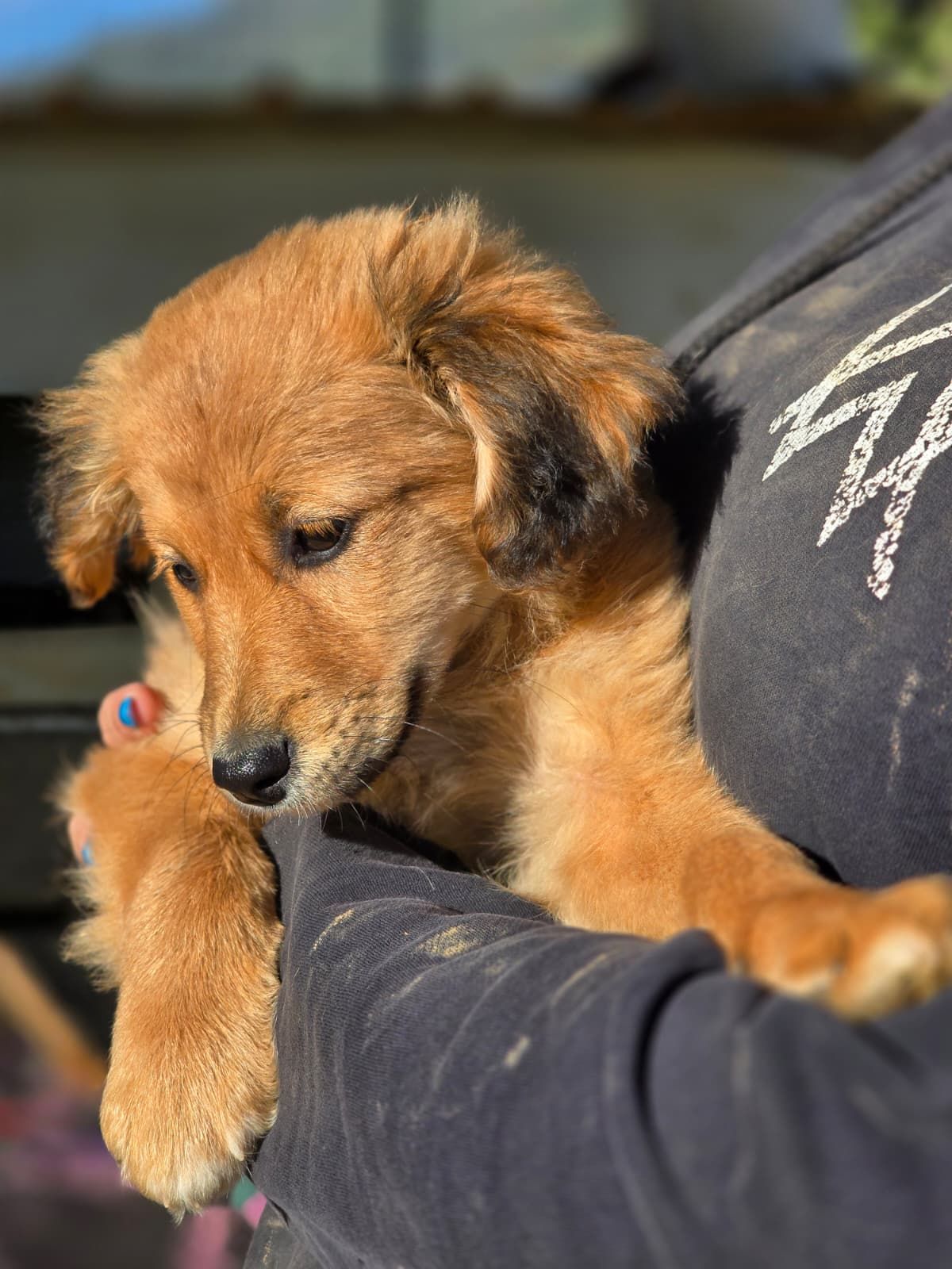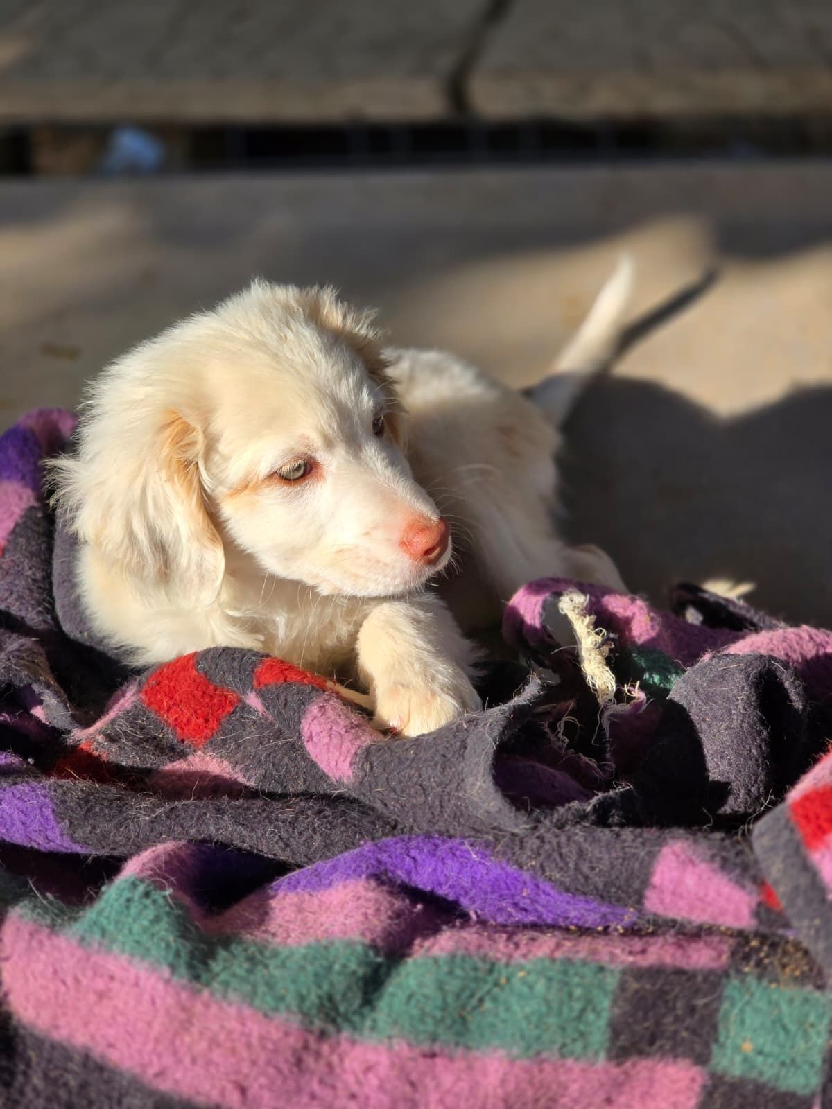 Als Welpe braucht Skiouros Begleitung im Alltag und würde sich sicherlich über den Besuch in einer Hundeschule freuen.
