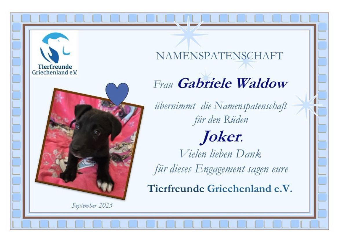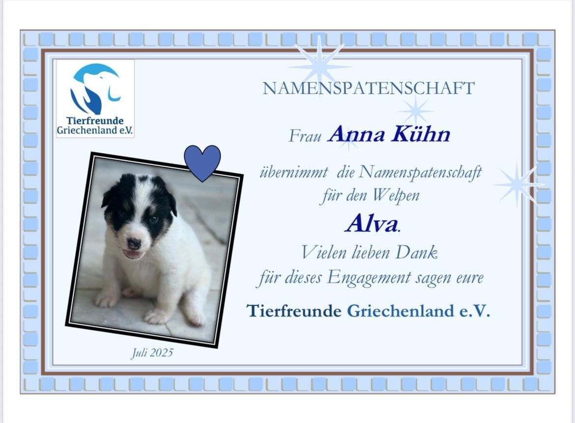 Eure Namenspatenschaften werden immer mit großer Freude angenommen. Sie erleichtern uns die tägliche Tierschutzarbeit enorm und helfen uns, Schritt für Schritt noch mehr Tieren zu helfen.