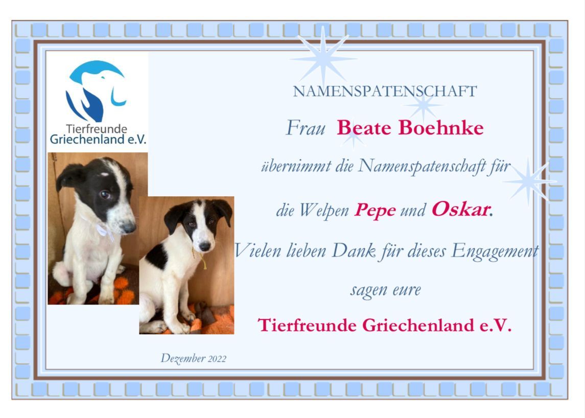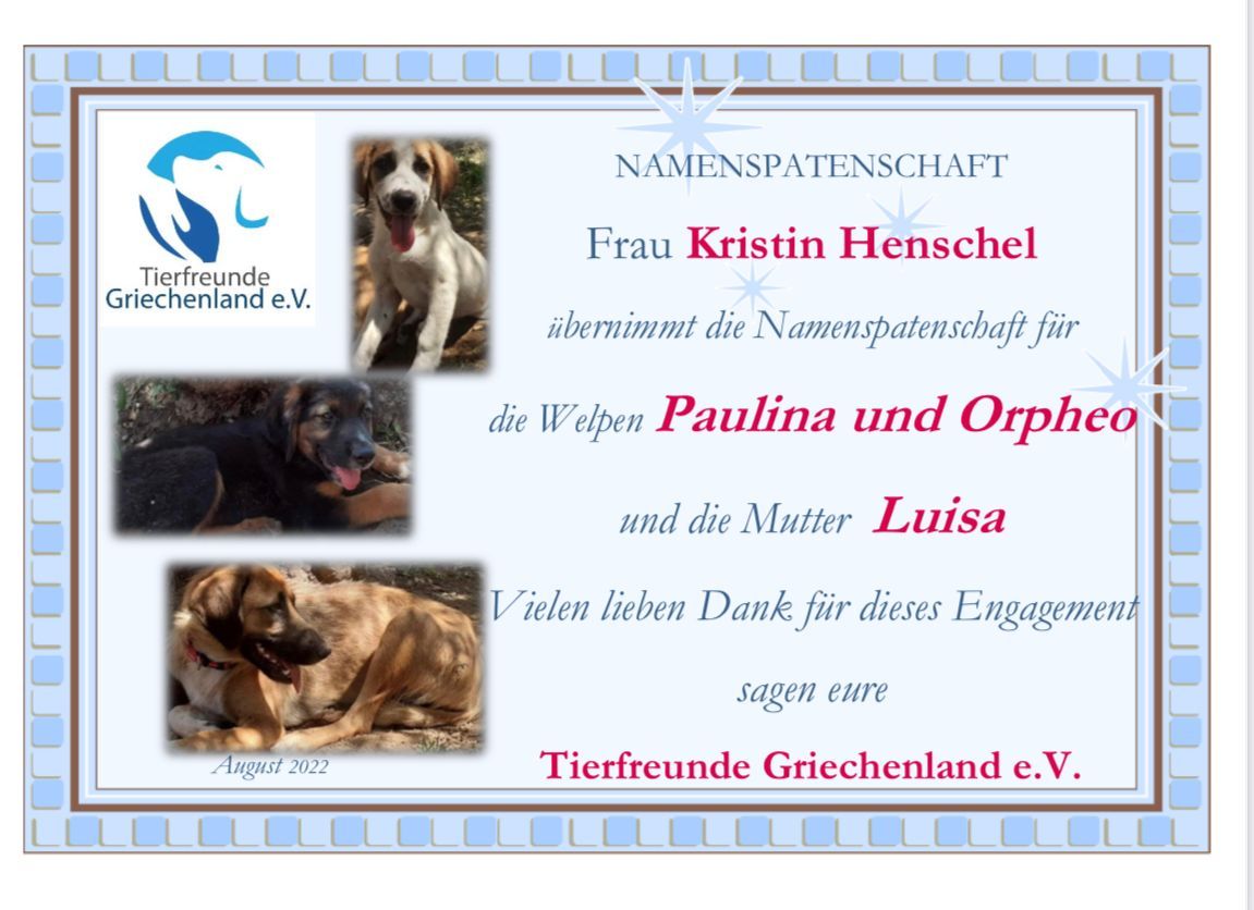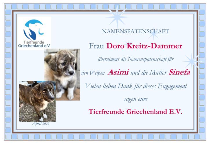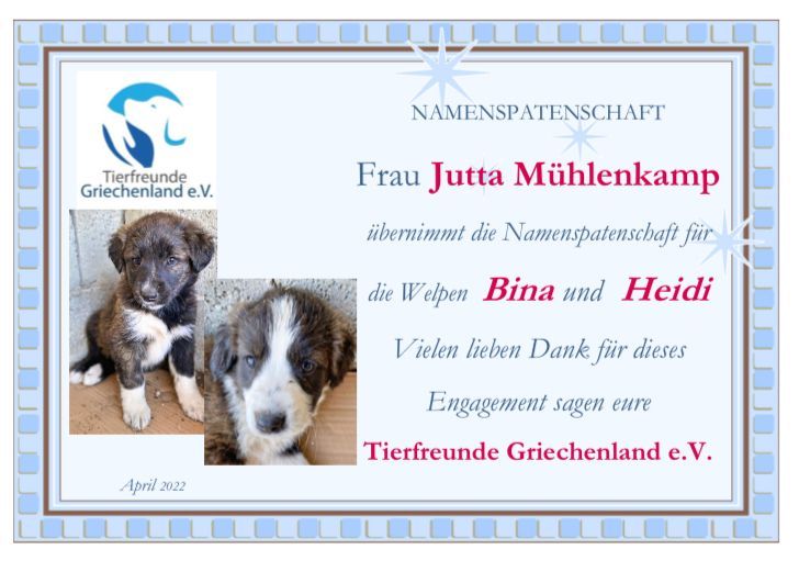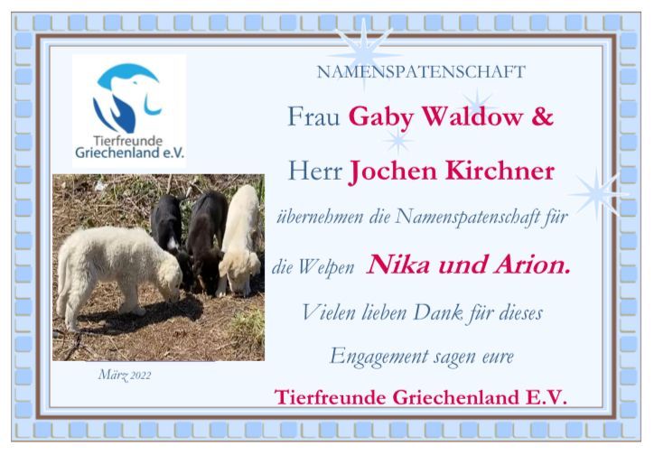In dieser Rubrik möchten wir uns ganz herzlich bei den Namenspaten und Namenspatinnen für die Übernahme der jeweiligen Namenspatenschaft bedanken. 😉🍀