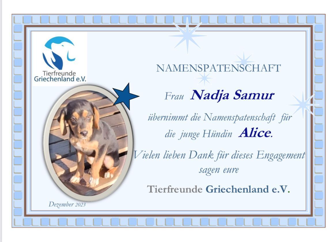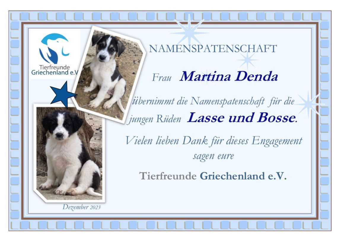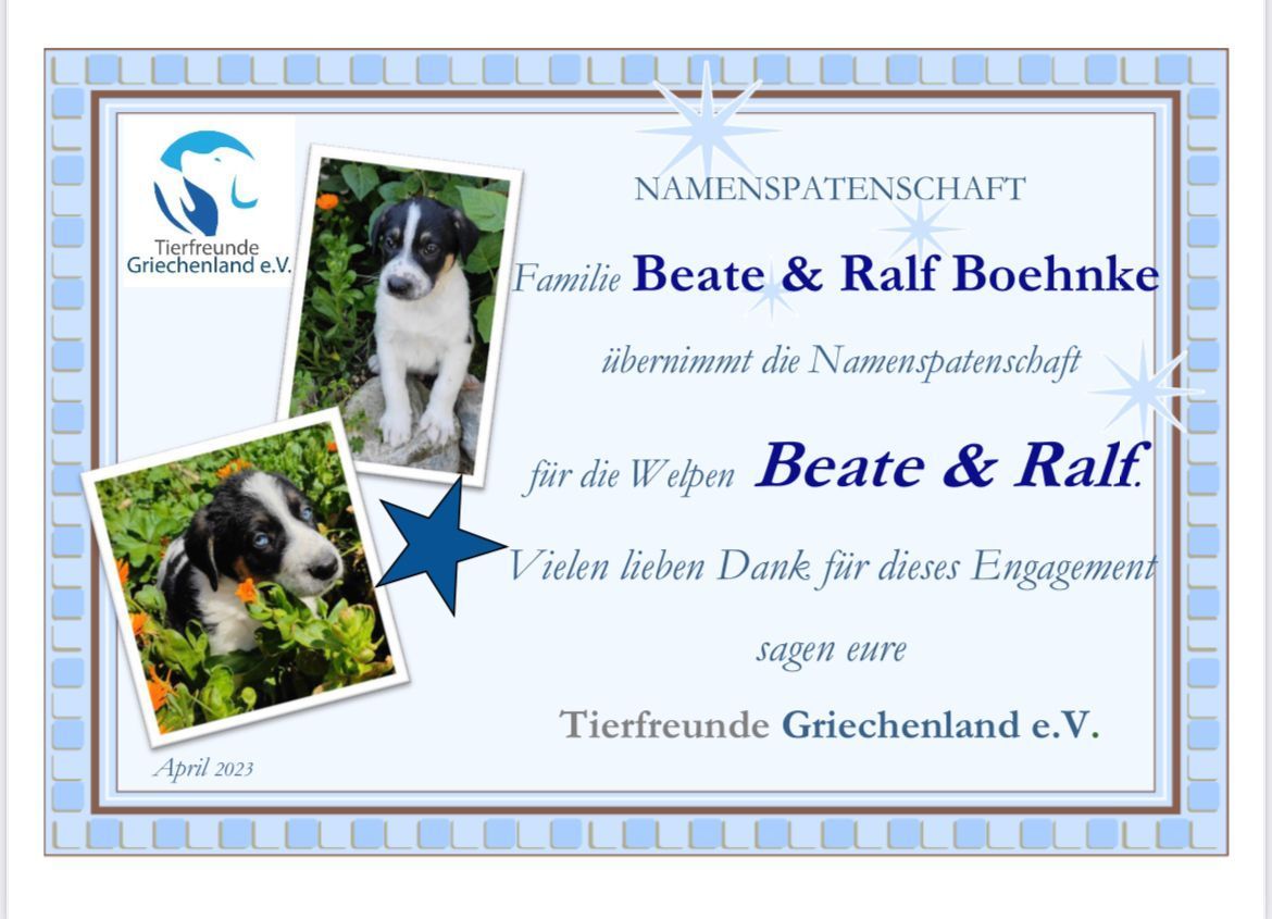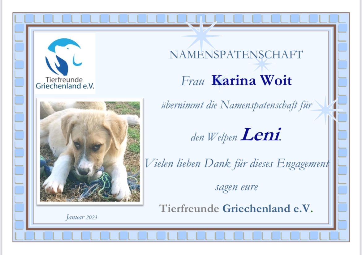 In dieser Rubrik möchten wir uns ganz herzlich bei den Namenspaten und Namenspatinnen für die Übernahme der jeweiligen Namenspatenschaft bedanken. 😉🍀