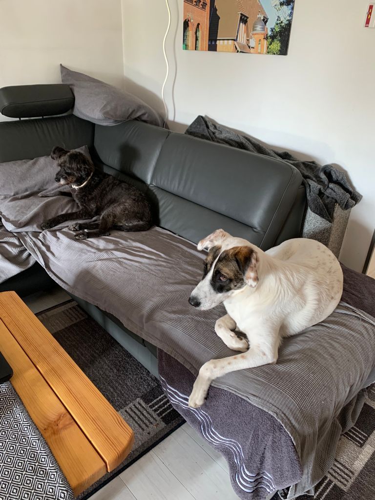 Wir haben im Juli 2020 nach einem langen und sehnsüchtigen Warten den damals 7 Monate alten Lionel vom Frankfurter Flughafen abgeholt. Er sah uns aus seiner Transportbox heraus an und schon da flossen die ersten Tränen der Freude. Die ersten Tage zu Hause erkundete Lio seine neue Umgebung und wurde mutiger und neugieriger. Wir merkten schnell, dass er sehr sensibel ist, aber immer häufiger kamen auch seine verspielten und manchmal frechen Seiten zum Vorschein. Es passte perfekt. Er passt so wunderbar in unsere Familie und für nichts in der Welt würden wir Lio wieder hergeben! Während und auch noch nach der Hunde- Übergabe bestand die ganze Zeit ein guter Kontakt zu Lios Rettern und wir haben uns die ganze Zeit über gut begleitet gefühlt. Vielen vielen Dank für eure grandiose Arbeit und wir wünschen euch, dass noch ganz viele Vierbeiner ihren perfekten Menschen über euch finden können!