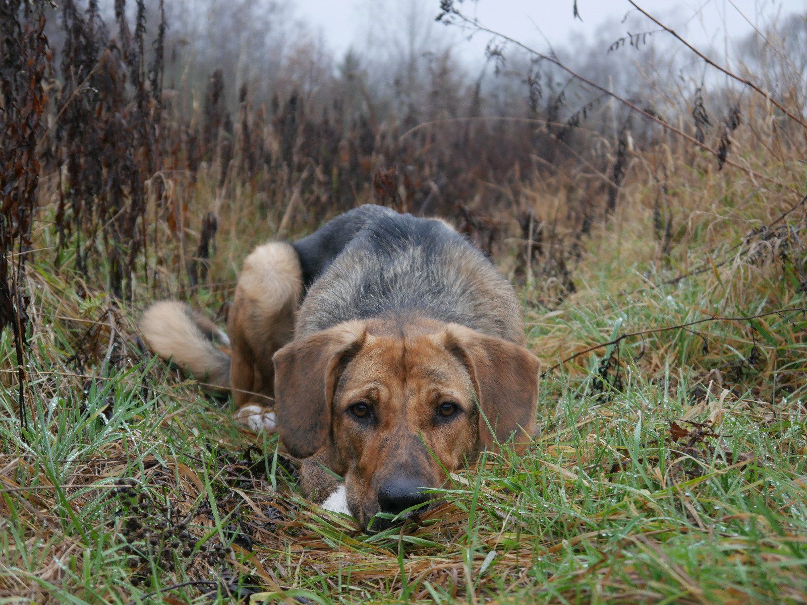 Rusty heißt seitdem er bei uns lebt „Juri“ und hat sich gut eingelebt. Wir haben in den vergangenen Wochen und Monaten viel Zeit darauf verwendet ihn ankommen zu lassen und ihn gleichzeitig zu erziehen und Grenzen im Alltag aufzuzeigen. Nach anfänglichen Unsicherheiten haben wir uns zu dritt mittlerweile gut eingespielt und einen Alltagsrhythmus gefunden. Juri hatte anfänglich noch Schwierigkeiten anzuzeigen, wenn er raus musste, und wir haben seine Signale manchmal noch falsch gedeutet. Das hat sich allerdings nach 5 Tagen gelegt und funktioniert seitdem hervorragend. Juri hat sich als aufgeweckter, neugieriger und verspielter Jundhund entpuppt. Deckentraining und konsequente Ruhephasen haben sehr dabei geholfen ihn Zuhause zur Ruhe kommen zu lassen. Wie man sieht, liebt er es auf dem Rücken zu liegen und sich zu wälzen. Auf den Spaziergängen dürfte es, wenn es nach ihm ginge, richtig wild zugehen. Der Freilauf funktioniert meist sehr gut. Juri zeigt Jagdtrieb und ist gleichzeitig noch junghundtypisch leicht abzulenken - zum Beispiel durch große Blätter im Wind, den Geruch von Hasen auf dem Feld oder Vögeln. Trotzdem hat er uns dabei immer im Blick und kommt schnell wieder zurück. Er liebt es zu rennen und freut sich, wenn andere Hund mit ihm Fangen spielen.