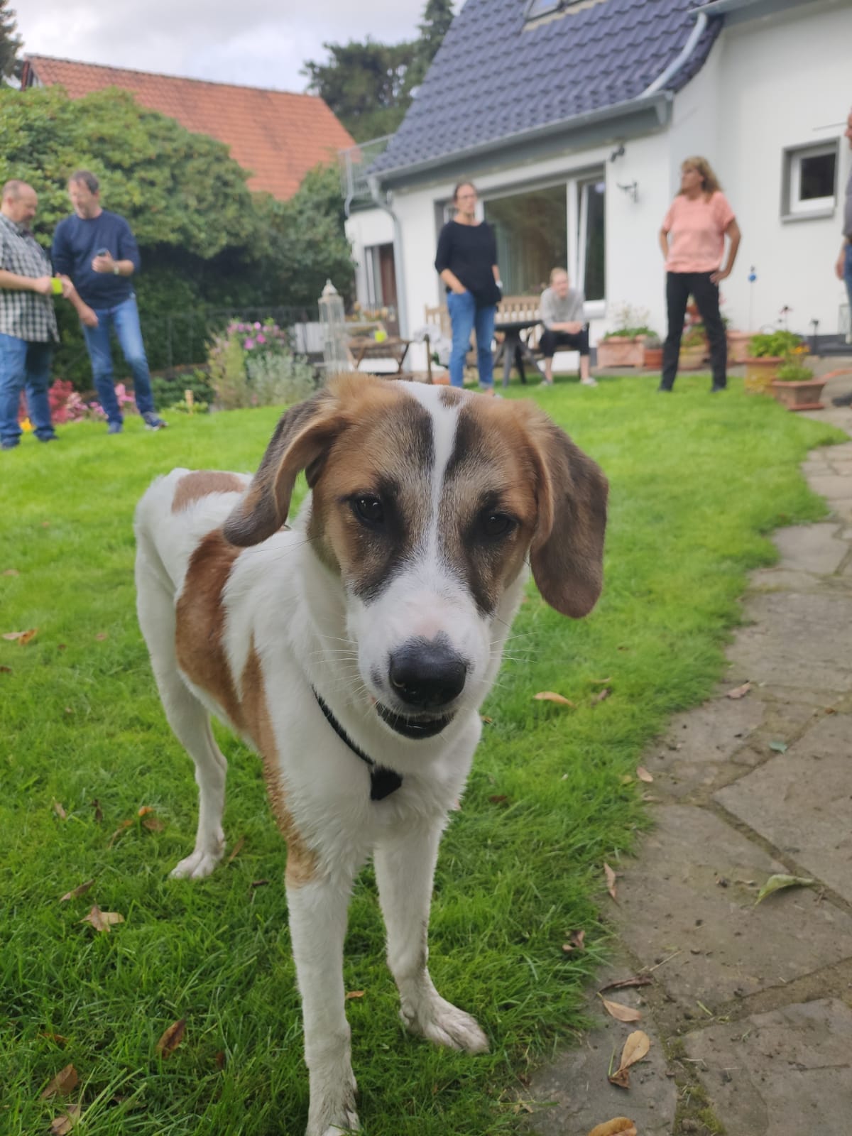 Nalani hat sich bei uns bestens eingelebt. Der erste Monat war vor allem für Nalani sehr schwer. Sie war außerhalb unseres Hauses sehr sehr ängstlich, aber mit viel Geduld und Liebe wurde sie eine inzwischen sehr selbstbewusste junge Dame. Wir sind mit ihr immer noch in der Hundeschule, welche vor allem ihr Angst vor Artgenossen genommen hat. Die Untersuchung bezüglich Mittelmeerkrankheiten haben wir bei ihr inzwischen gemacht und auch ein großes Blutbild. Beides war ohne Befund. In den Herbstferien waren wir vier Tage an der Nordsee. Fahrt, als auch Urlaub verlief mit ihr sehr harmonisch. Wir sind sehr glücklich mit ihr.