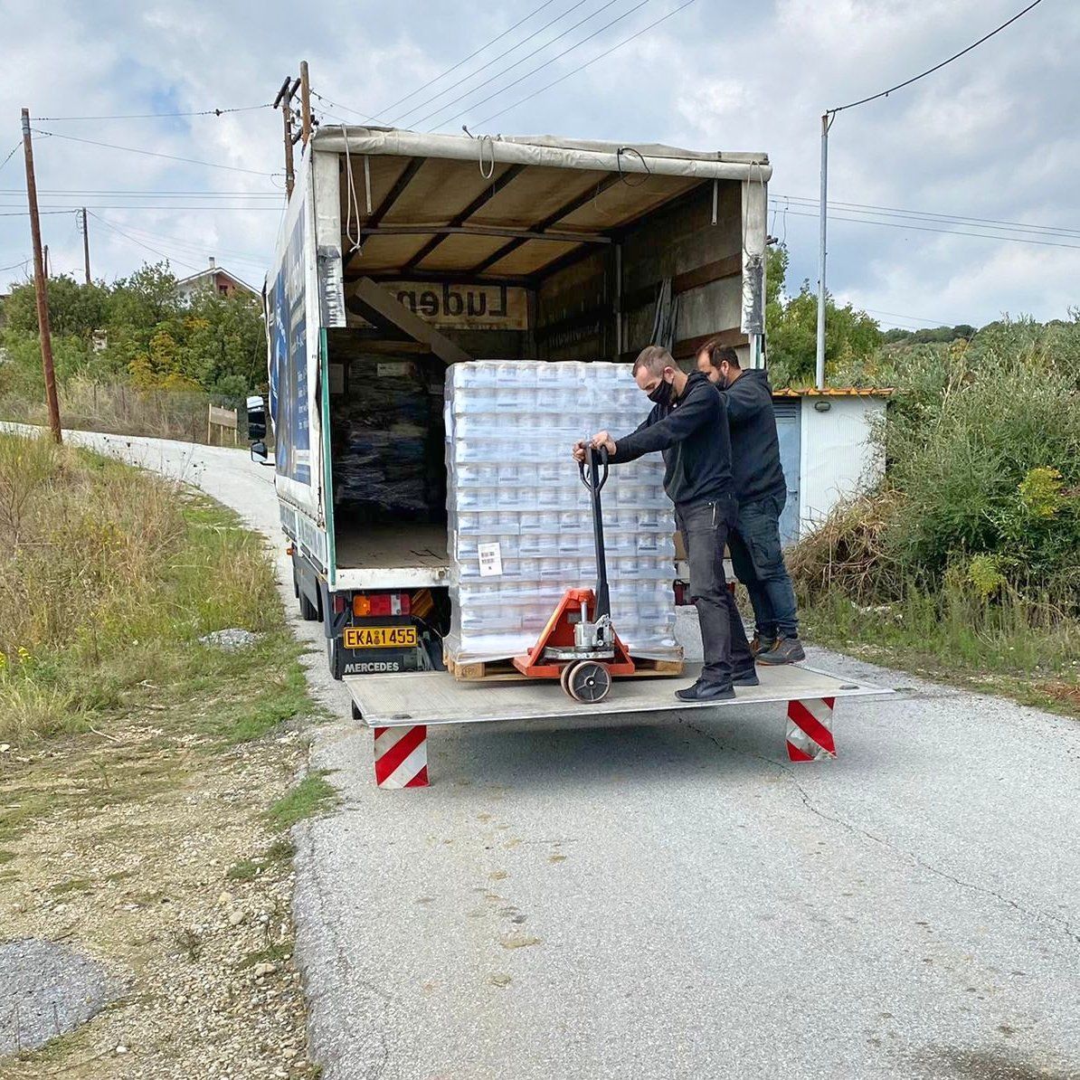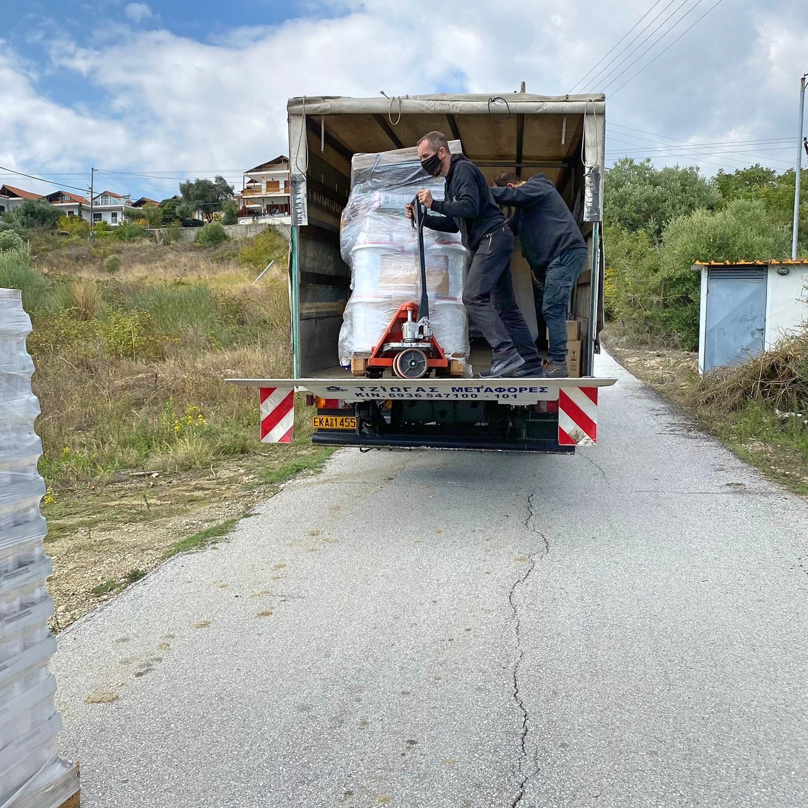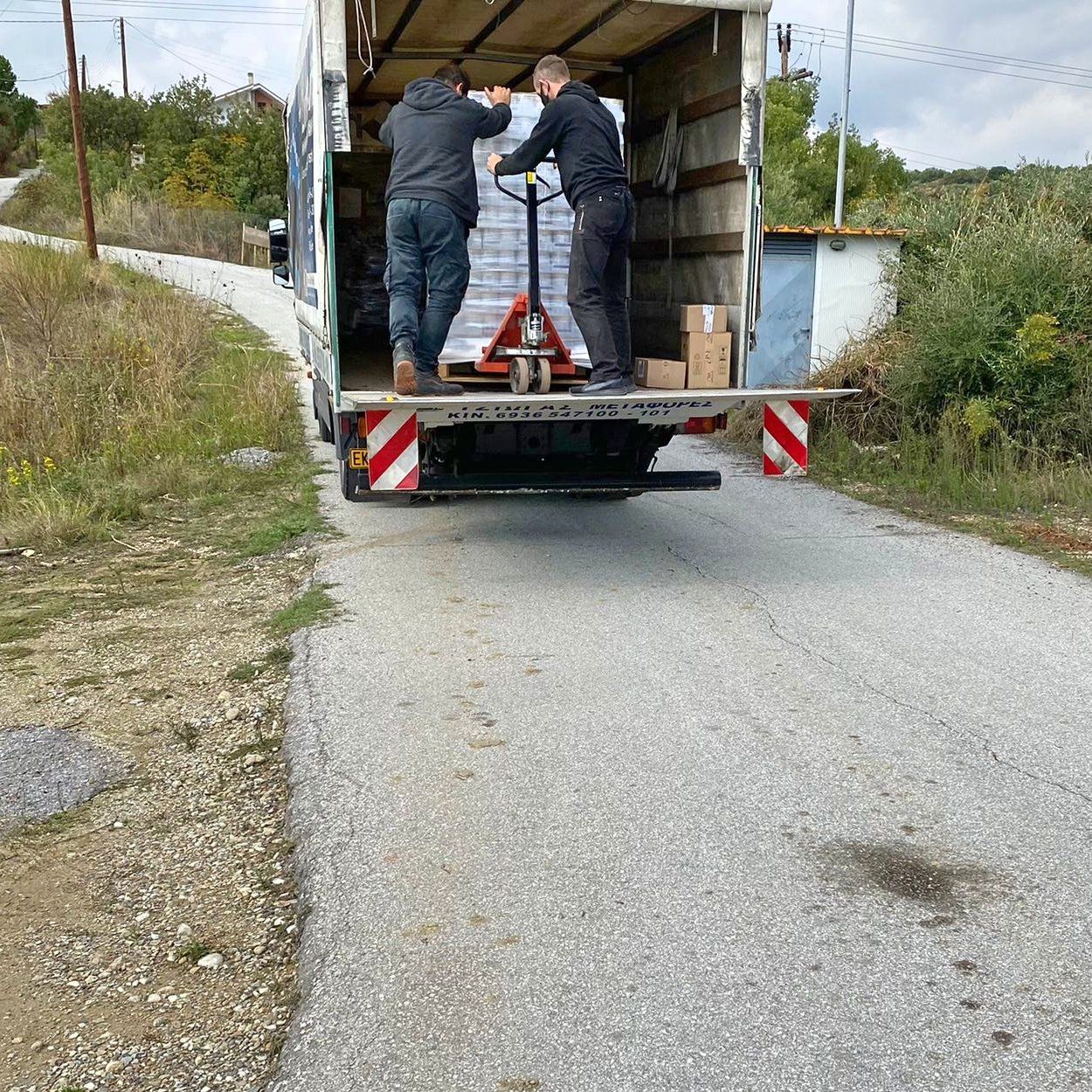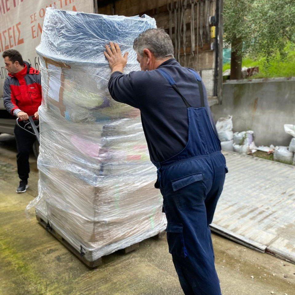Die Paletten sind in Kavala angekommen und können nun ausgepackt werden. Aliki schreibt:
