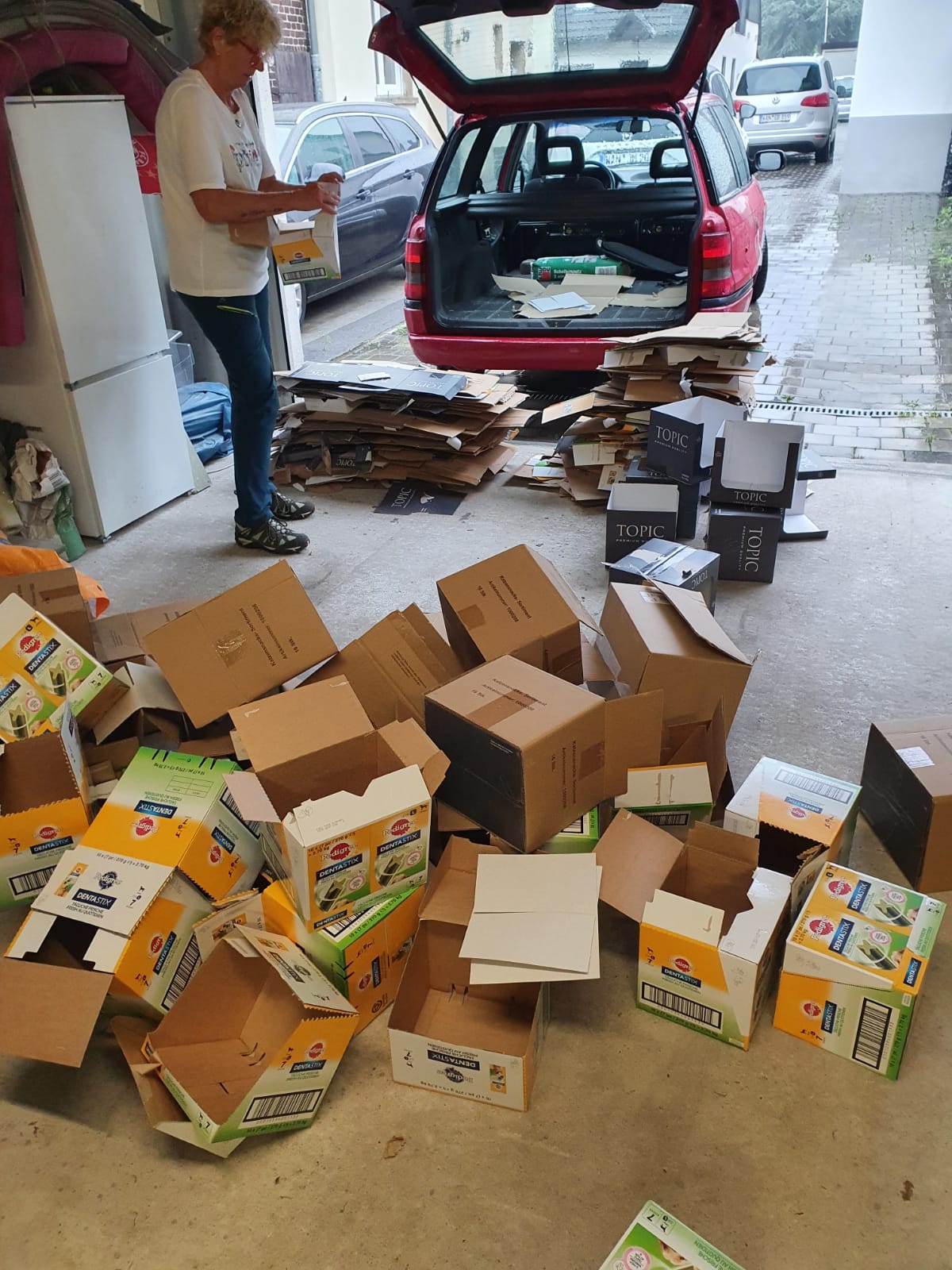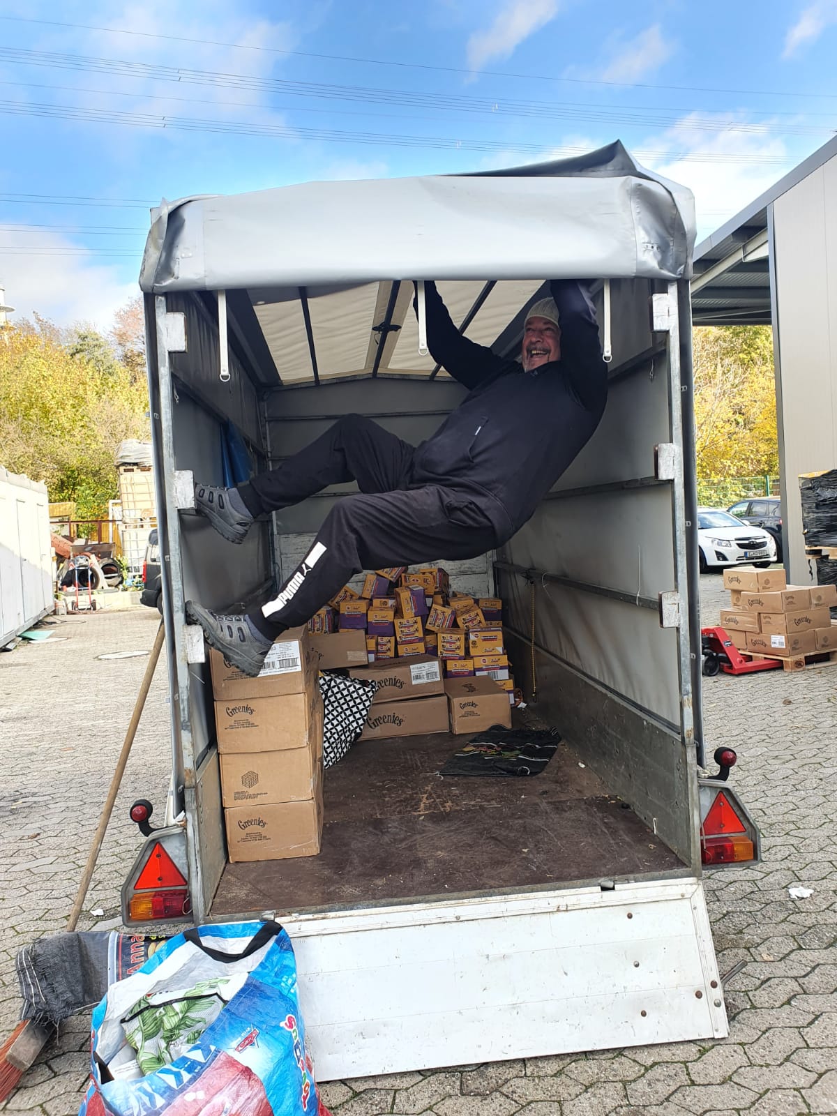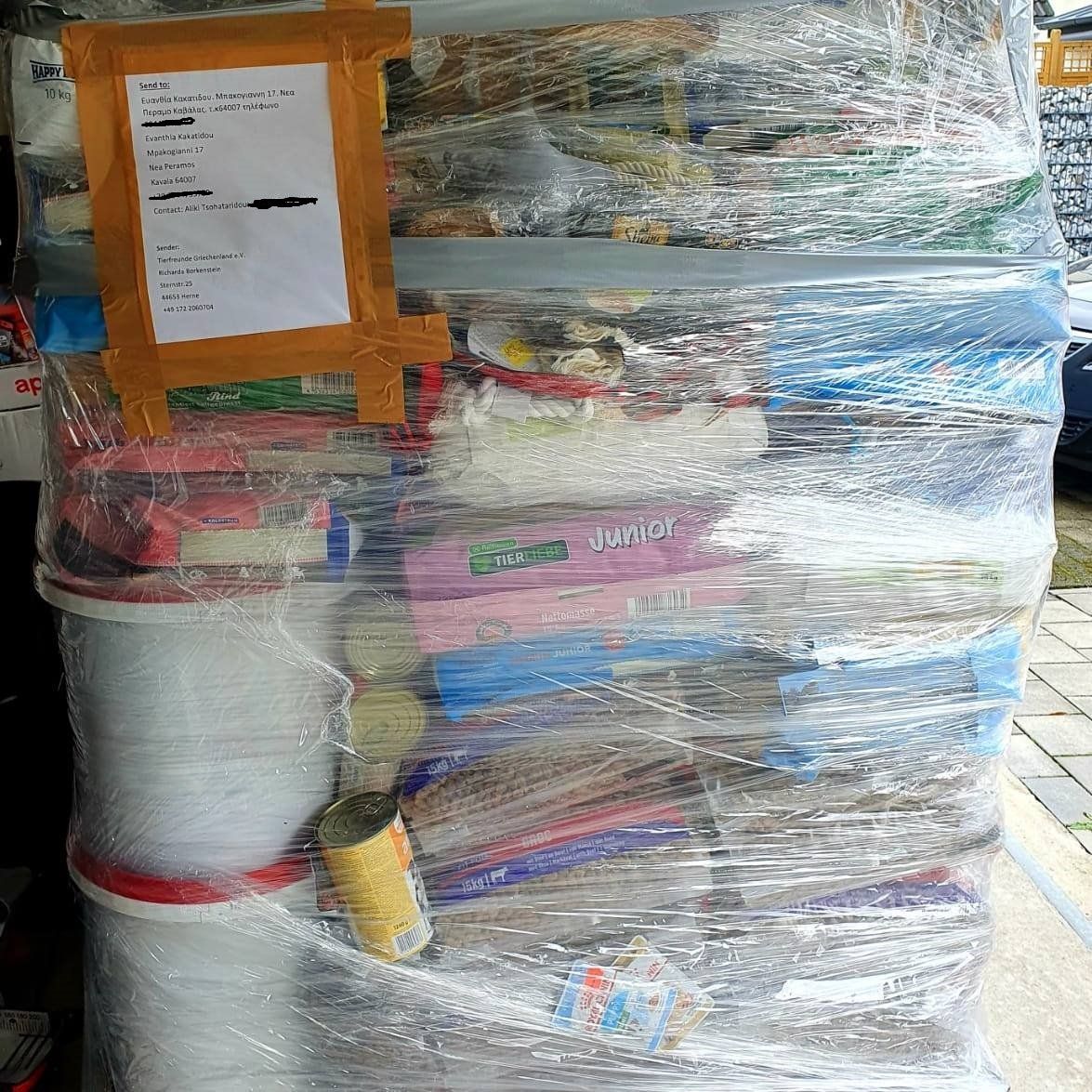 Die Palette wurde bereits am Mittwoch in Herne abgeholt und sollte voraussichtlich am Donnerstag oder Freitag in Griechenland ankommen - eine weitere Palette steht in den Startlöchern, sie ist halb gepackt.