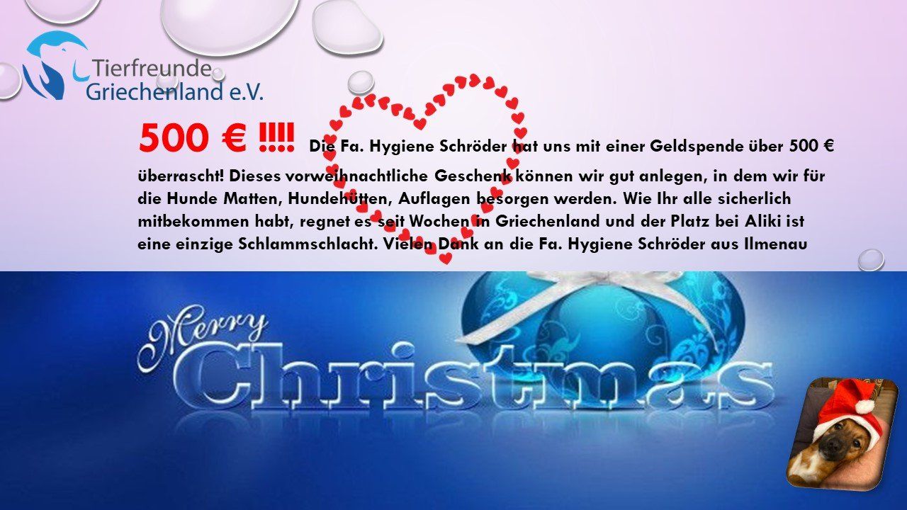 Frau Katrin Korsing hat uns diese Spende vorbeigebracht. Ganz lieben Dank an Dich Katrin!!! Vielleicht klappt es dann doch noch, eine Spendenpalette zu Weihnachten nach Griechenland auf den Weg zu bringen. Wer weiß? Spenden können hier noch abgegeben werden: Richarda Borkenstein, 44653 Herne - auch wer noch etwas den Tierschützern persönlich zu Weihnachten eine Freude machen möchte, der kann sich gerne über das Kontaktformular melden. Vielen Dank für alles!!!