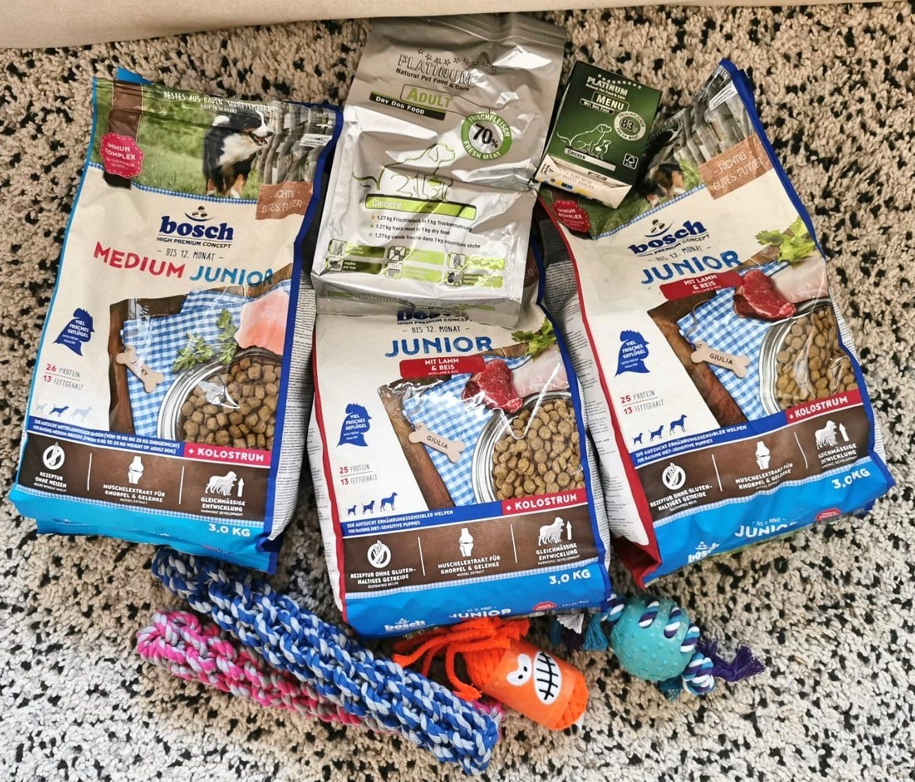 Unsere Hunde und wir freuen uns sehr, dass Sie uns dadurch viele Wochen lang mit Futter versorgen können! 🤗 Wir konnten dadurch viele Futtersäcke kaufen, die für unsere Hunde besser verträglich sowie nährstoffreicher sind ebenso getreidefrei, wie das "normale" Futter.