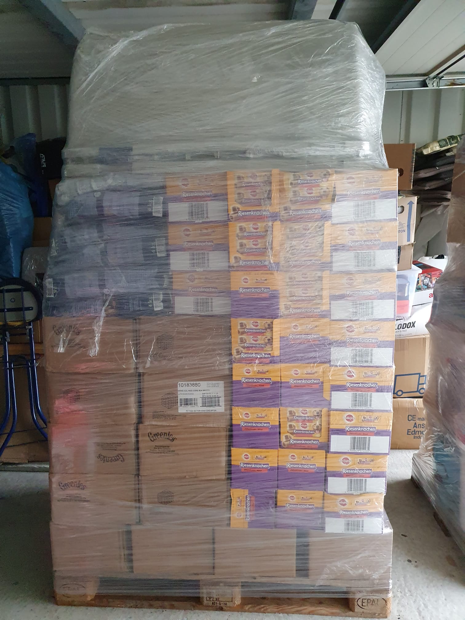 Geschafft!! Die lieben Helfer haben über eine Palette vor Weihnachten noch packen können, nun ist sie auf dem Weg nach Griechenland zu den Tierschützern Aliki, Mirko, Eva und zu unseren Hunden!!!! Vielen Dank an alle Spender, Helfer, Freunde und Bekannte, die uns so zahlreich unterstützt und dieses Projekt erst möglich gemacht haben. Aufgrund des Zeitdrucks haben wir nur die gepackte Palette fotografieren können. Die einzelnen Spenden seht ihr dann, wenn alles ausgepackt wurd...