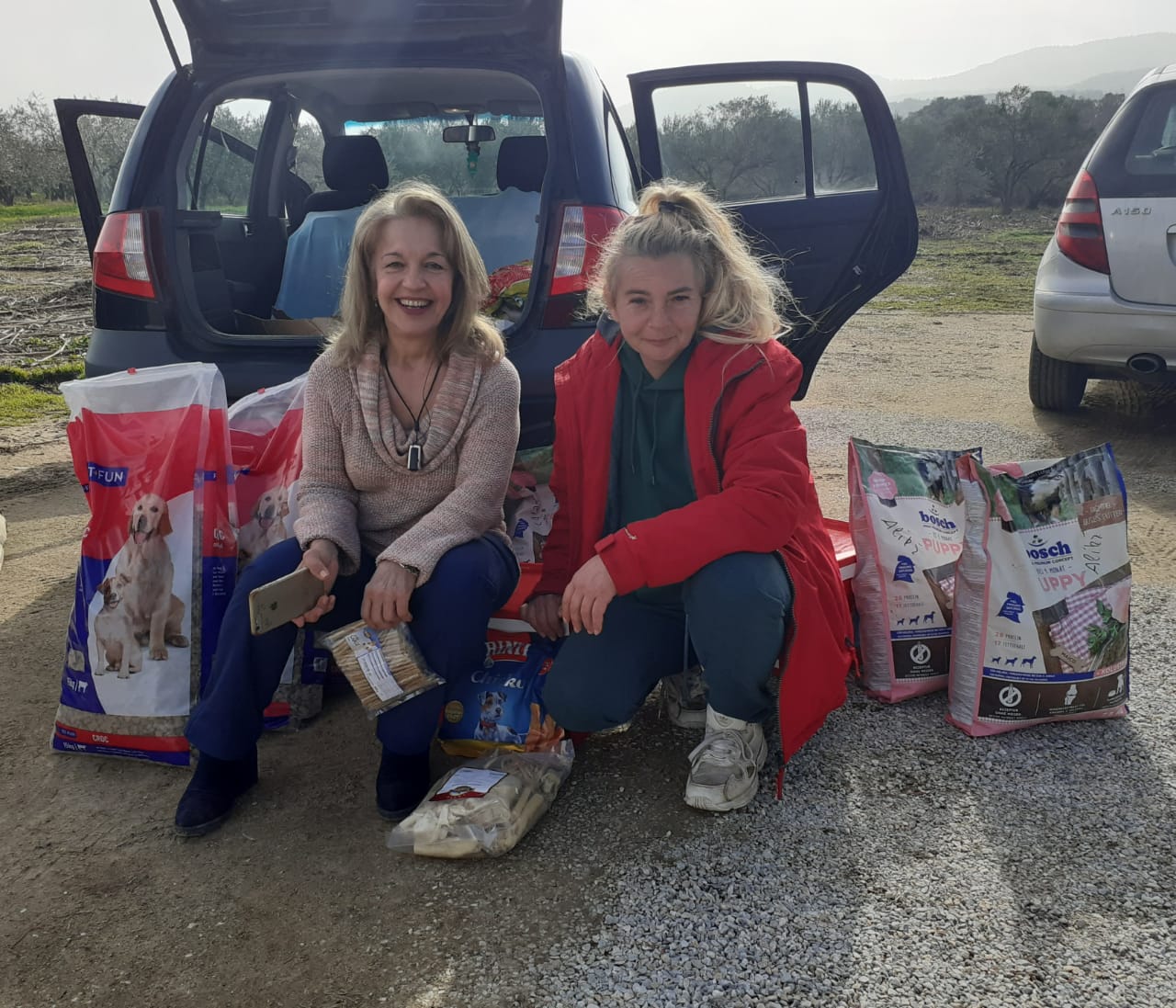 Als ich all die Sachen auf den Fotos gesehen habe war das irgendwie überhaupt nicht real. Aber jetzt als wir alles aus Alikis Auto ausgeräumt haben war es unglaublich real. Wir haben all die tollen Sachen von den Fotos wieder erkannt und uns riesig gefreut. So ganz richtig real wurde es dann als die ersten Hunde glückselig auf den Leckereien rumgekaut haben und ich den Nachwuchs der Hirtenhunde eine extra große Portion Welpenfutter kredenzt habe. Die Qualität aller Produkte ist super! Wir bedanken uns, auch im Namen aller Hunde ganz herzlich bei dir und allen Menschen, die uns diese tollen Sachen geschenkt haben 👍🏻💪🏻!!!
