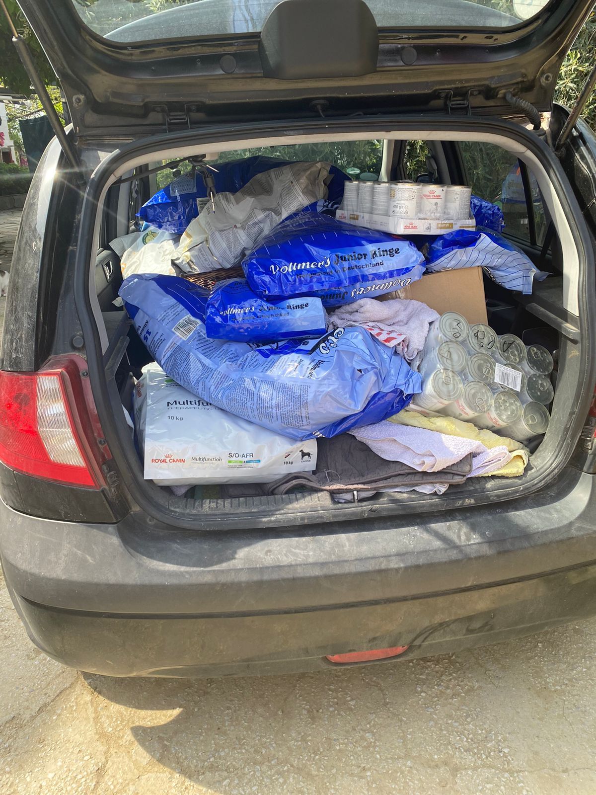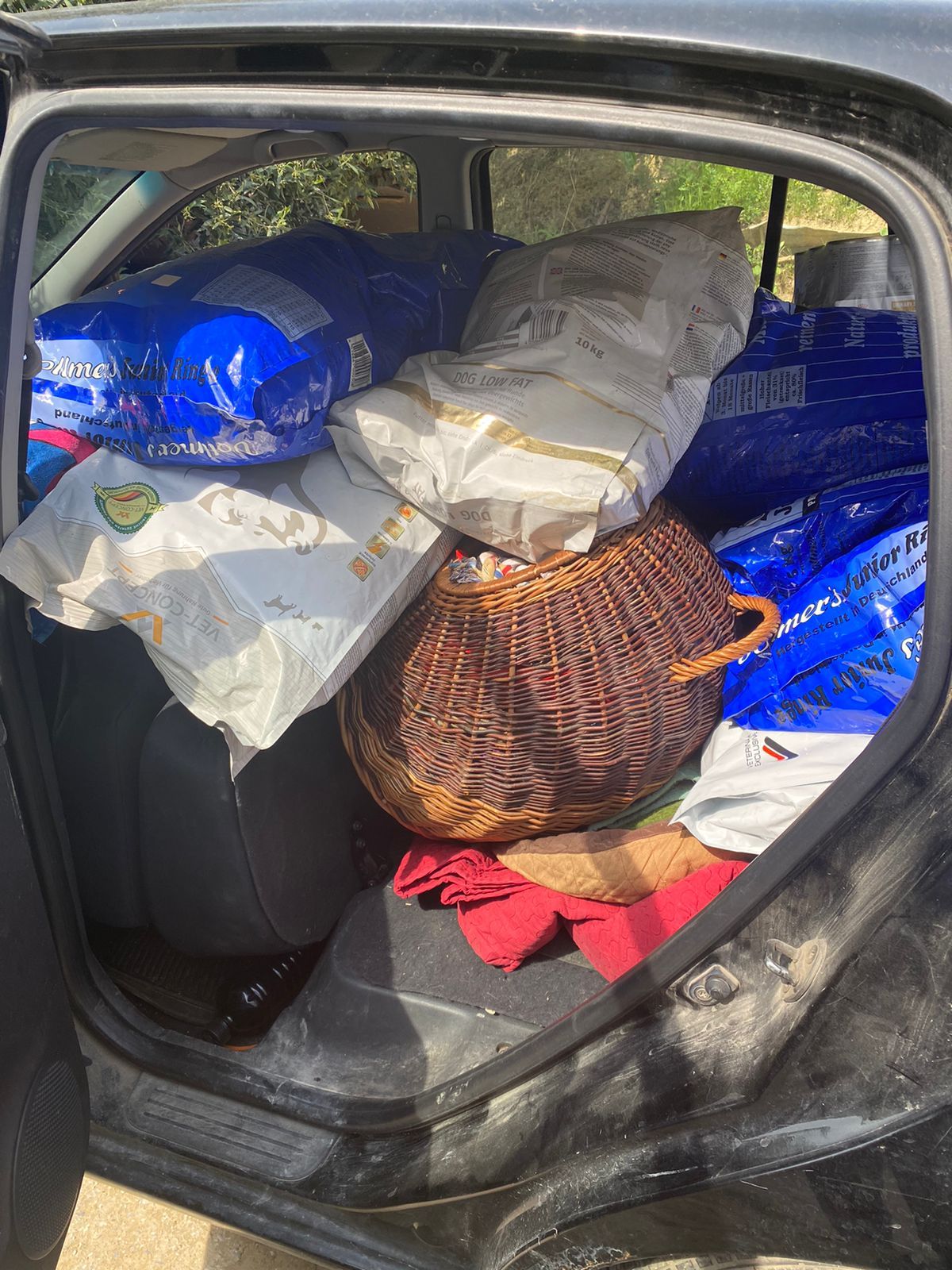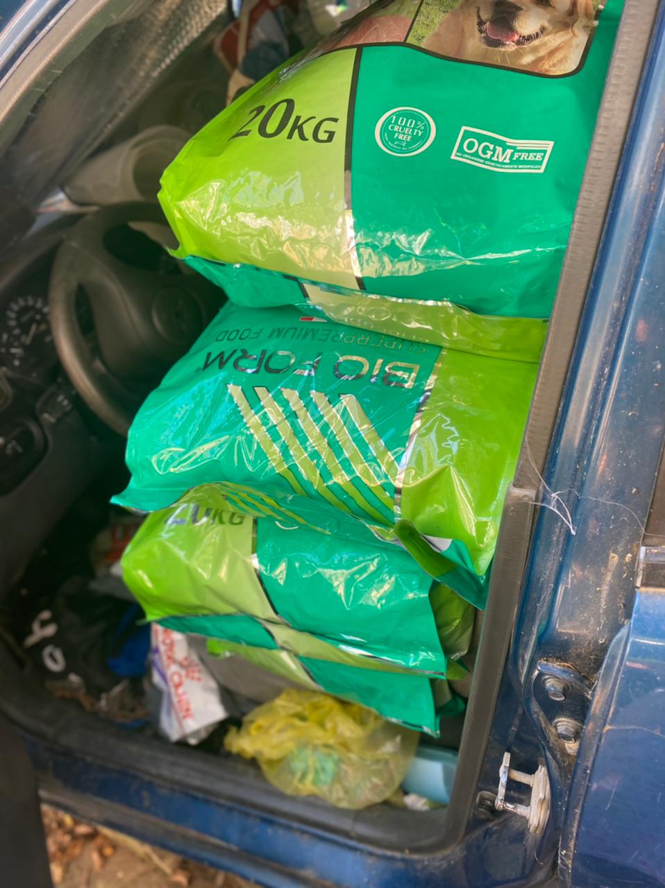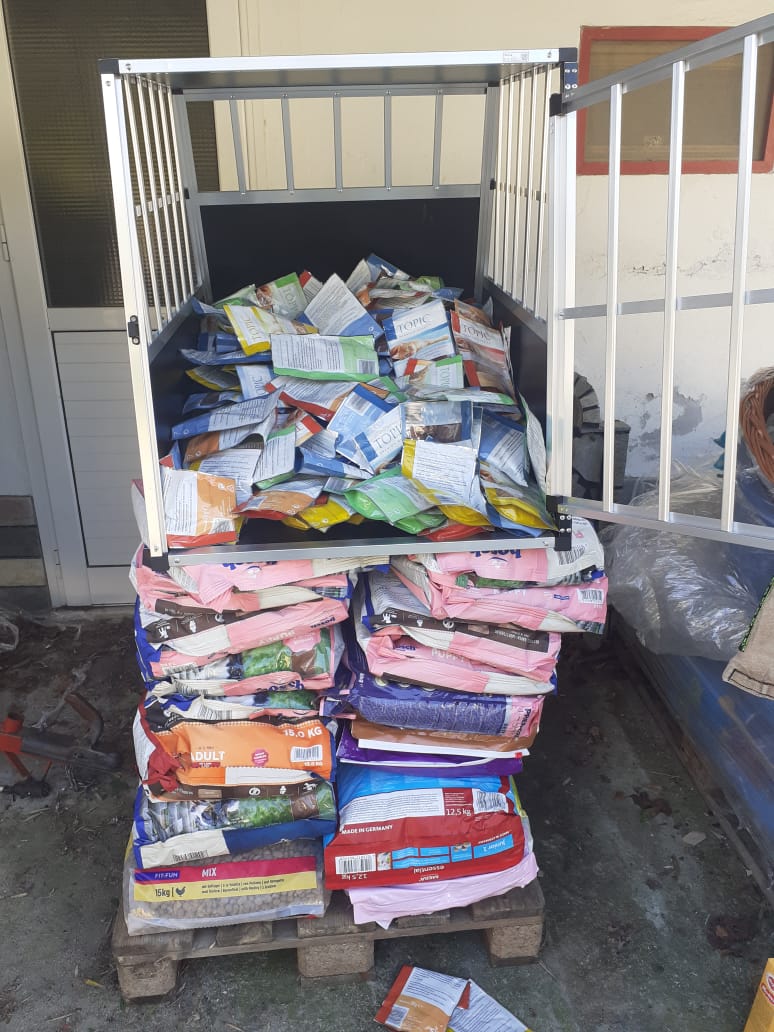Wir konnten mit den gespendeten Geldern in Griechenland Futter für unsere Welpen und Hunde kaufen, welches Aliki dann umgehend nach Hause transportieren musste und aus Mangel an Stauraum im Auto lagern muss. Diese Futterration reicht für sechs Wochen, Stück für Stück wird das Auto seine Lager-Aufgabe wieder los. Voller Einsatz vor Ort in Kavala 🇬🇷, toller Einsatz hier in Deutschland 🇩🇪 von euch als unsere unterstützenden Tierfreunde! Daaaaaanke!