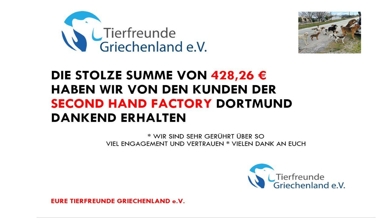 in Dortmund. Wir haben von den Kunden für unsere griechischen Fellnasen 🐕 in unserer Spendendose 340,28€ erhalten!