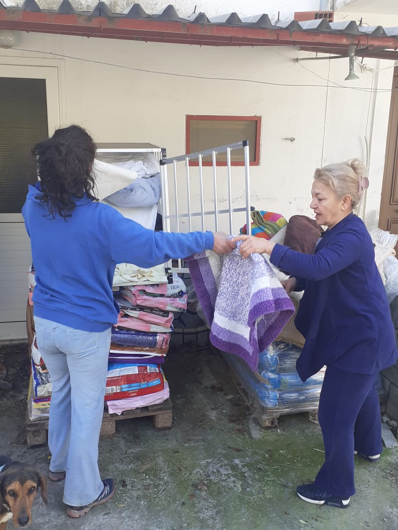 Unsere Griechin Stella, vor einem Jahr aus Griechenland gekommen, freut sich mit uns über die Spenden von der Familie Liebetrau,