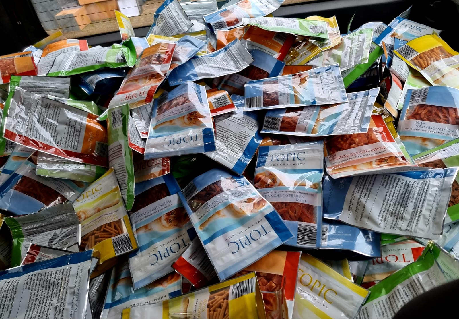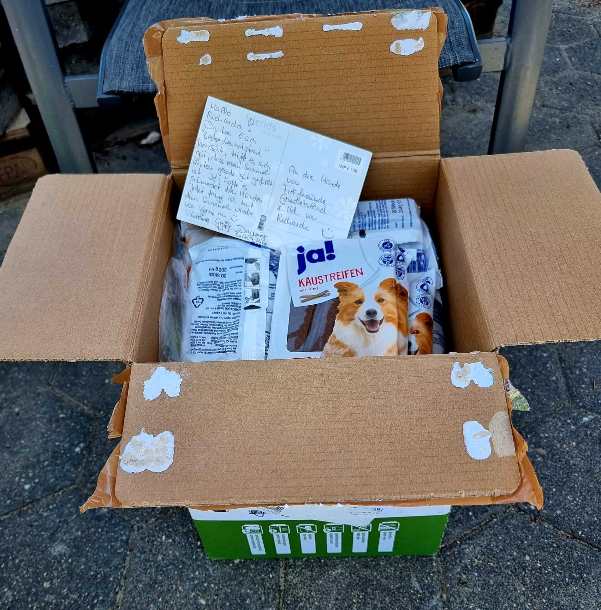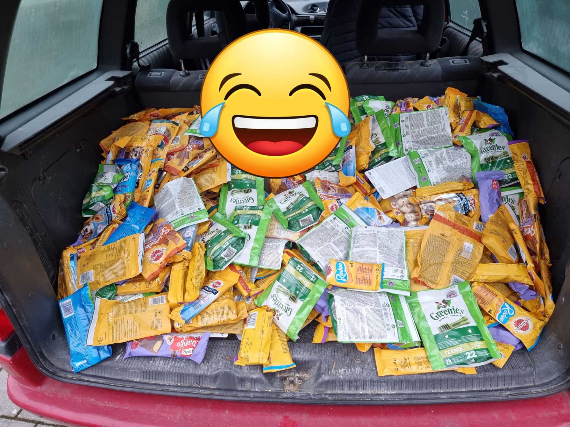 In einer ganz schnellen Aktion ist es uns gelungen, ganz viel Zahnreinigungssticks und Leckerchen sowie Futter vom