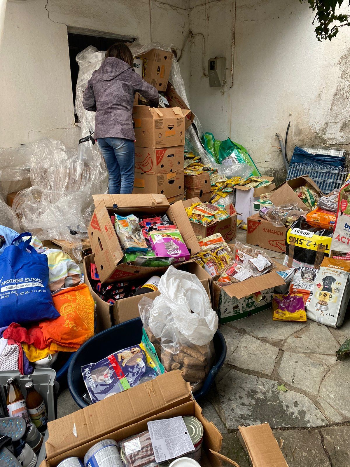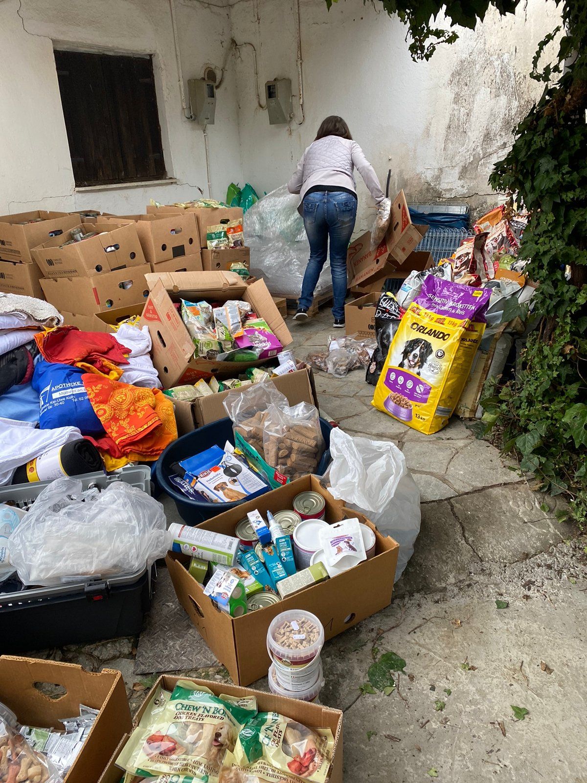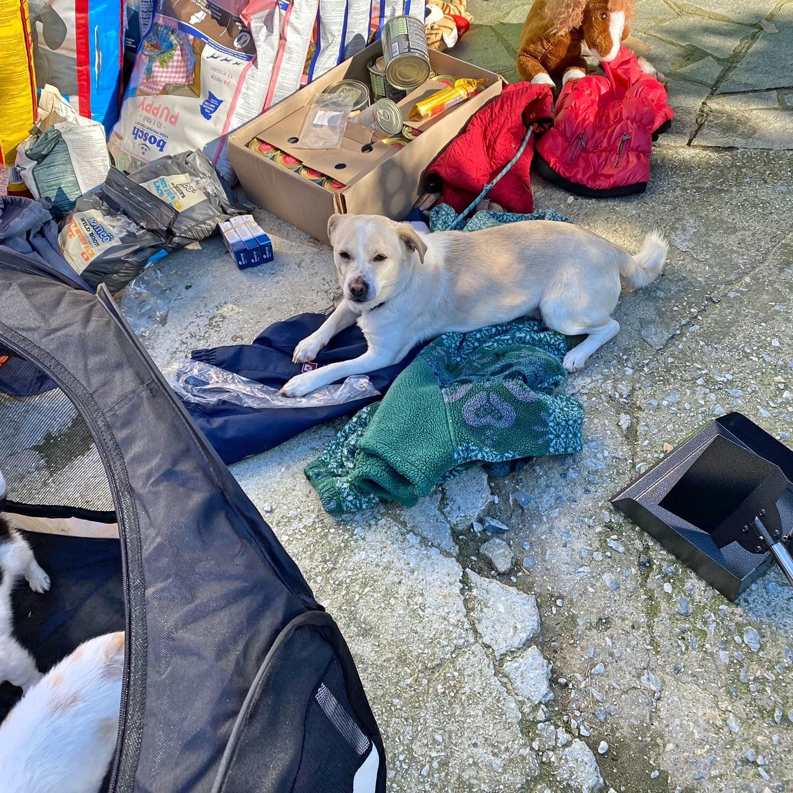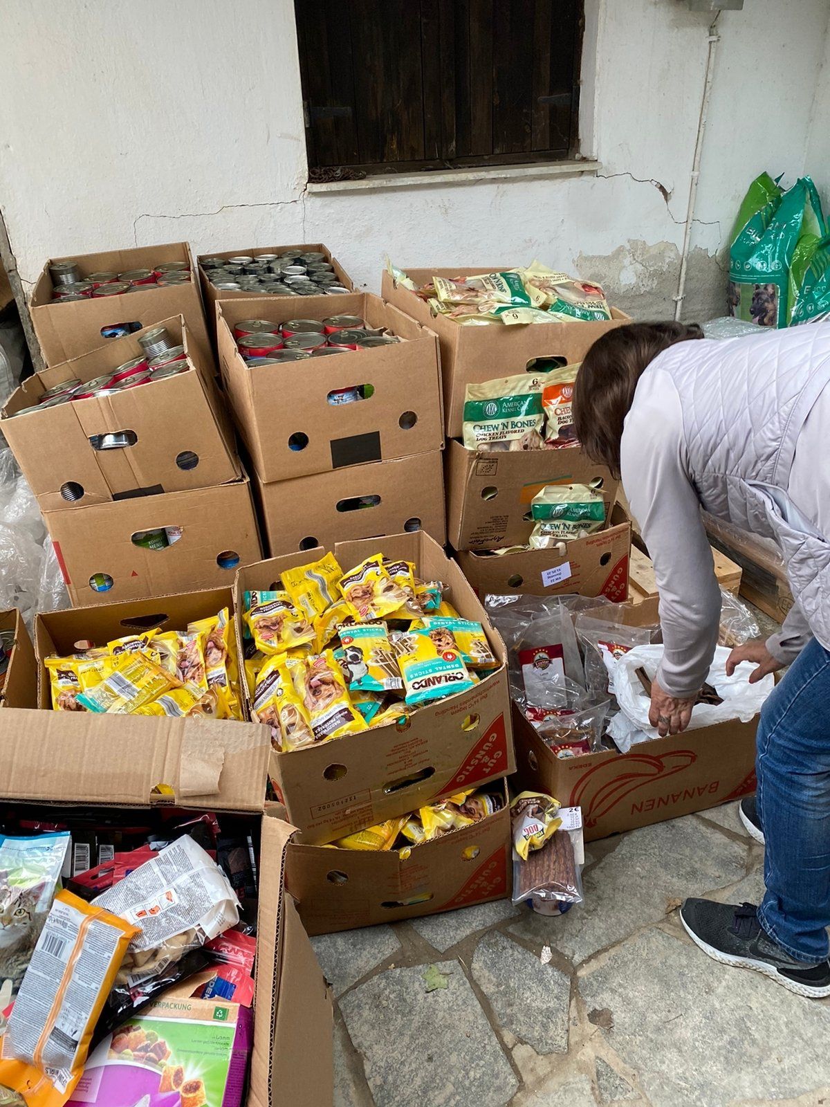 TrendPet 💕, Zum anderen hat die Familie Heidrichs aus Siegburg gesammelt und Decken, Handtücher, Geschirre, Näpfe und Körbchen schon gut in stabile Kisten verpackt ♥️und gerade noch durfte ich eine schwere Kiste mit Hundefutter und Kauknochen, mit Rinderhaut und Leckerchen vom