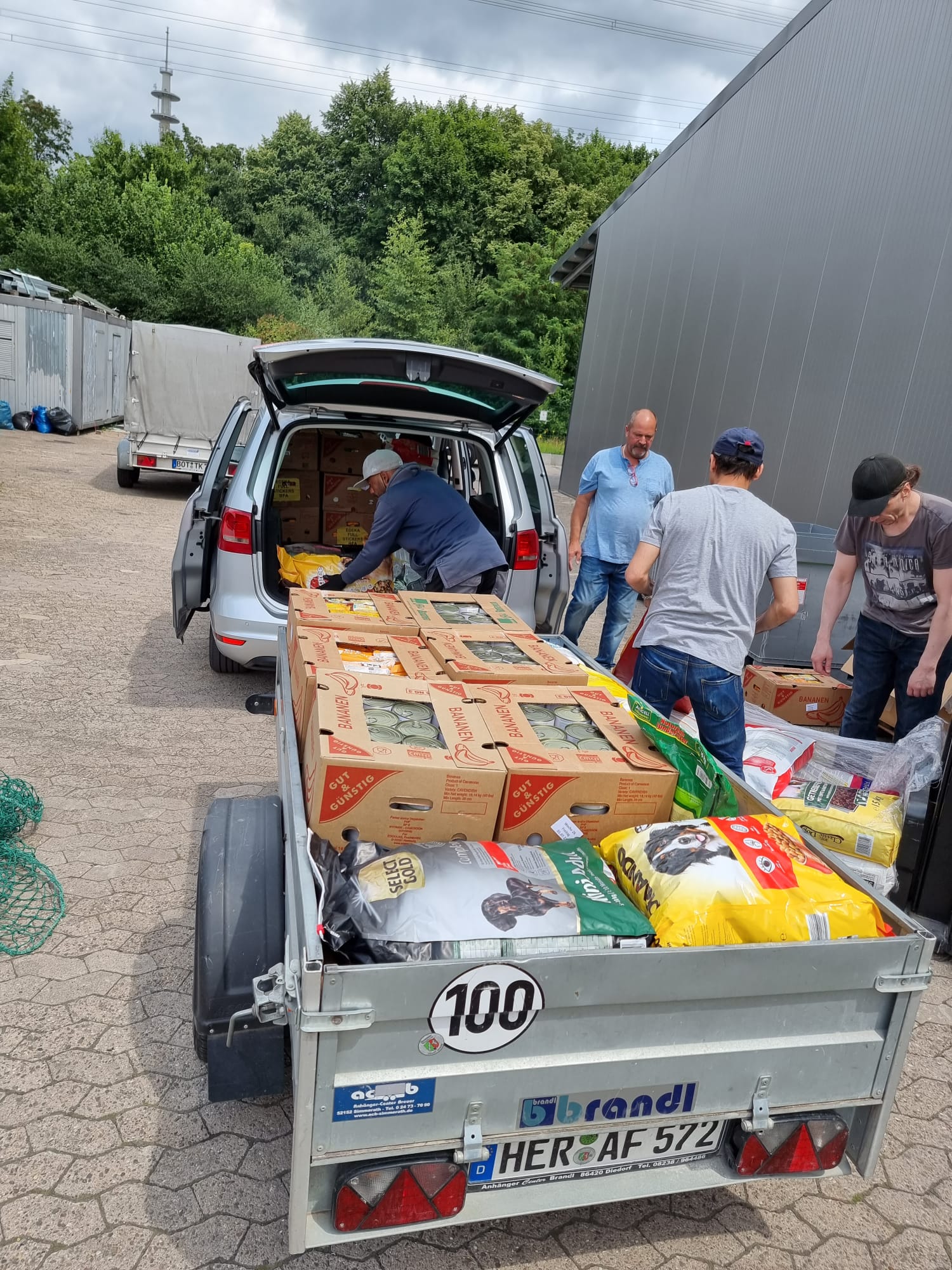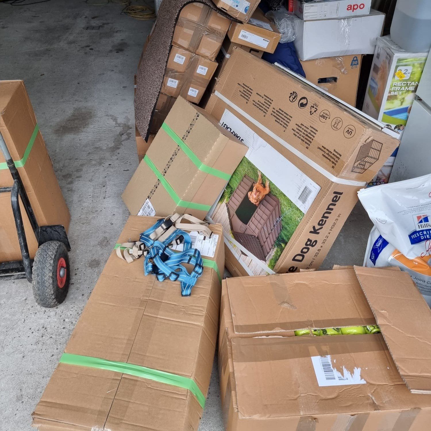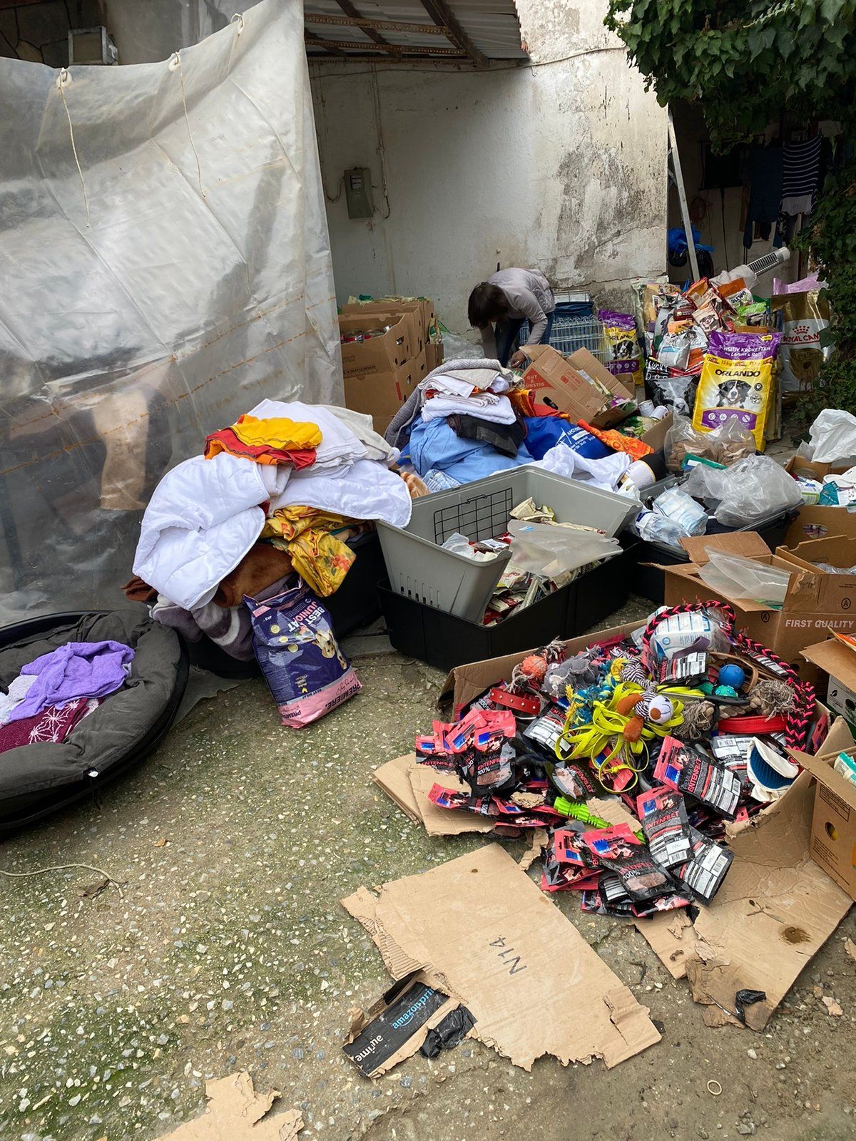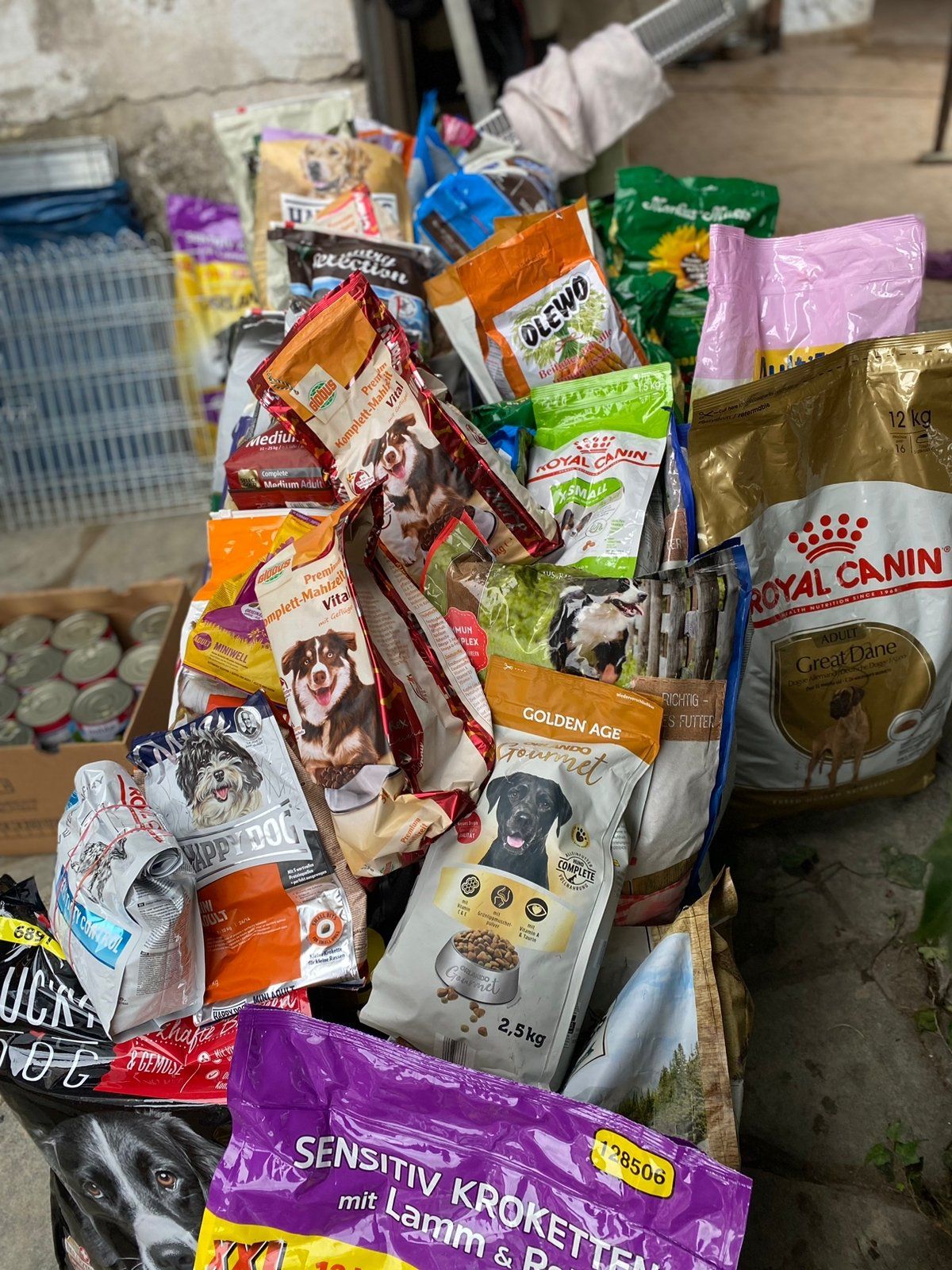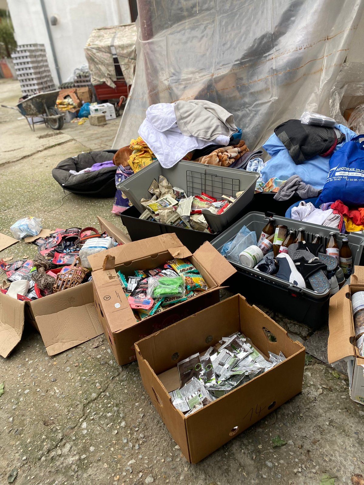 TrendPet 💕, Zum anderen hat die Familie Heidrichs aus Siegburg gesammelt und Decken, Handtücher, Geschirre, Näpfe und Körbchen schon gut in stabile Kisten verpackt ♥️und gerade noch durfte ich eine schwere Kiste mit Hundefutter und Kauknochen, mit Rinderhaut und Leckerchen vom