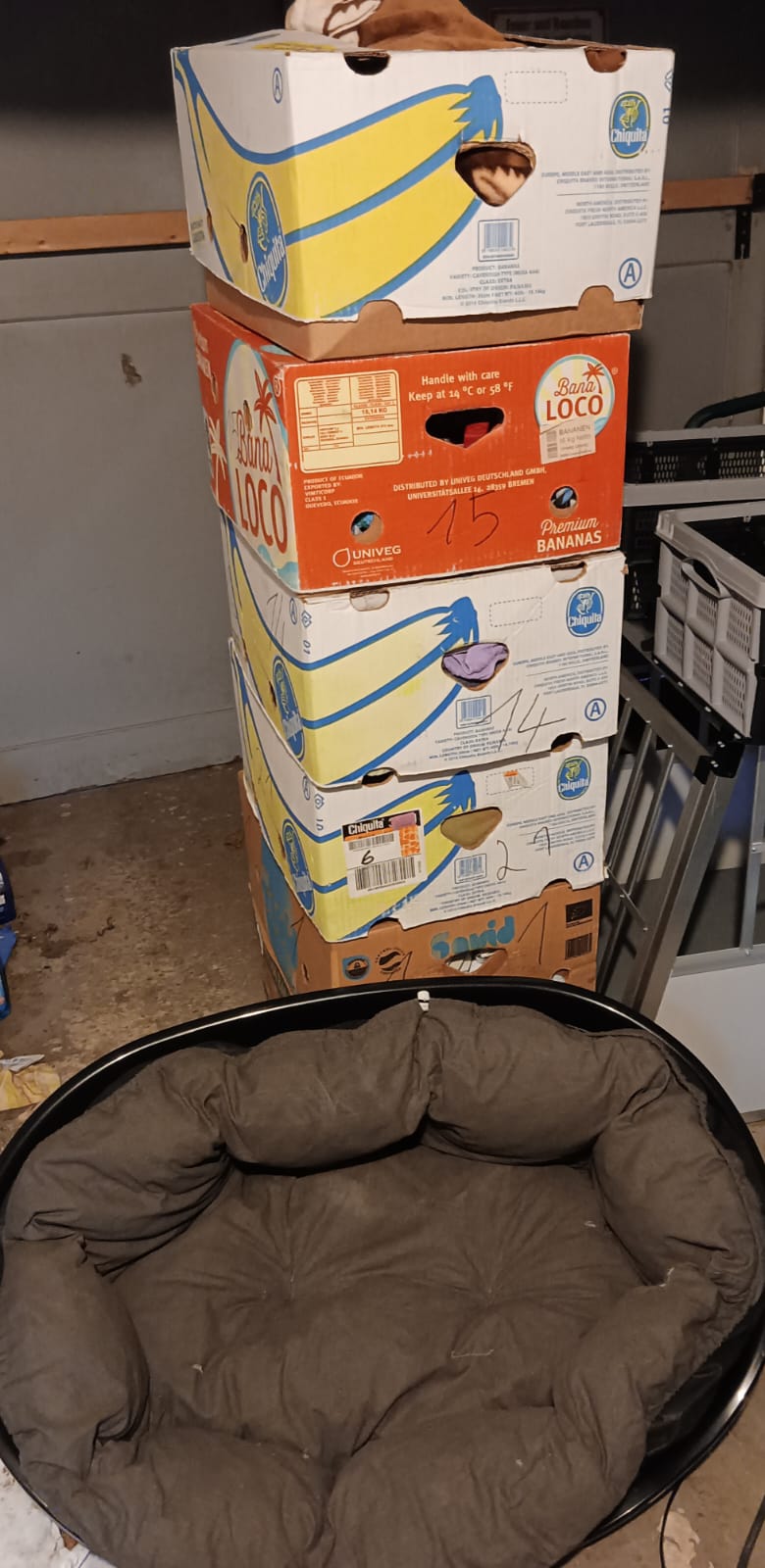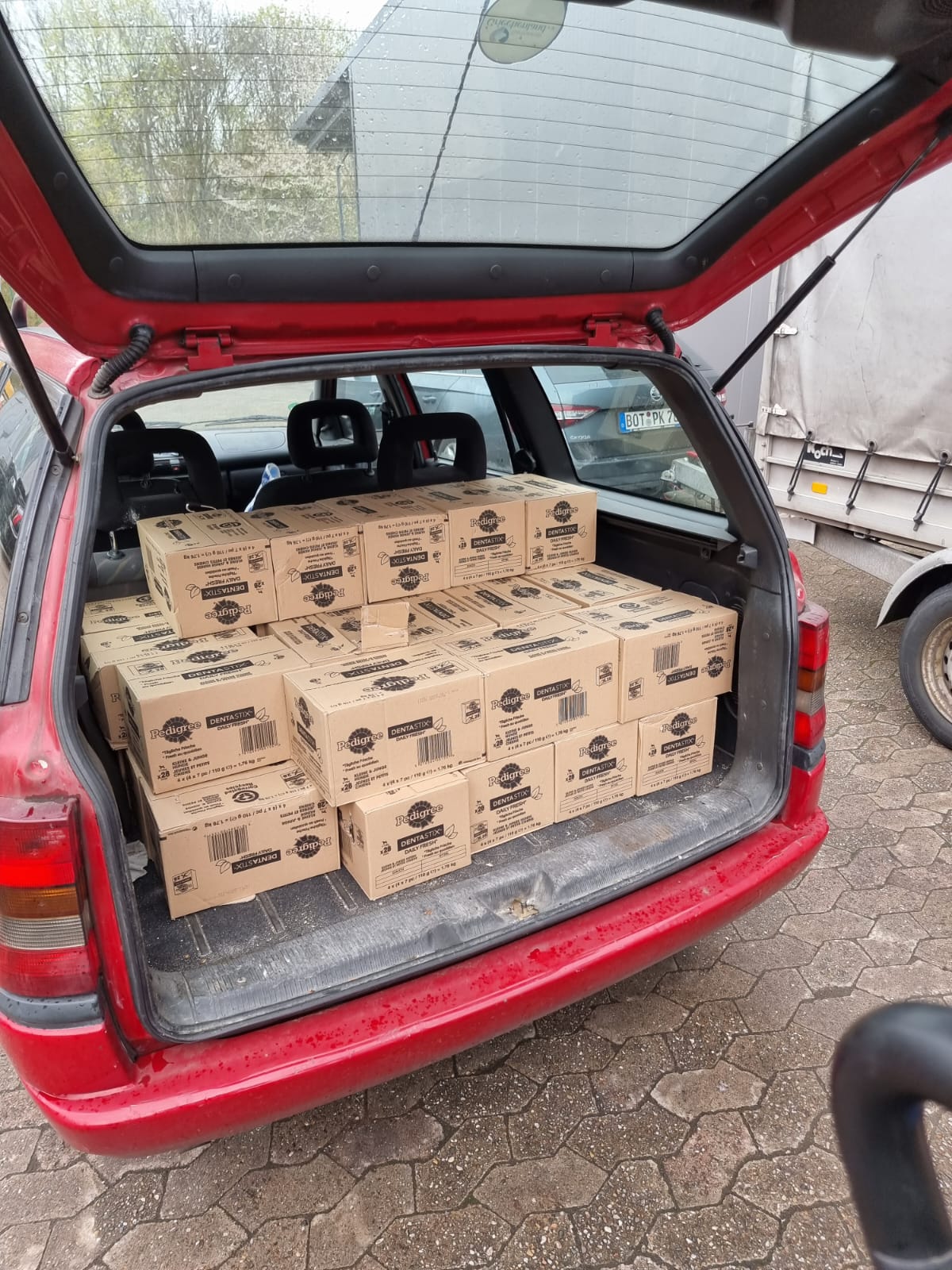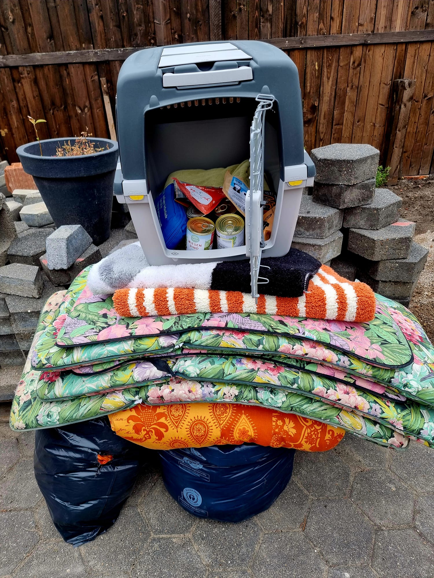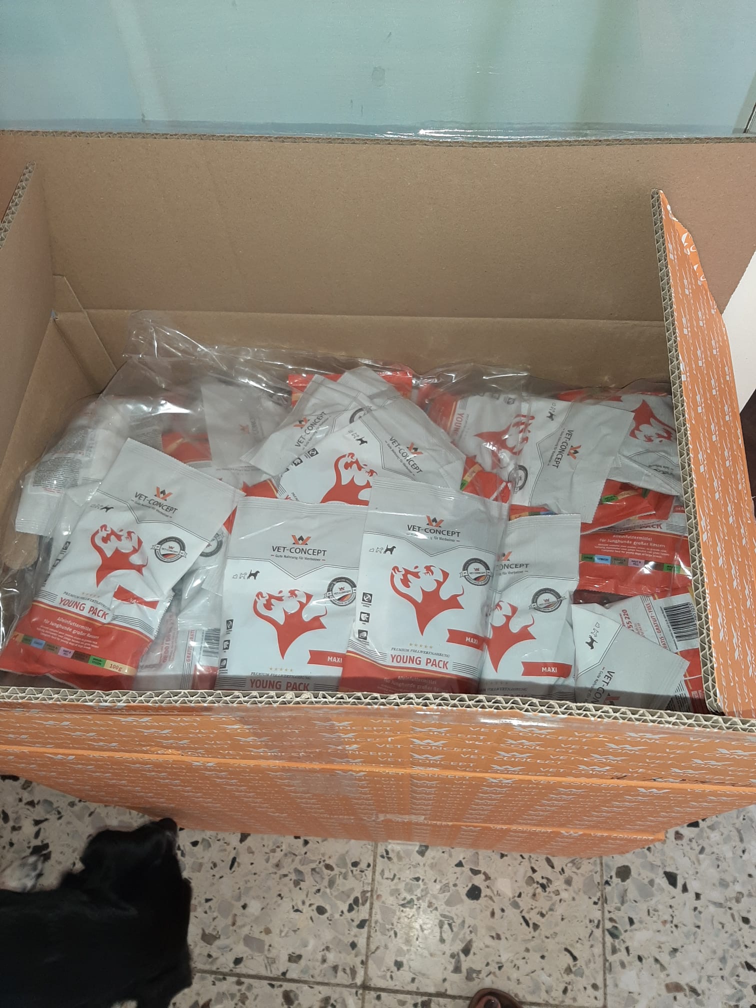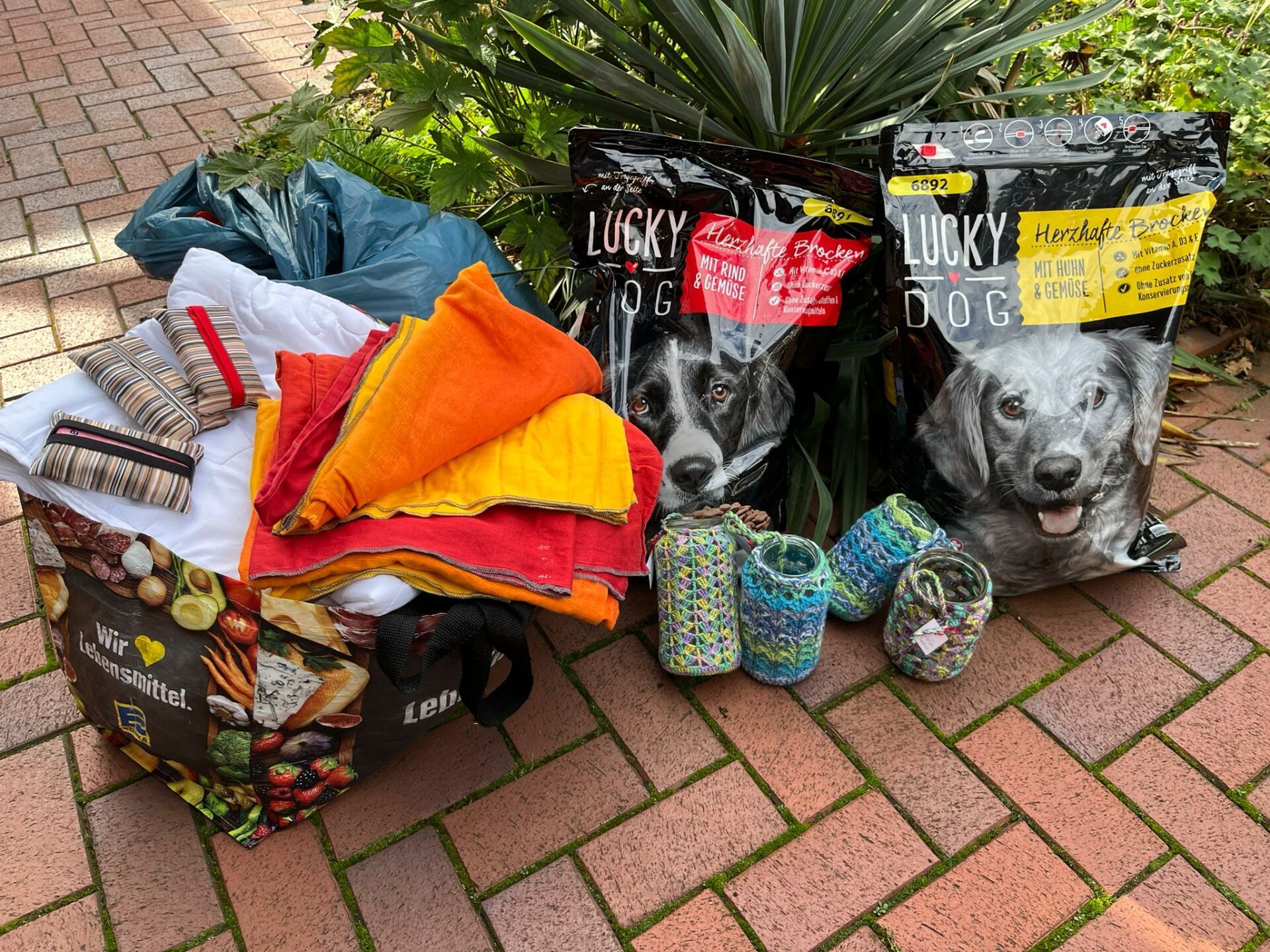 TrendPet 💕, Zum anderen hat die Familie Heidrichs aus Siegburg gesammelt und Decken, Handtücher, Geschirre, Näpfe und Körbchen schon gut in stabile Kisten verpackt ♥️und gerade noch durfte ich eine schwere Kiste mit Hundefutter und Kauknochen, mit Rinderhaut und Leckerchen vom