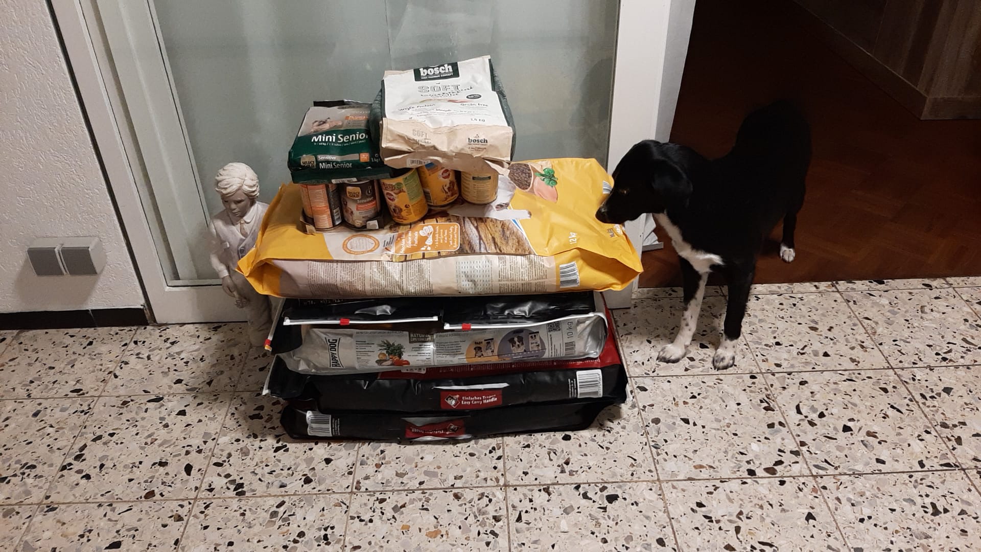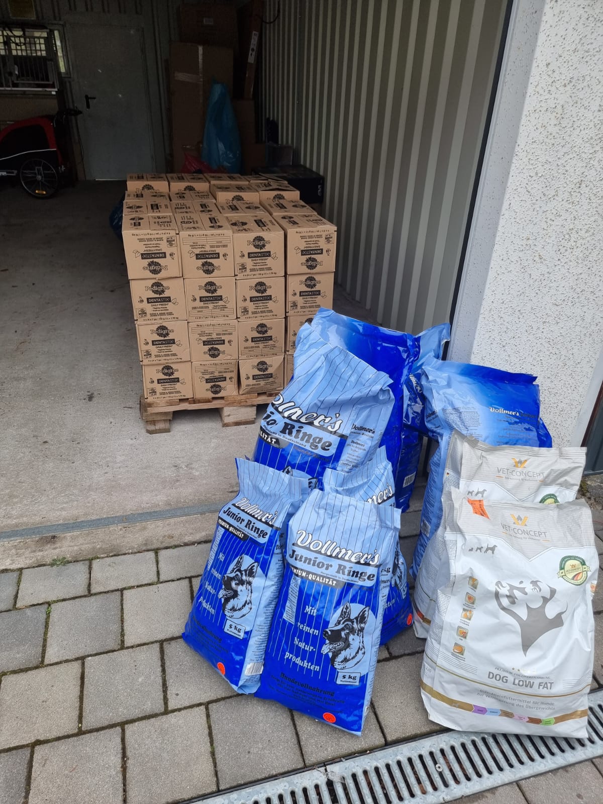 Wenn der Postmann zweimal klingelt... kommt noch ein Sack Welpenfutter zu Richarda - die nächsten Paletten werden bereits gepackt und nehmen immer mehr Volumen an.