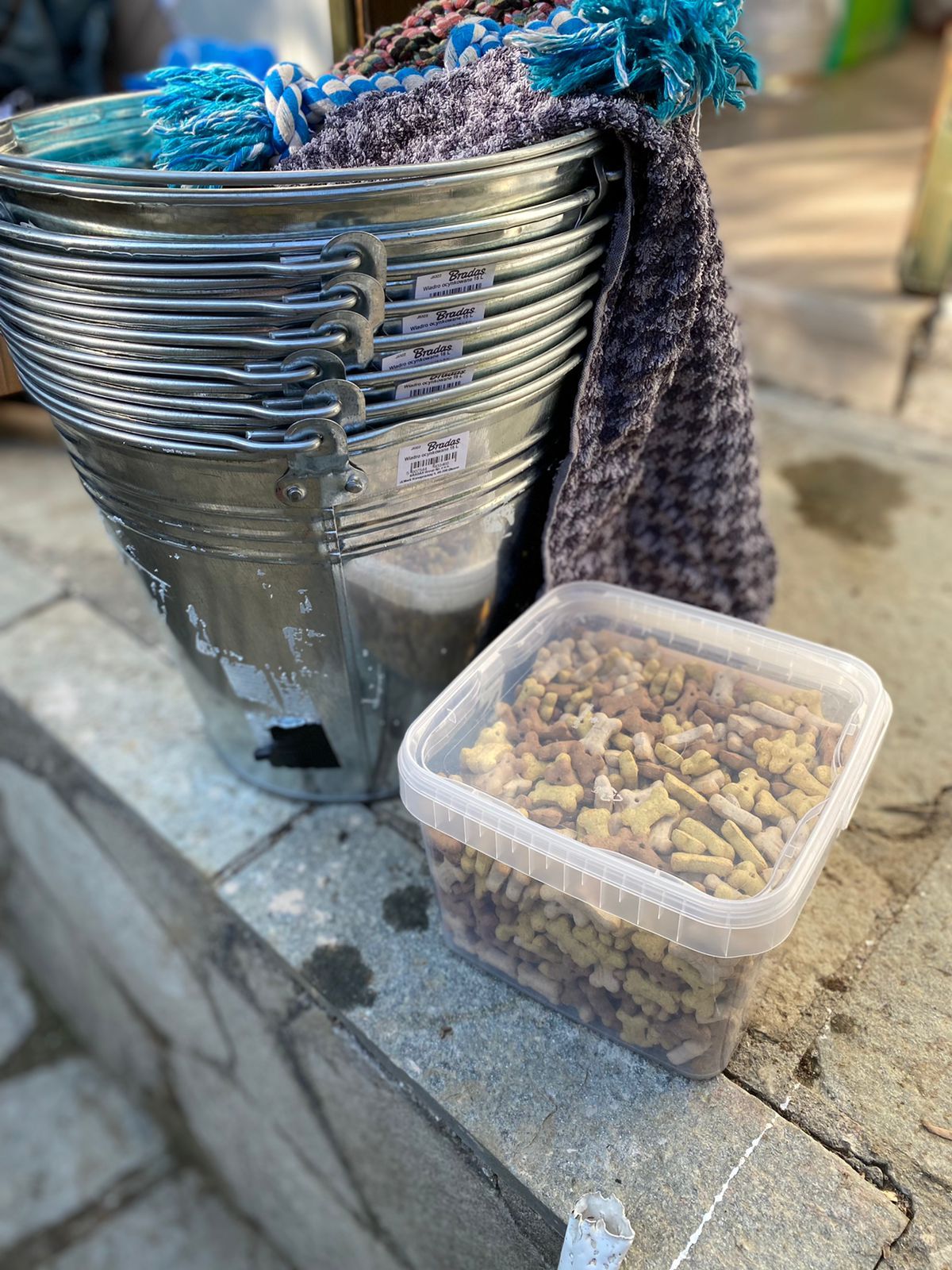 Ein herzliches Dankeschön geht an Familie Woit, die uns freundlicherweise diese sieben Eimer für unsere Hunde gespendet haben.