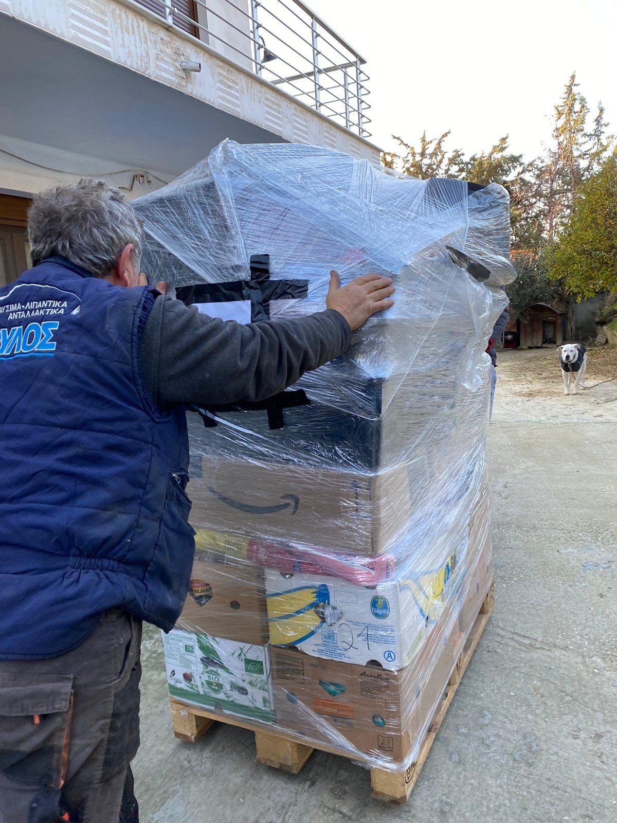 Was ein Timing! Heute wird in Griechenland auch Weihnachten gefeiert, und gestern sind die drei Paletten angekommen. All eure Spenden, alle guten Gaben, die wir in den letzten Wochen haben sammeln können, sind nun in Kavala und helfen Aliki, die Hundebande satt zu bekommen, zu beschäftigen, warmzuhalten, zu heilen ❤️🩹💙