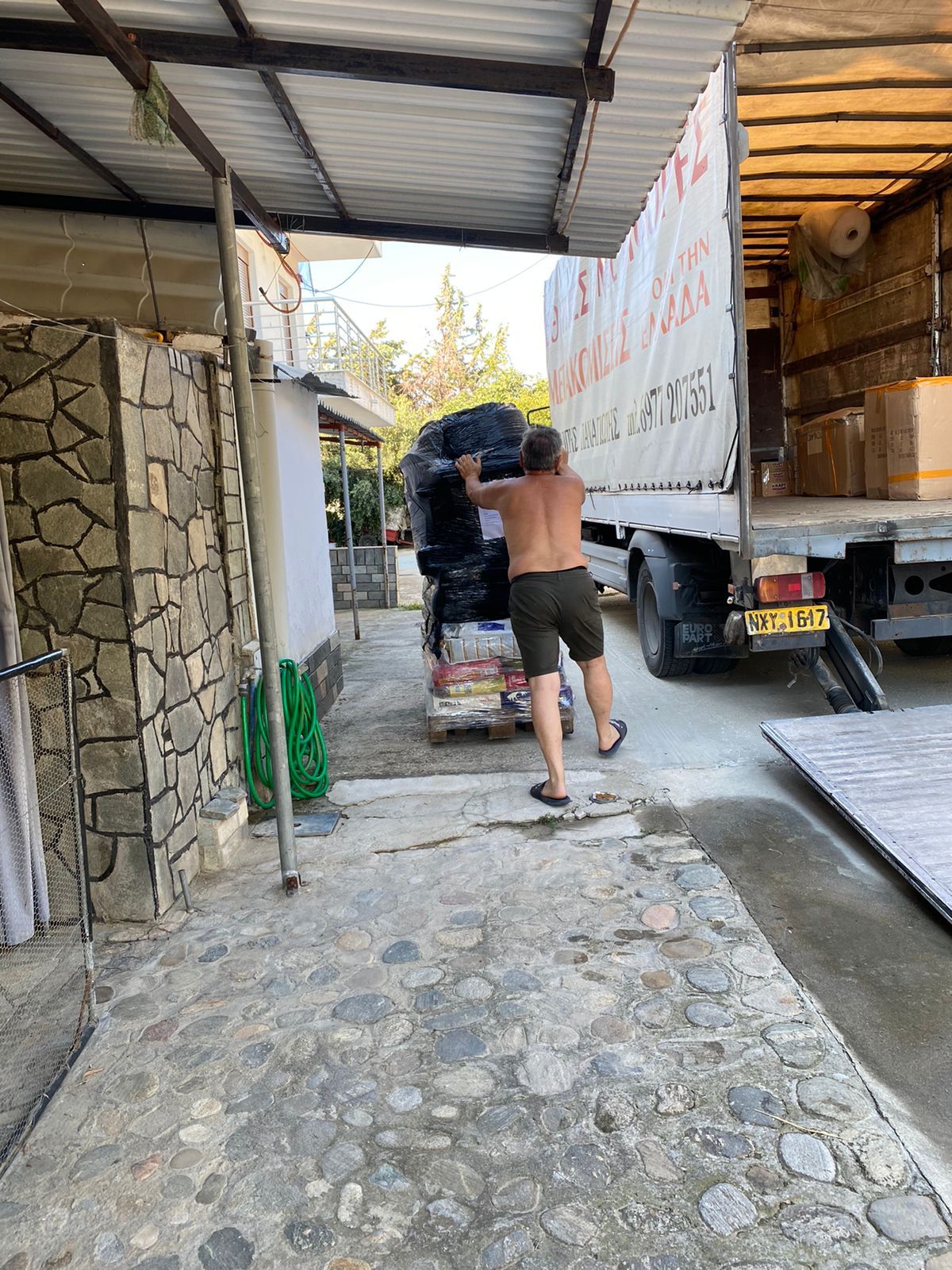 Die beiden Paletten mit den vielen Spenden, wir berichteten sind bei Aliki angekommen. Sie werden nach und nach ausgepackt, dann bleibt die Freude ein bisschen länger. Aktuell ist es auch in Griechenland sehr heiß und momentan alle Hände voll zu tun, so reisen am Wochenende wieder drei Fellnasen zu ihren Familien nach Deutschland und daher wird Aliki erst in den nächsten Tagen an die Folie gehen und sich über den Inhalt freuen. Freuen wir uns mit ihr und sagen vor allem danke an all diejenigen, die uns hier so großartig unterstützt haben.