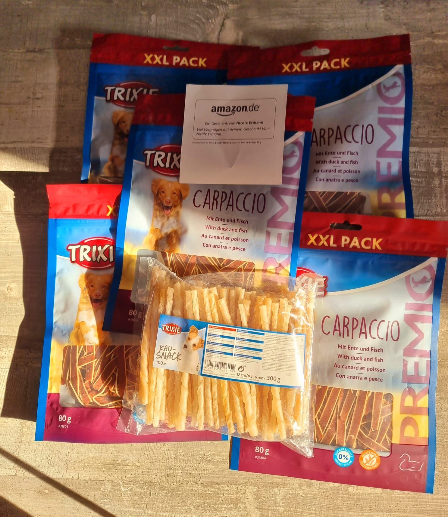 Danke sagen wir, Jessica und Lumpi für die Spende der Leckerchen. Lumpi ist einer unserer Griechen, der letztes Jahr ein schönes Zuhause bei Jessica gefunden hat. Auf unserer Wunschliste bei Amazon haben sie dies entdeckt und uns zukommen lassen. Somit ist der Anfang für die nächste Palette gemacht. Danke von Herzen! 💙