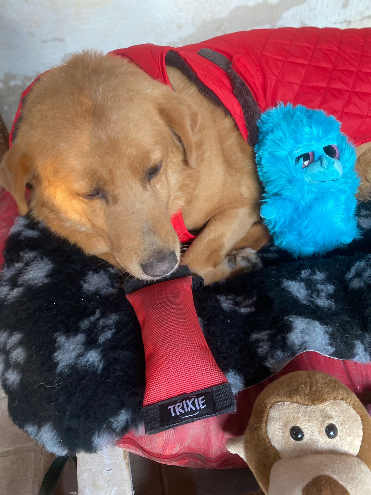 Mit dem letzten Transporter haben wir Spenden und Geschenke nach Kavala mitgeben können, die nun angekommen sind. Große Freude bei unseren Tierschützerinnen! Aber nicht nur, auch die Hunde haben ihre Glücksbringer ins Herz geschlossen. Hier sehen wir Kanelos auf seiner neuen Decke. Sein Dank geht an Sandra Mikulic, die ein warmen Mäntelchen für unser Sorgenkind spendete. Kanelos kann durch eine Schussverletzung seine Hinterläufe nicht mehr benutzen und so kommt er besser durch den griechischen Winter! Alle anderen Hunde profitieren natürlich auch von den gespendeten Dingen! Wir sagen Danke!