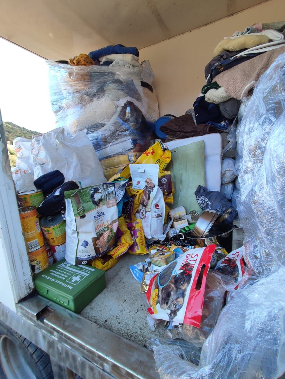Gerd und Uschi Urbach haben jeden Zentimeter ihres Autos ausgenutzt, um diese Spenden uns zu bringen, die mit auf die nächste Palette nach Griechenland gehen. Besonders hilfreich sind natürlich die Liege-Unterlagen, und all die Decken und Kissen, die unsere Hunde vor Ort warm halten werden. Herzlichen Dank im Namen unserer Fellnasen in GR sagen wir hier aus DE 💙