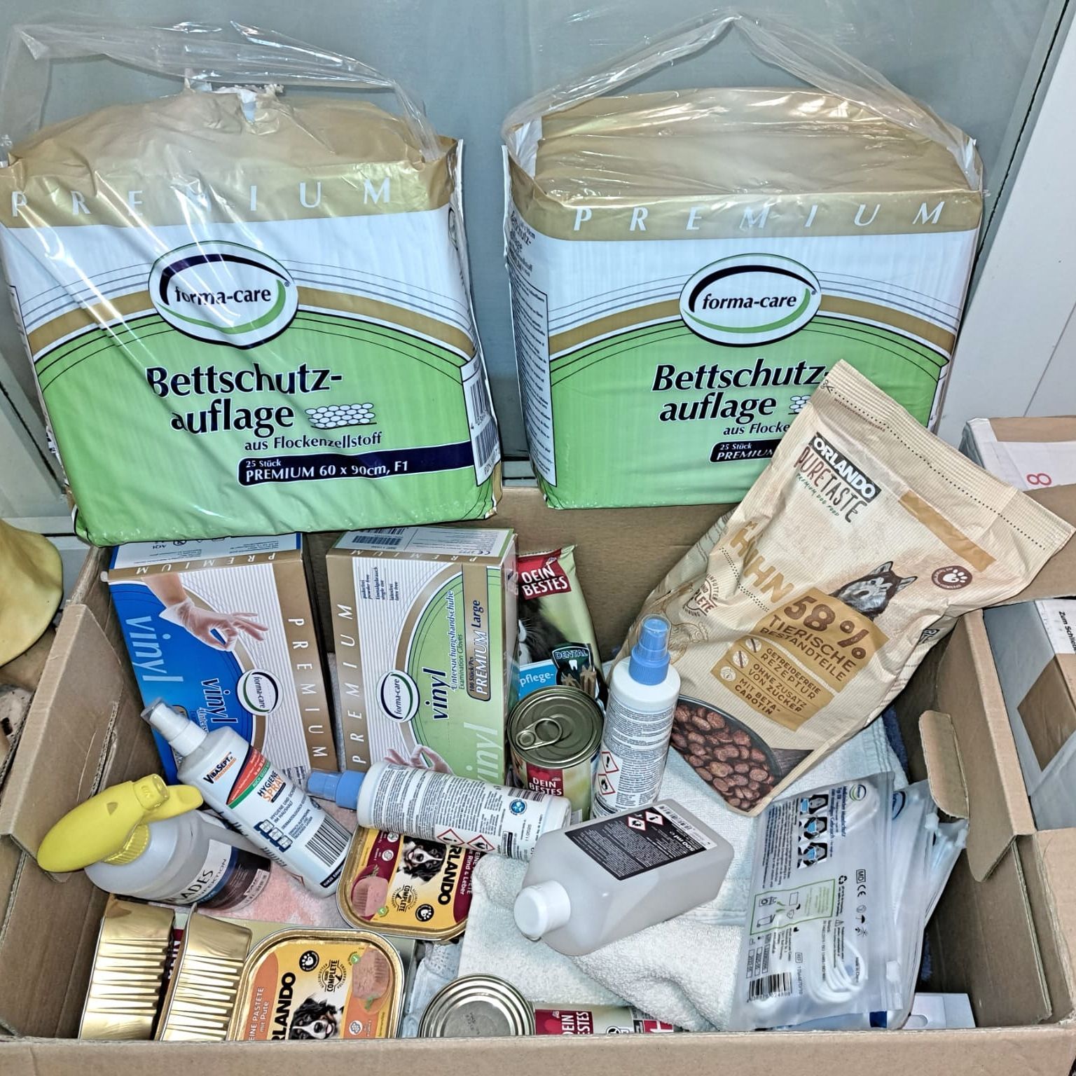 Herzlichen Dank Sandra Wick hat uns einen Karton voller Medizin- und Hygieneartikel geschickt, dazu liebenswert ein paar Leckerchen gepackt. Gerade Hygieneunterlagen können wir gut gebrauchen, haben wir doch einen ausgesetzten Schwung Welpen vor unserem Tierheim gefunden. Unser Dank für diese Spende kommt von Herzen. 💙