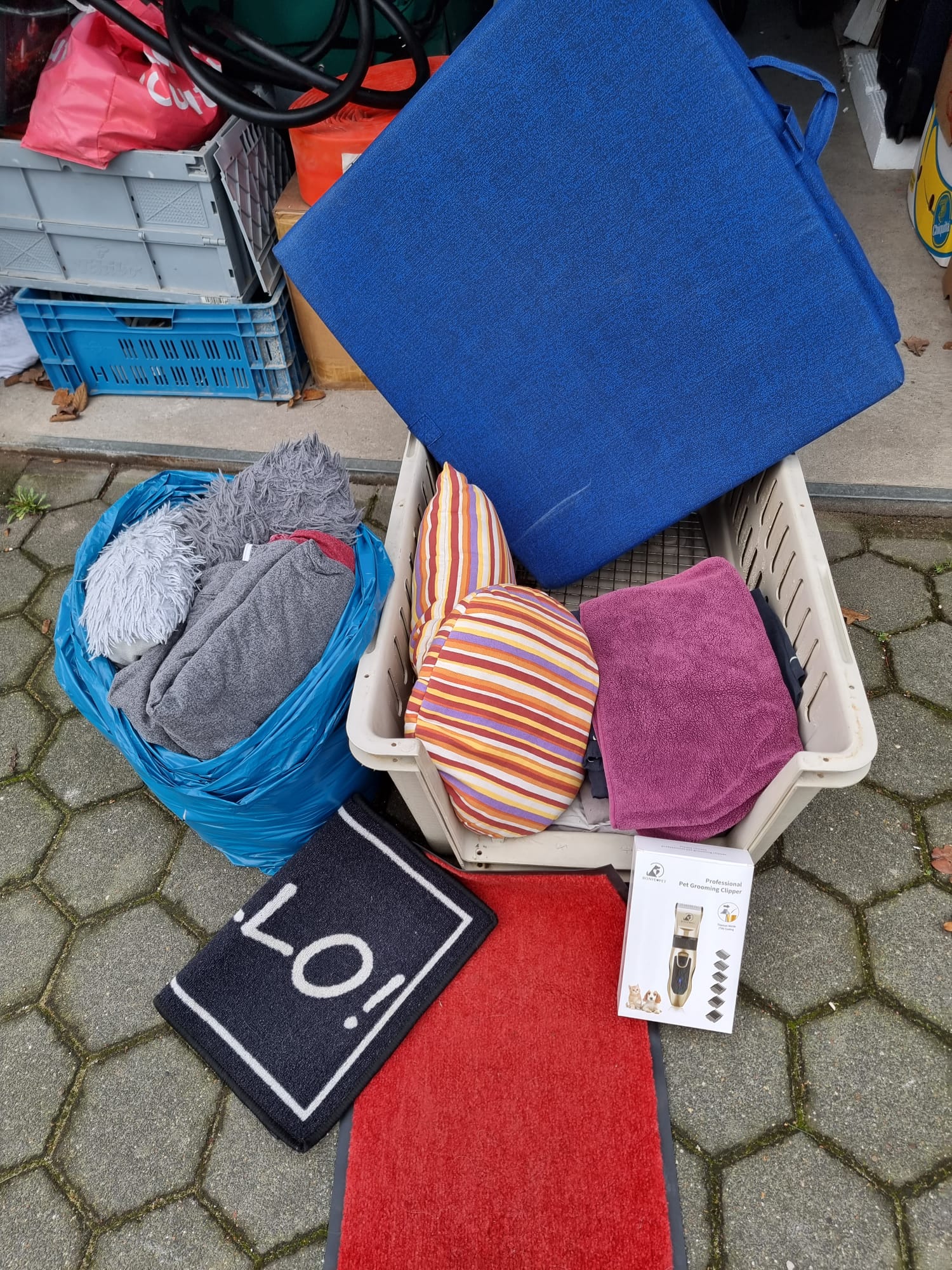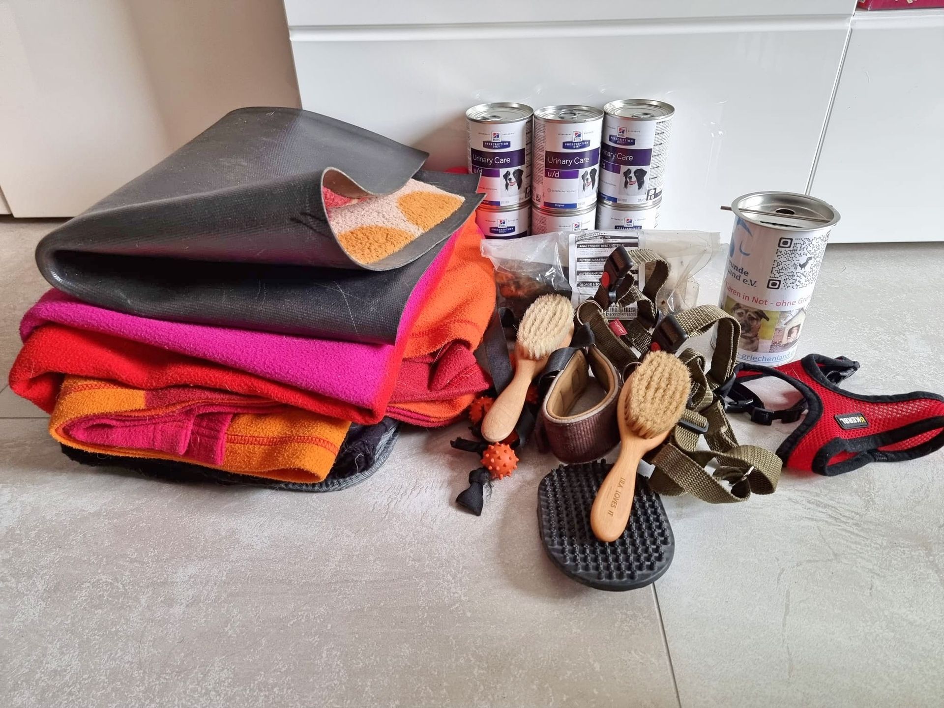 Katrin Korsing, eine unserer treuen Unterstützenden, hat uns mal wieder Spenden zukommen lassen. Nicht nur jede Menge Decken, auch eine Transportbox und ganz genial, ein Fell/ Haar-Schneidegerät sind in der Spendenbox.