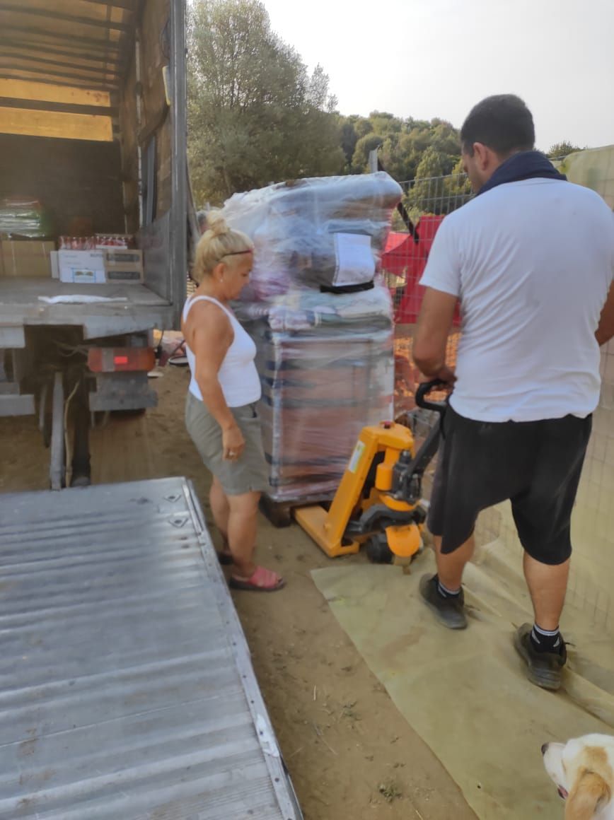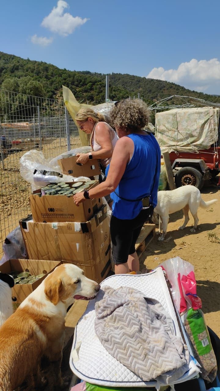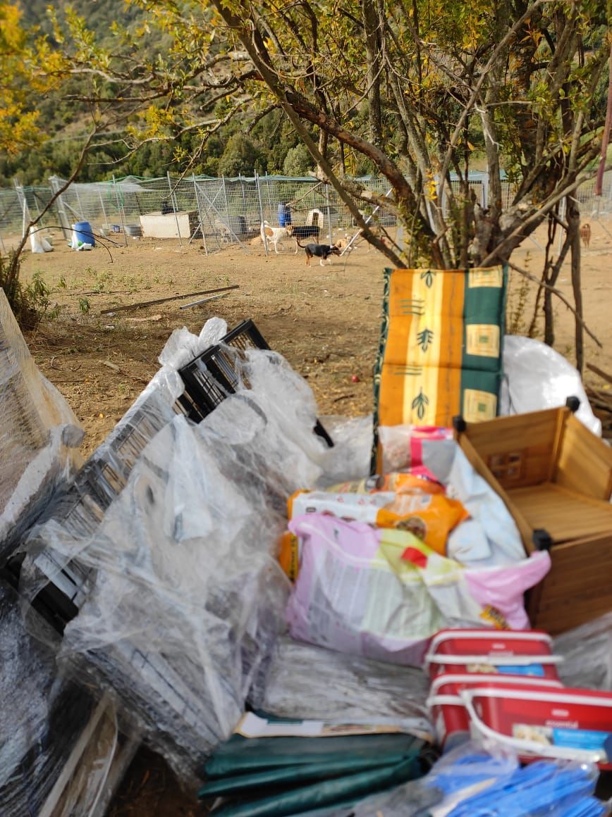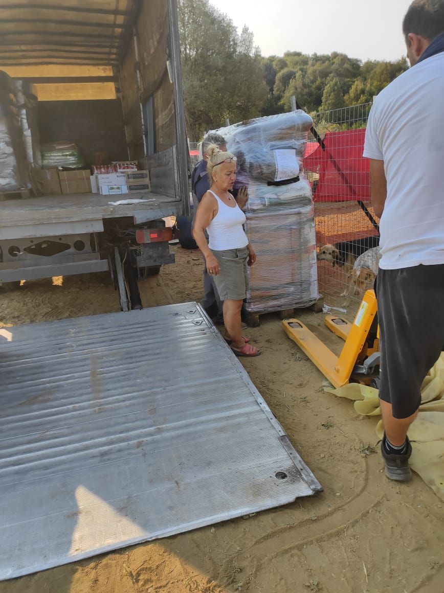 Die drei Spendenpaletten sind gut im neuen Gehege angekommen, Stück für Stück werden sie nun ausgepackt, alles gut verstaut, damit es aus der Sonne heraus kommt und vor den Hunden schon mal in Sicherheit gebracht wird. Aliki Villi und Eva mit ihren Helfern sind unendlich dankbar für die große Unterstützung, die von euch allen für diesen guten Zweck zusammengekommen sind.