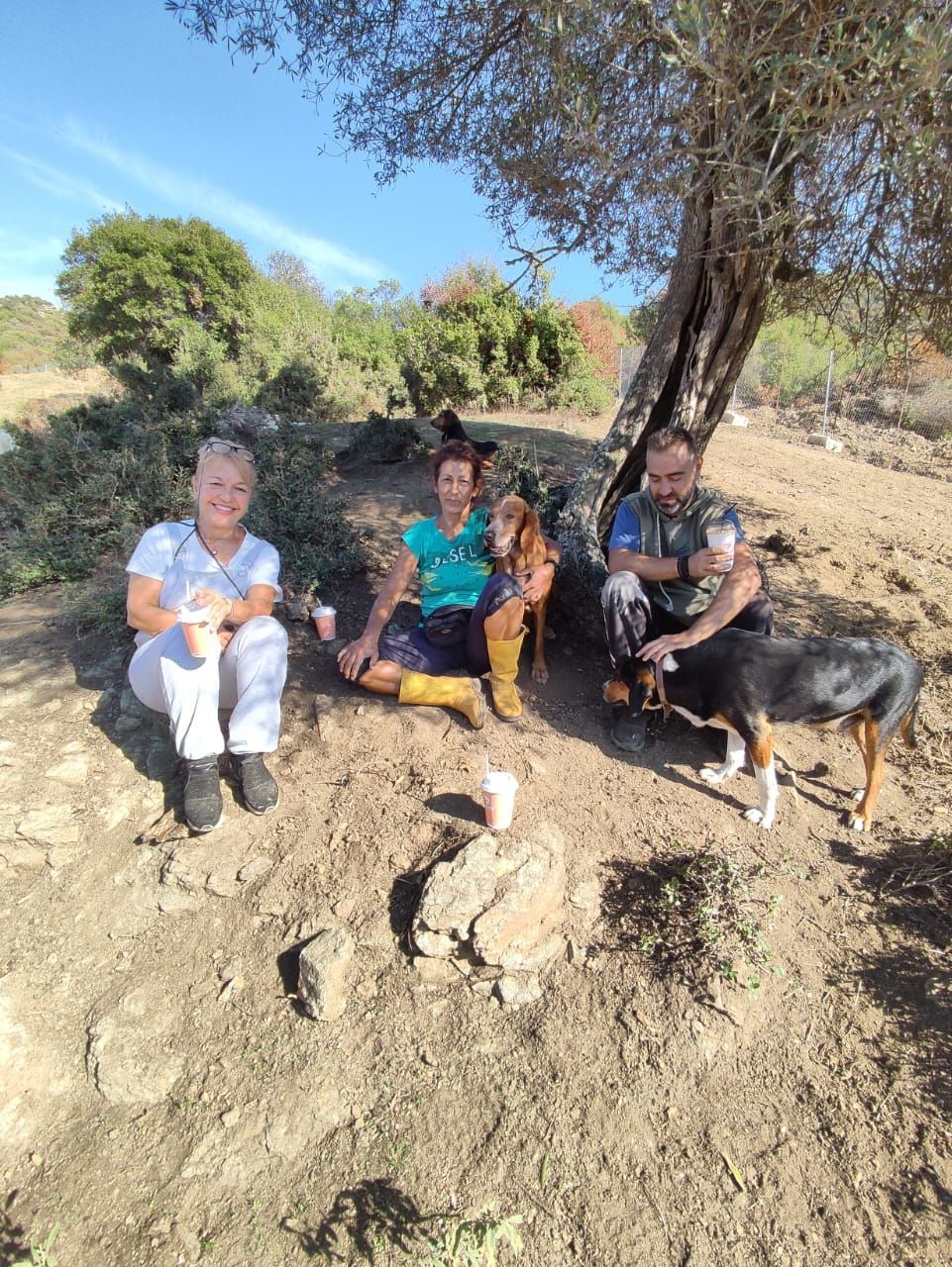 Nachdem die ersten Gehege gereinigt sind, die Spenden auf den Paletten, die aus Deutschland angekommen sind, ausgepackt und sortiert sind, haben sich die Tierschützer eine kleine Pause verdient. Aliki hat einen leckeren Kaffee Frappee mitgebracht, und so gibt die Pause einen kleinen Boost. 💙🍀