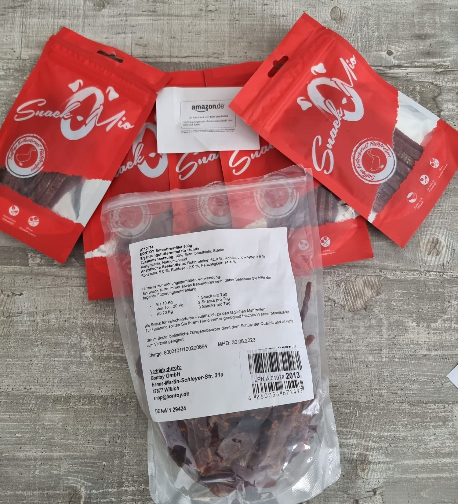Diese Leckerchen haben uns heute Karina und Marco Messingschlager über unsere Amazon Wunschliste zukommen lassen. Die beiden haben unseren Franz adoptiert, der Mitte Oktober zu ihnen nach Deutschland kommen wird. Von diesen Leckerchen wird Franz seinen Kumpels in Griechenland bestimmt was abgeben.