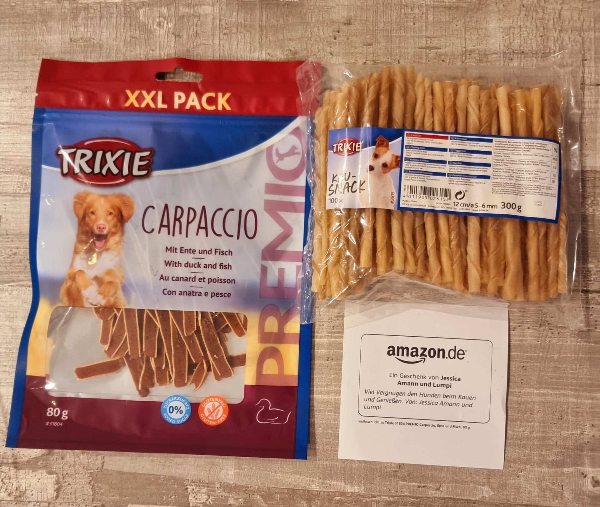 Noch eine Nachzügler ist mit der Schnecken-Post heute angekommen. Wieder sagen wir herzlich. Danke an Jessica Amann und Lumpi. Sicherlich hat Lumpi diese Leckerchen schon probiert und es für gut befunden, dass sein Frauchen diese zu seinen Kumpeln 🐕nach Griechenland schicken möchte. Hätten wir sagen herzlich danke ! Ευχαριστώ !