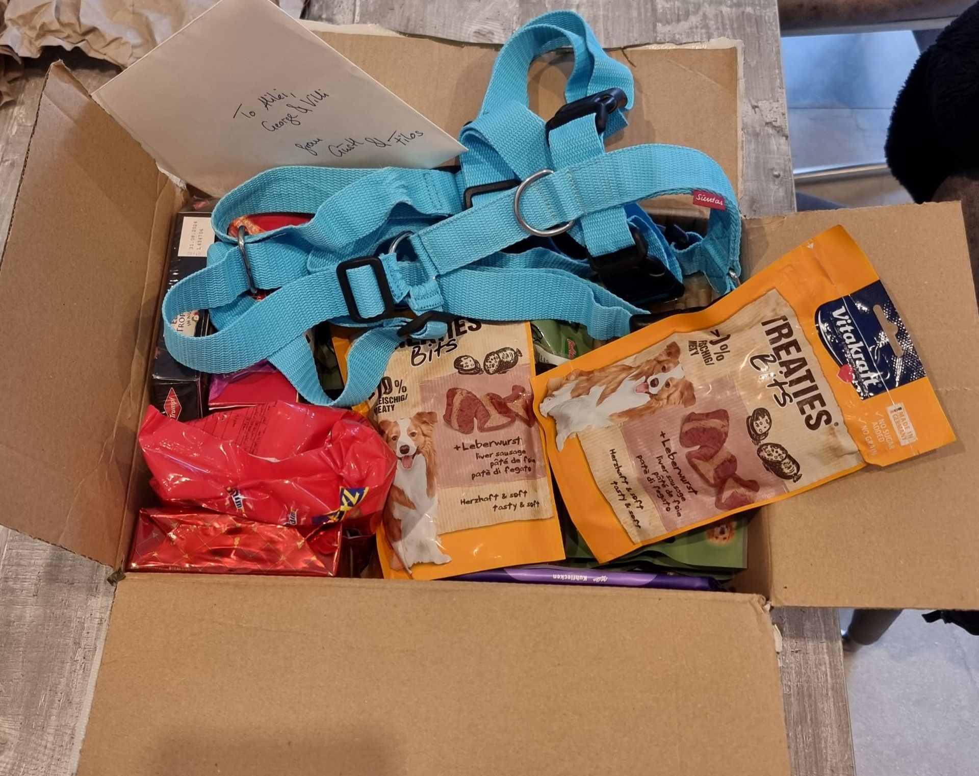 Heute mit der Post hat uns Familie Wessel, die unsere Nala adoptiert haben, ein Paket geschickt mit einigen Leckereien, Spielzeug und einem Kuschelkissen, sowie dem Sicherheitsgeschirr, welches Nala nicht mehr benötigt. Herzlichen Dank für diese tolle Spende! Unsere Griechen 🐕🐕🦺 werden die Abwechslung vom Alltag kauend genießen! 🙏🏽💙