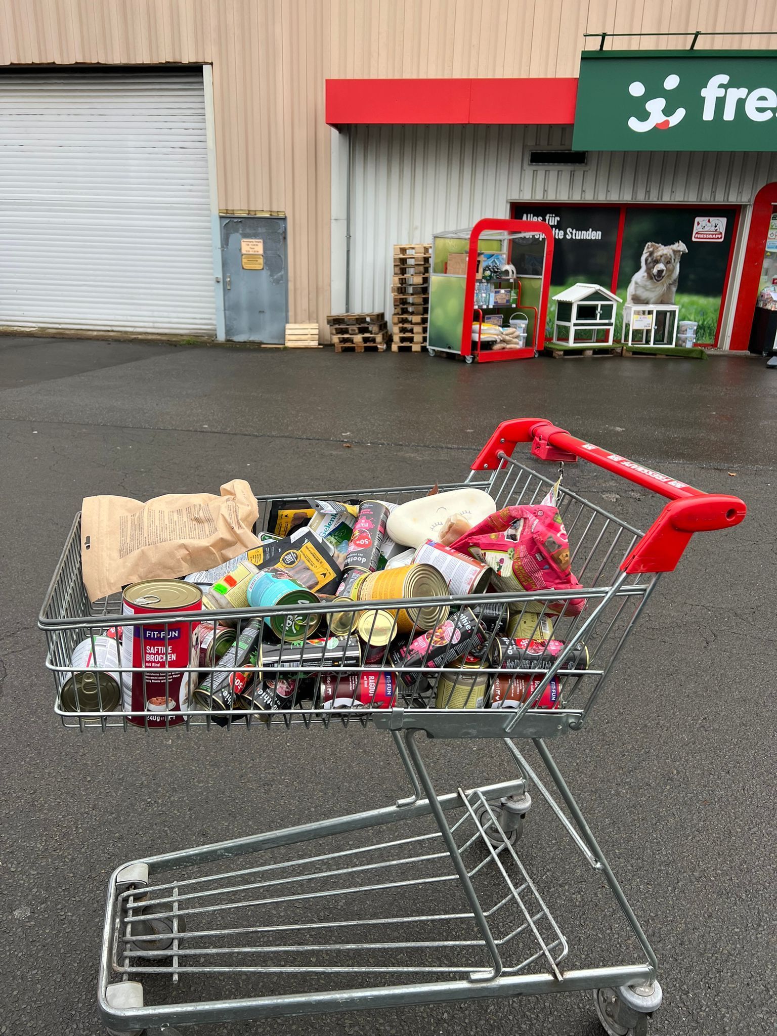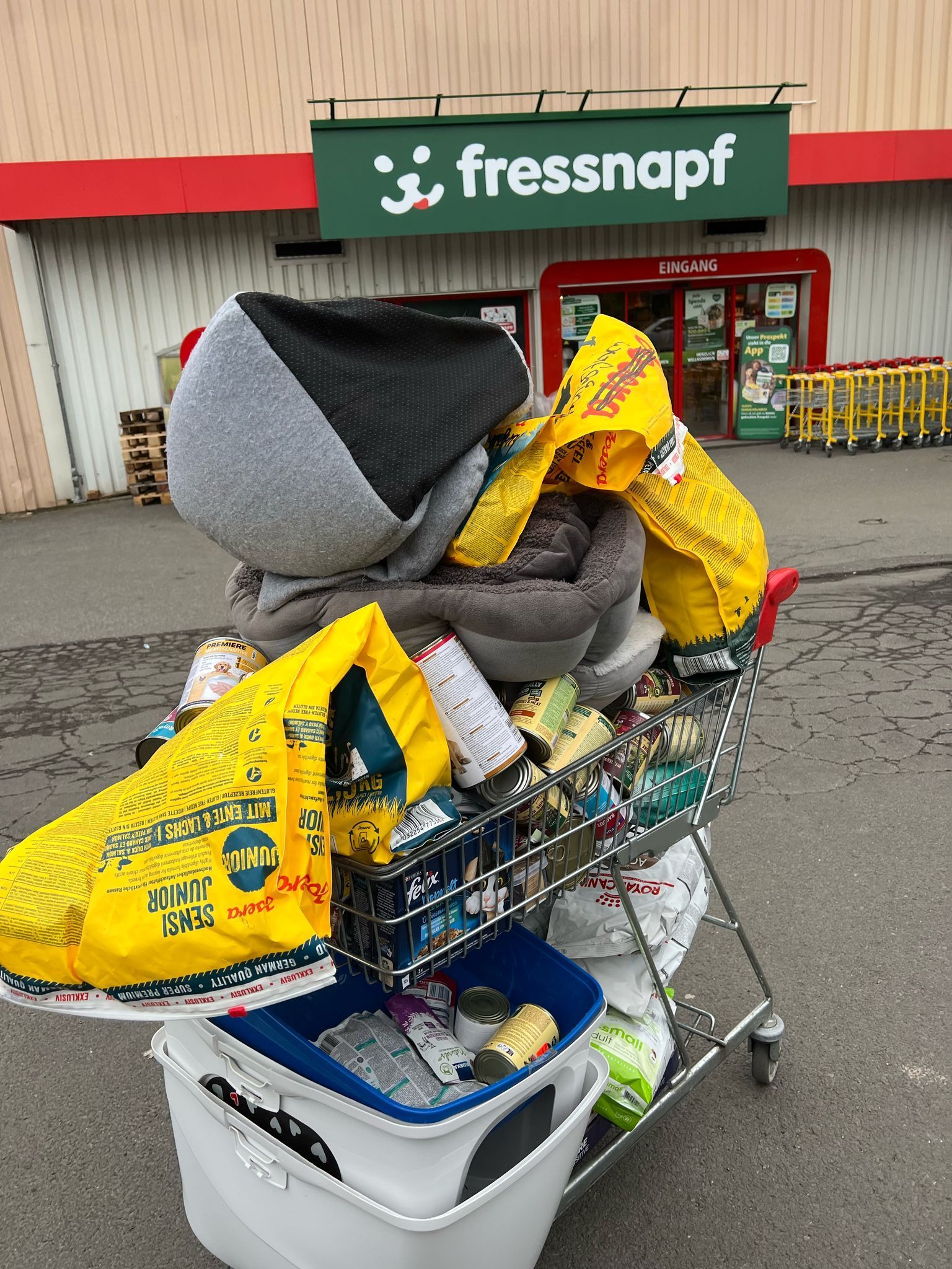 Erneut ein Einkaufswagen voll Spenden. Der Fressnapf in Sprockhövel hat uns mal wieder einen Einkaufswagen voll gemacht mit allerlei guten Dingen für unsere Fellnasen in Griechenland 🇬🇷. Auch wenn gerade die gepackten Paletten unterwegs sind, so wird halt die nächste direkt wieder begonnen.