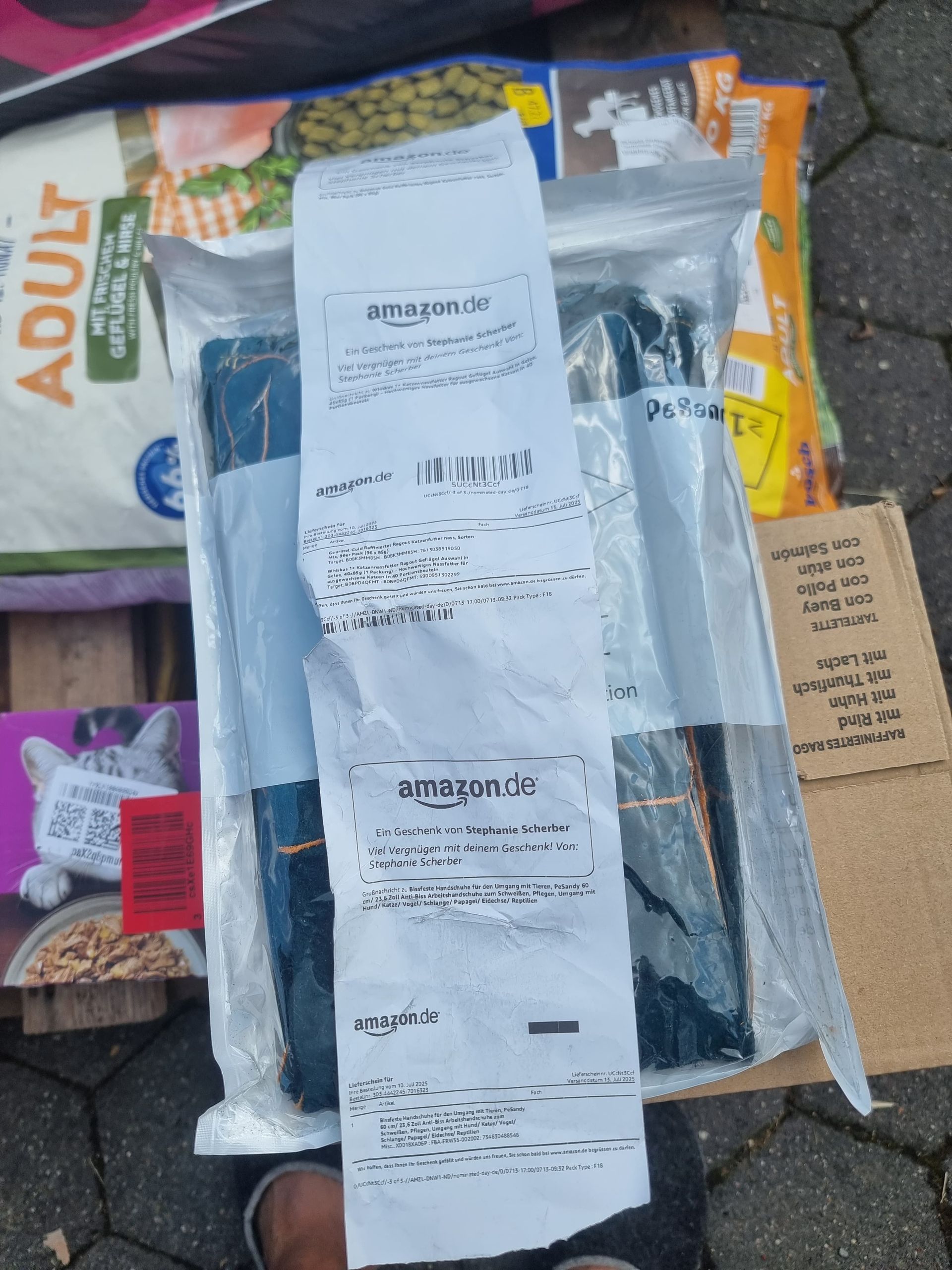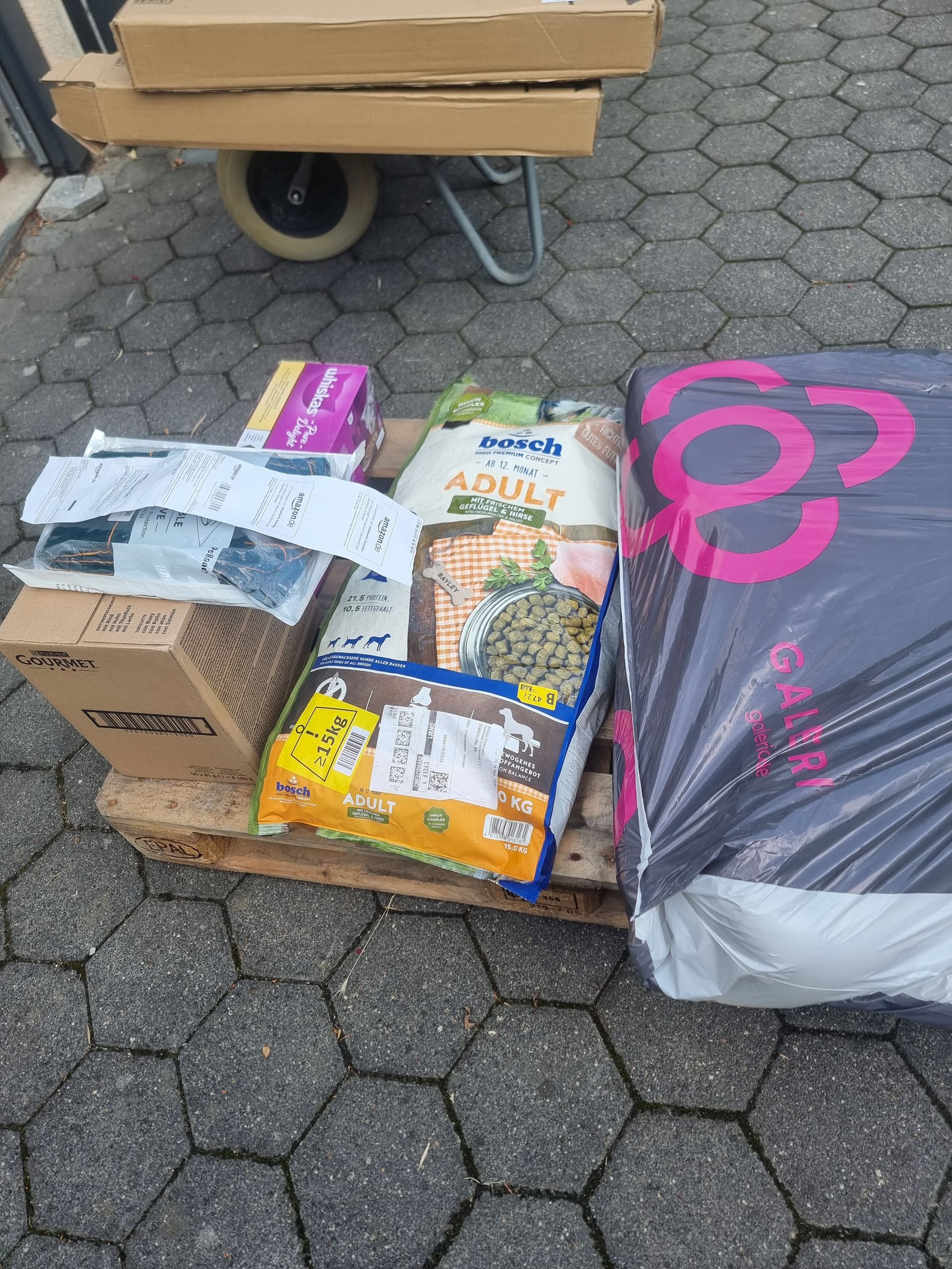 Die Ankunft der Futterspenden war ein Moment voller Freude und Erleichterung – volle Näpfe für unsere Fellnasen und das sichere Gefühl, dass wir sie weiterhin gut versorgen können.