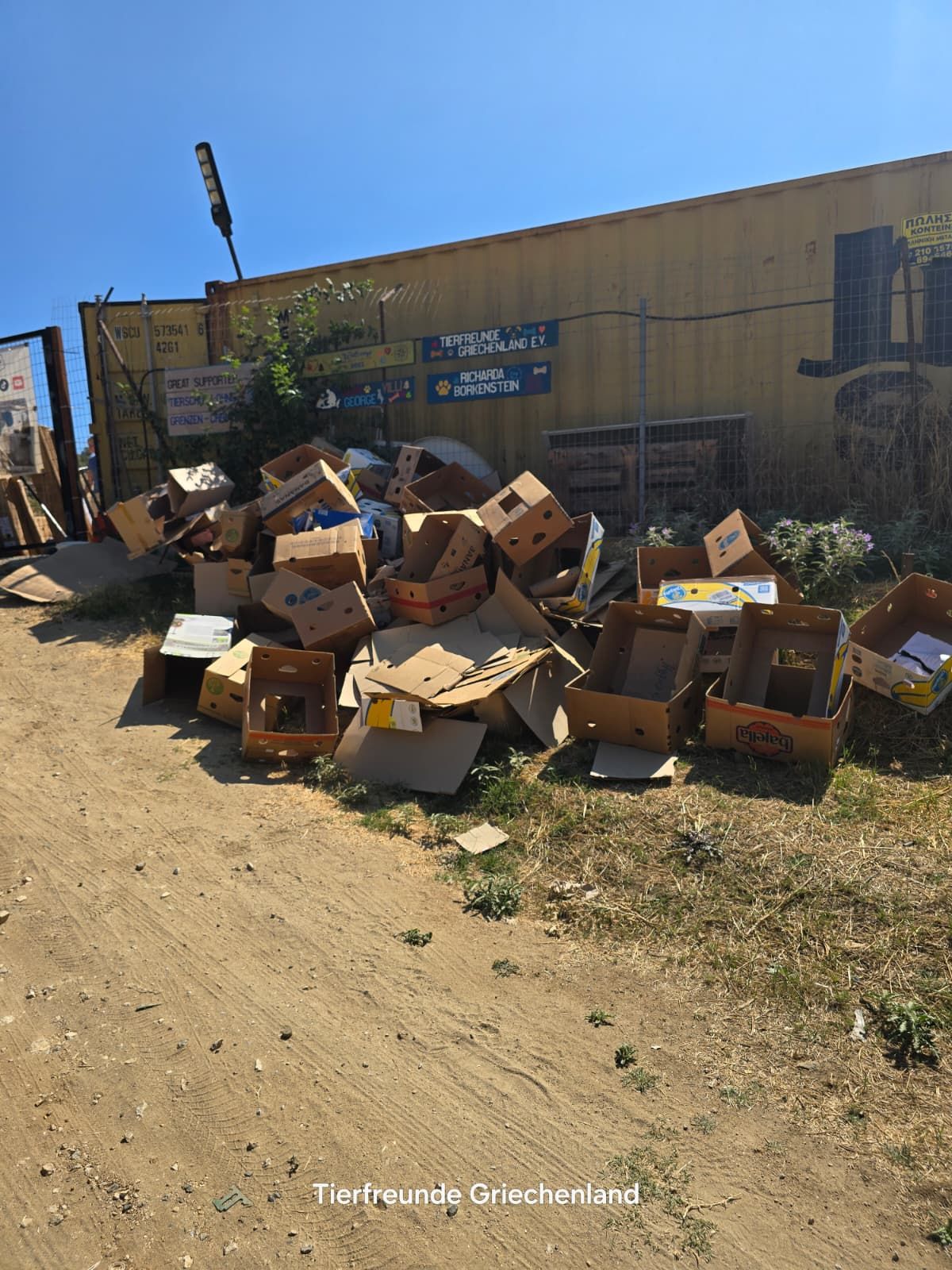 Die Paletten sind angekommen, können aber jetzt erst sortiert und umgepackt werden. Auch aus Griechenland kommt ein herzliches Dankeschön für die vielen tollen Spenden, die nun all unseren Fellnasen zugute kommen. 💙🥰