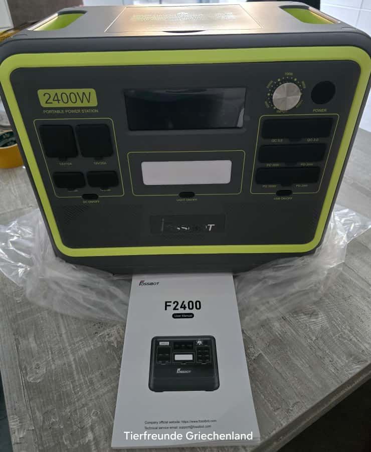 Die Palette ist in Griechenland angekommen, und zuallererst wurde nun der von Gerd und Uschi Urbach gespendete Akku geladen und angeschlossen. Somit werden wir autark, was Strom angeht und können unseren Kühlschrank und damit die Medizin schon mal kühl halten. Ein ganz ganz dickes Dankeschön geht nach Bayern an Gerd und Uschi für diese tolle Spende! 🙏🏽💙
