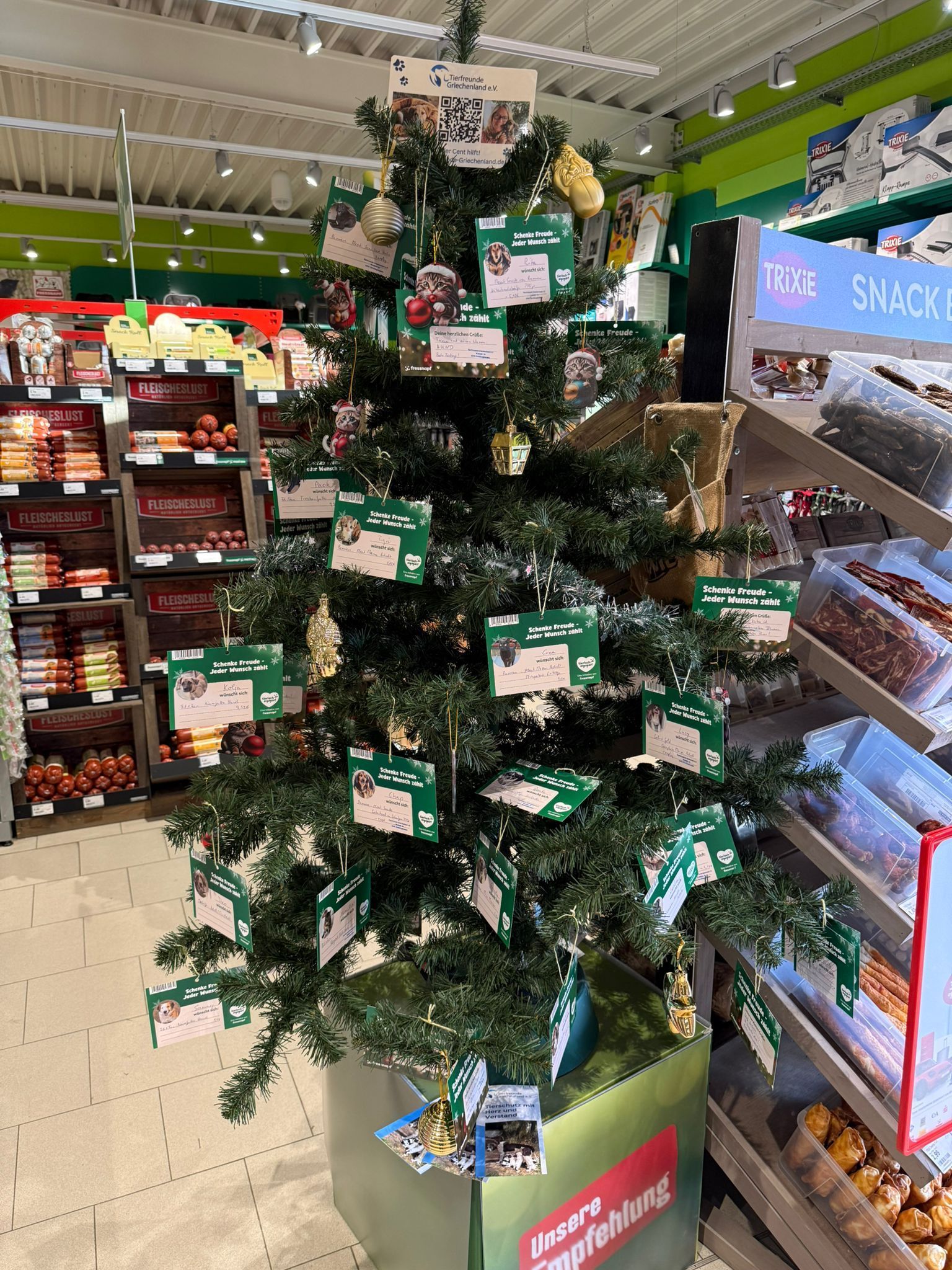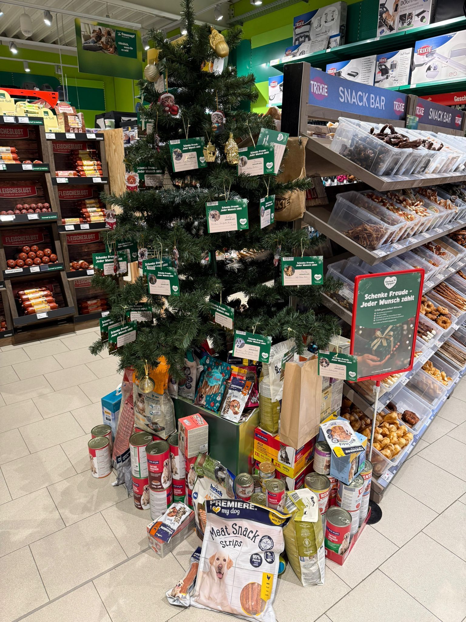 Beim Fressnapf in Haltern am See durften wir auch in diesem Jahr einen Tannenbaum🎄 schmücken und so um Spenden bitten. Auf den Postkarten ist nicht nur einer unserer Hunde oder Katzen abgebildet, gleichzeitig wünscht die Fellnase jedem Kunden mit der Bitte um ein Leckerchen oder etwas Futter einen freundlichen liebevollen Adventsgruß auf der Rückseite. Der Baum stand noch nicht ganz, schon war die erste Spende angelehnt. 💙