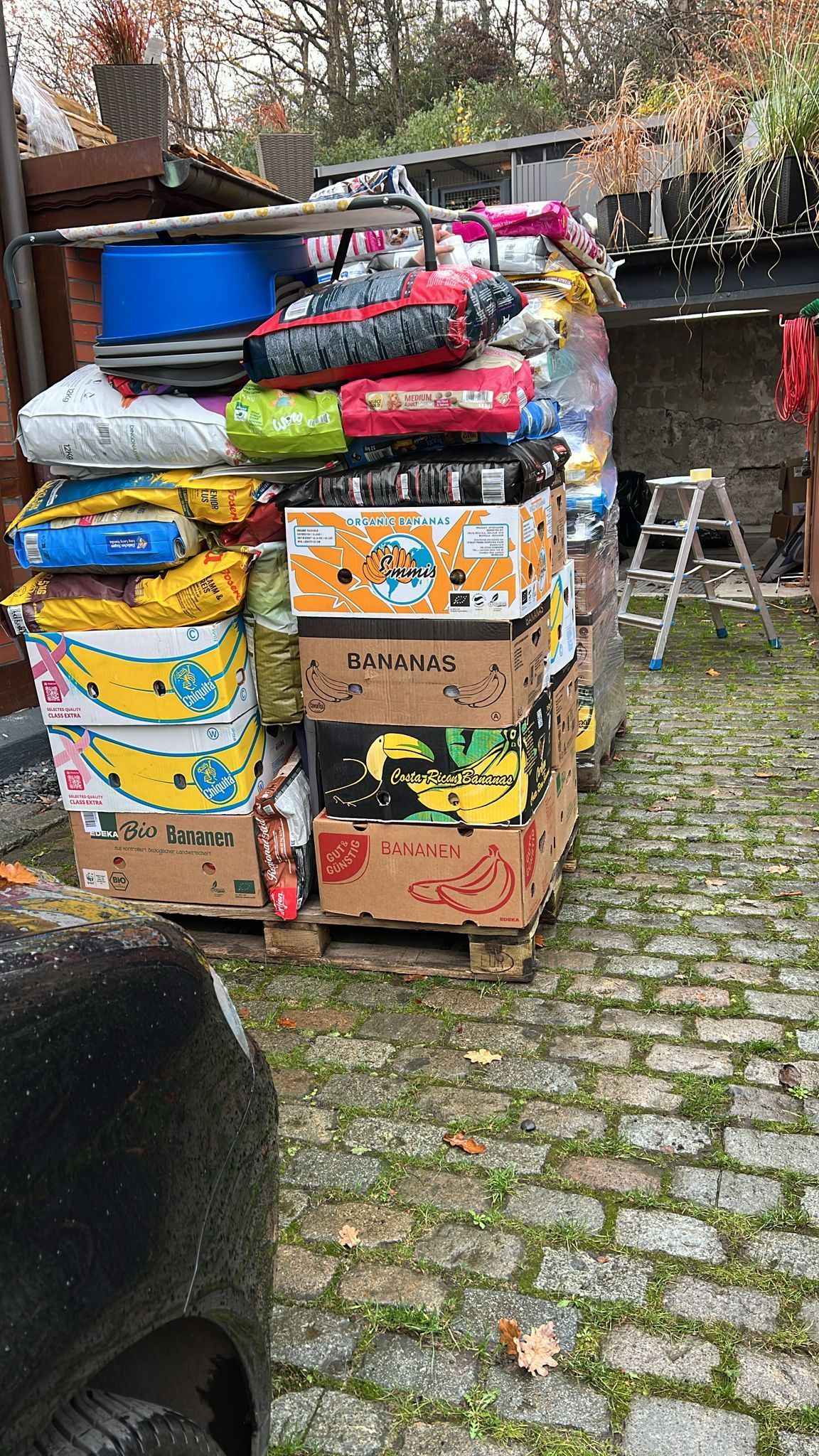 Spenden sammeln will koordiniert werden. Inzwischen sind in der Region um München jede Menge Spenden zusammengekommen, die allerdings dieses Mal nicht in Recklinghausen/ NRW auf eine Palette kommen, sondern in Sachsen gesammelt werden. Hier haben unsere Tierfreunde Uschi und Kristin gepackt und alle Spenden dann zu Bianca und Mattis gebracht, die ebenfalls vor Ort Spenden sammeln und Anfang des Jahres eine Palette schicken werden. Herzlichen Dank für euer Engagement.