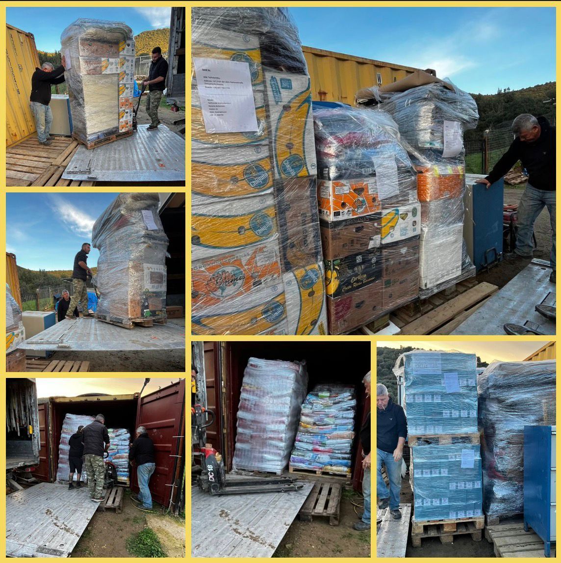 Insgesamt acht Paletten vollgepackt mit Hundefutter, mit Leckerchen für unsere Hunde und Katzen, mit gespendeten Hundekörbchen und Hochbetten, mit warmen Decken für den Winter sind in Nordgriechenland angekommen, und vom LKW in den Container beziehungsweise am Container abgeladen worden. Dieser Container dient als Speicher, der Zugang zu den Futtersäcken muss aber bleiben, sodass drei Paletten erst mal außerhalb warten müssen. Stück für Stück werden natürlich auch diese abgebaut und im Trockenen gespeichert werden, sobald Platz geschaffen und Zeit dafür ist. Herzlichen Dank sagen wir allen Tierfreunden, die uns hier unterstützt haben. 🙏🏽💙
