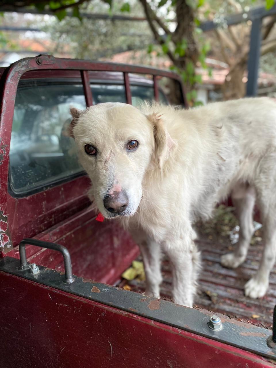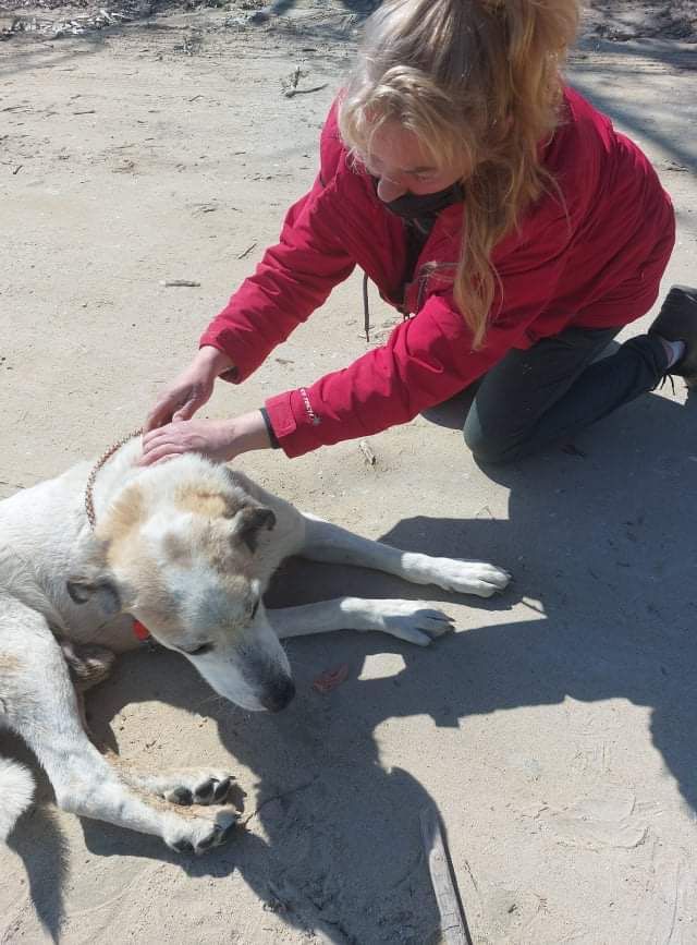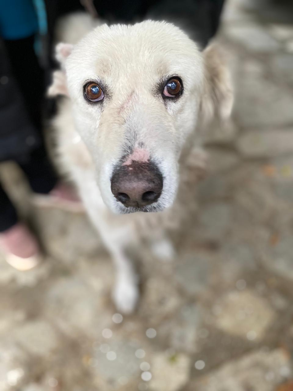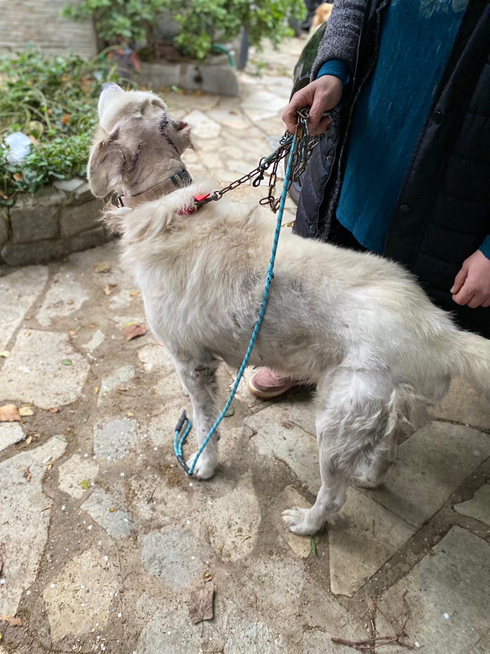 Dieser hübsche helle Riese 🐕 ist etwa vier Jahre alt und hat schon Grausames erlebt. Er war bisher in einem Dorf in der Nähe von Kavala, wo er nun zum zweiten Mal von einem Mann mit einer Axt attackiert worden ist. Andere Dorfbewohner haben ihn schwer verletzt zur Tierärztin Sophia gebracht, die ihn wieder zusammengenäht und zugleich sterilisiert hat. Jetzt konnte er entlassen werden und ist bei Aliki untergebracht, denn in das Dorf zurück kann er keinesfalls. Dort würde man ihn zu töten versuchen, Nikos hat aber ein Recht in Ruhe zu leben. Nun kann er bei Aliki erst einmal lernen, dass es auch liebevolle Menschen gibt, die es gut mit ihm meinen. Und vielleicht gibt es ja auch eine Traum-Familie für ihn in Deutschland ?
