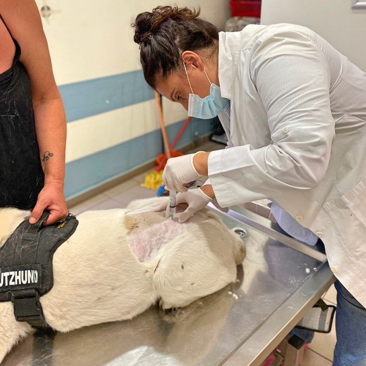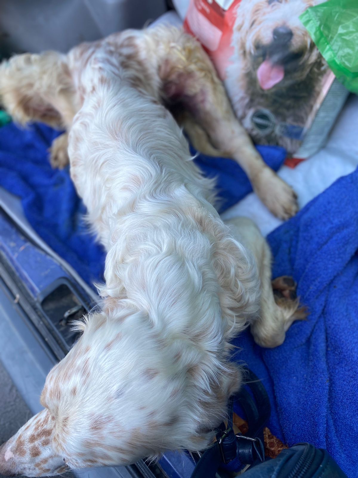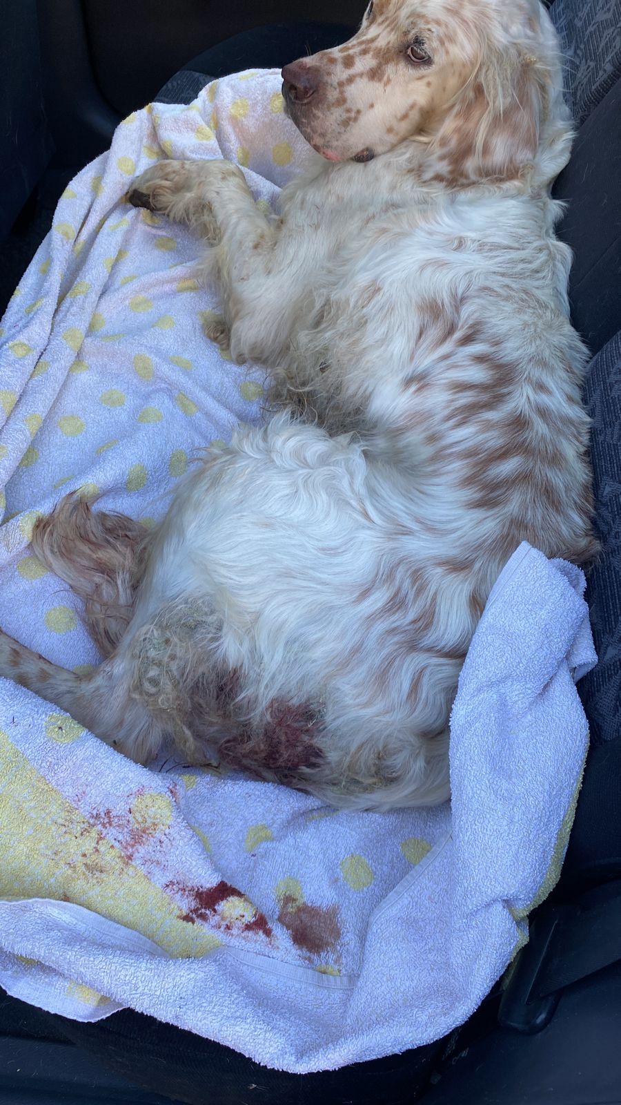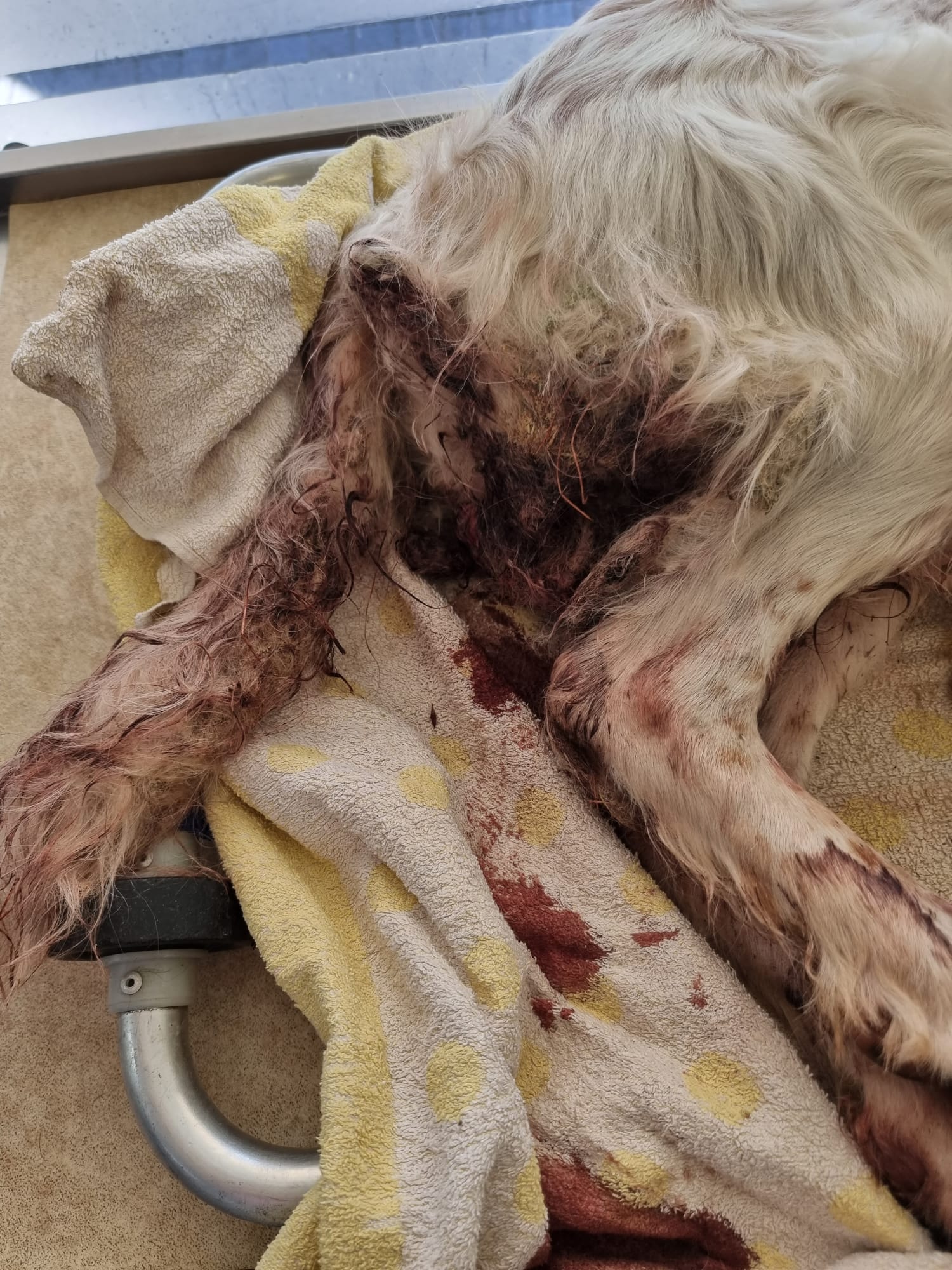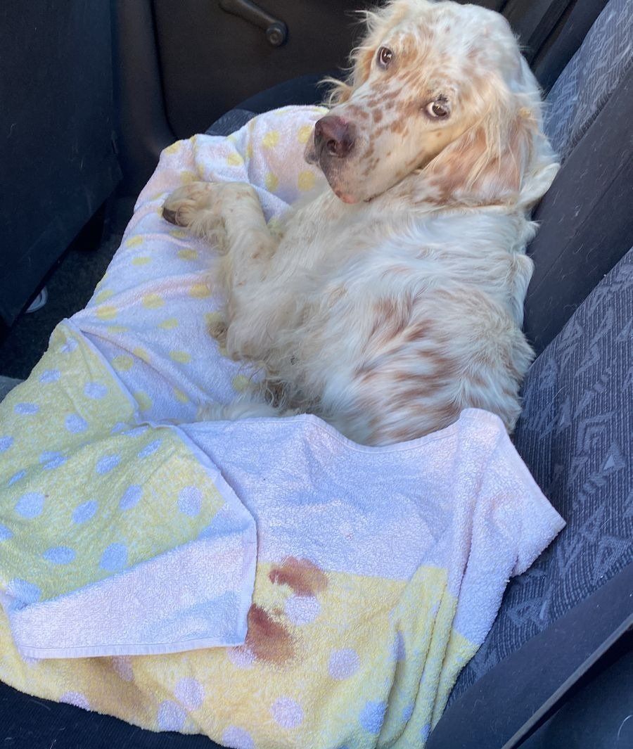 Dieser Setter-Mix, der den treffenden Namen Kilian erhalten hat - er braucht wirklich einen Schutzengel- ist direkt zum Arzt gebracht worden, der zuerst einmal sämtliche offenen Wunden desinfiziert hat und damit den ersten Heilprozess angestoßen hat. Nun war das Röntgen-Gerät defekt, weshalb er nun erneut zu einer Klinik gebracht werden musste, um seine Hüfte zu röntgen, da bei dem Autounfall vermutlich nicht nur diese fürchterlichen äußeren Wunden zurückblieben. Kilian verhält sich sehr tapfer, hoffen wir, dass die Hilfe, die er in Griechenland erhält, auch von Deutschland aus weiter unterstützt wird. 💕Wer mit einer (einmaligen oder monatlichen) Spende Pate dieses Unfallopfers werden möchte, kann dies über folgenden Link! 💙