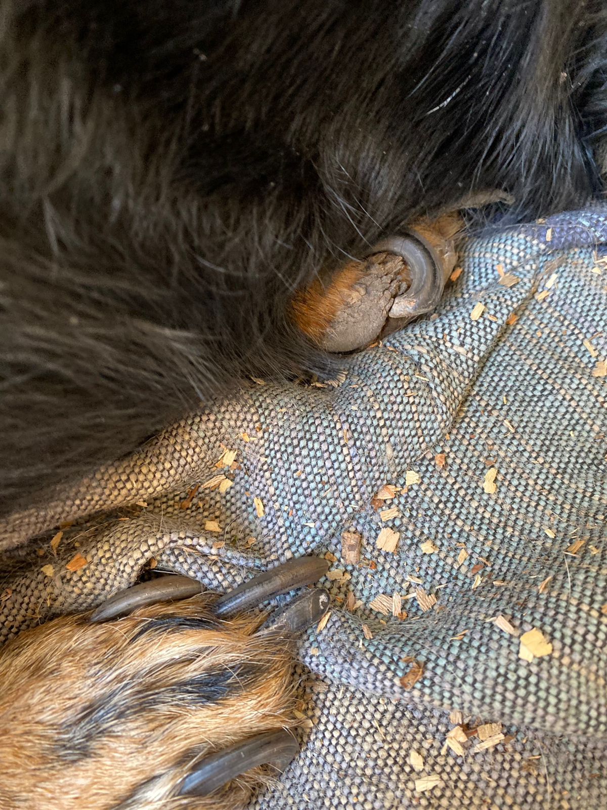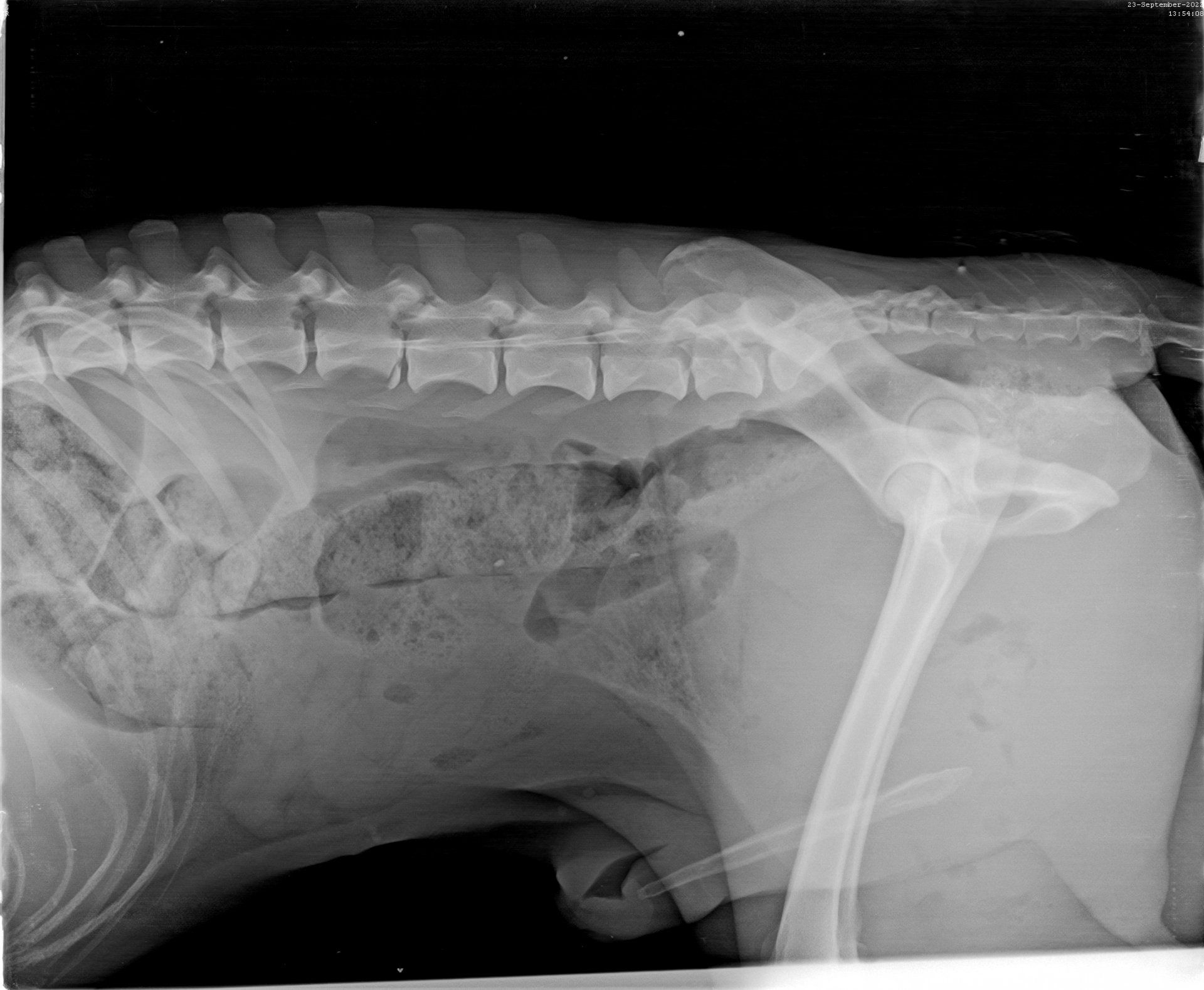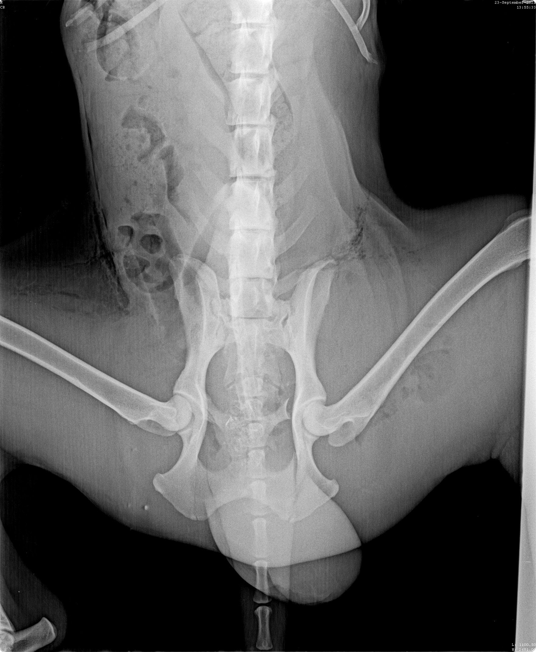 Kilian war angefahren an der Autobahn aufgefunden worden. In der Klinik, wo er drei Tage verbleiben musste, da die offenen Wunden gereinigt werden mussten und sein linkes Bein Sorgen bereitete. Die Lähmungen sind wohl zurückzuführen auf den gebrochenen dritten Lendenwirbel, der niedriger lag als die Wirbelsäule. Dies bedeutet Ruhe halten, eine OP kann folgen müssen. Die offenen Wunden am Hinterleib sowie am Hodensack waren äußerst schmerzhaft, so wird er nun weiter mit Antibiotika und mit Fieber senkenden Mitteln behandelt. Die Kosten belasten unser Budget schon sehr, aber Hilfe hat für uns Vorrang.